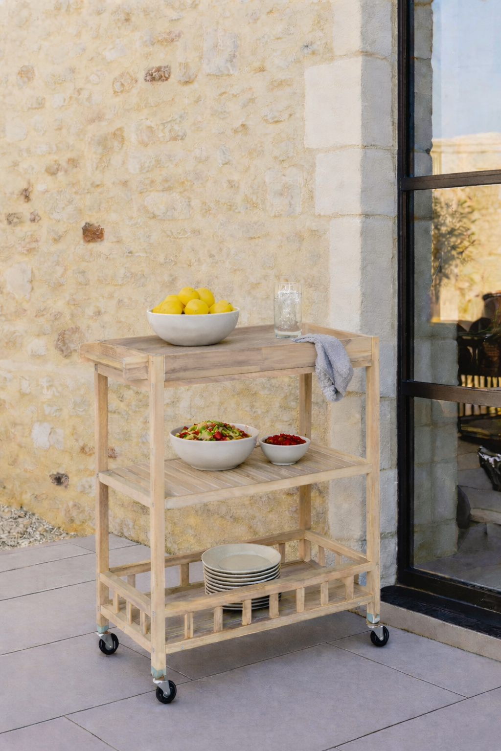 Envision effortlessly hosting gatherings, with every drink and appetizer at your fingertips. This wooden trolley serves as your new mobile centerpiece, designed to make life easier and your kitchen more stylish. Featuring a three-tier design with a bleached wood finish, it boasts a classic European aesthetic that brings warmth and sophistication to any space. The visible natural wood texture and slatted shelving combine practicality with visual appeal, while the smooth-rolling wheels let you move it easily from the kitchen to the dining room.