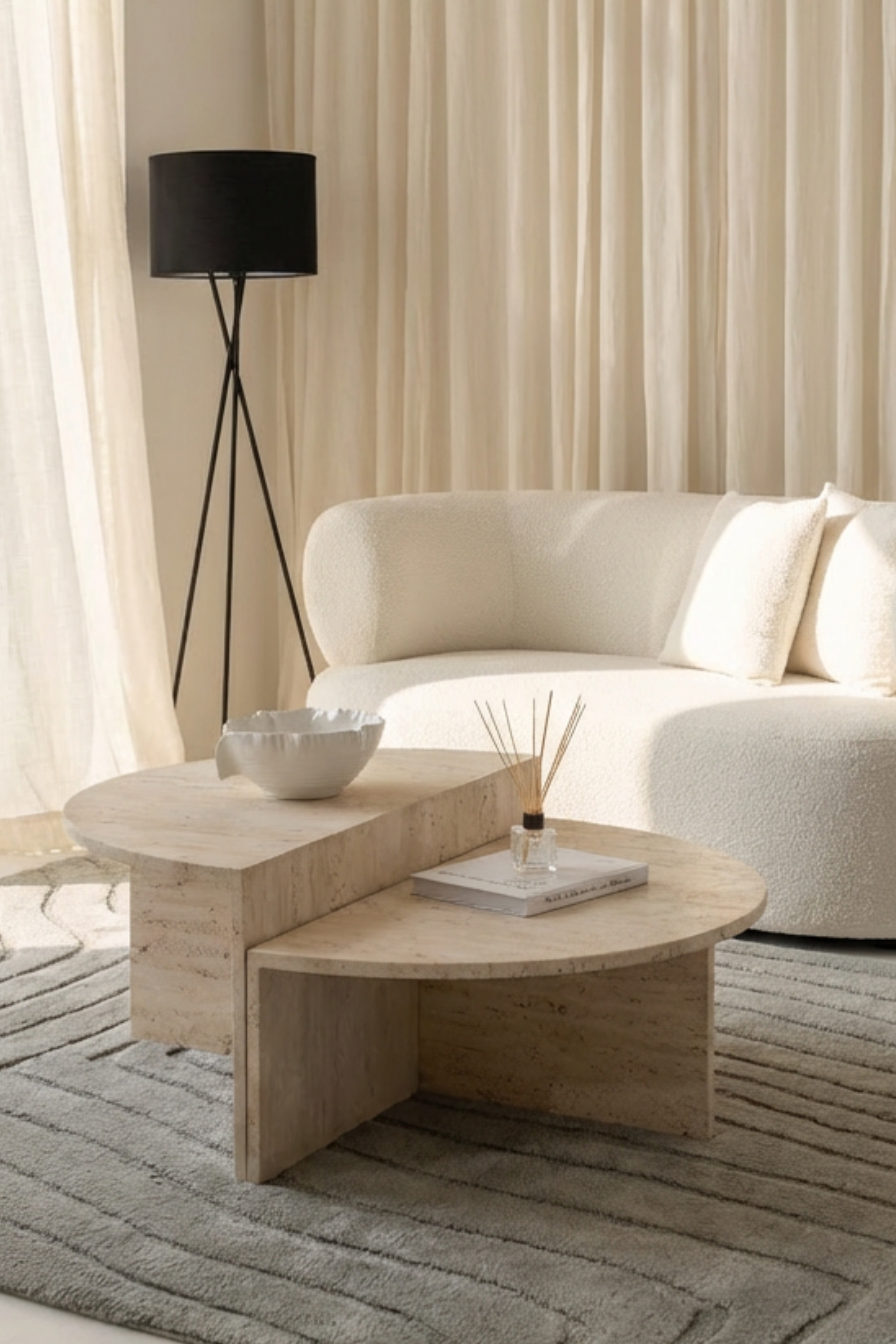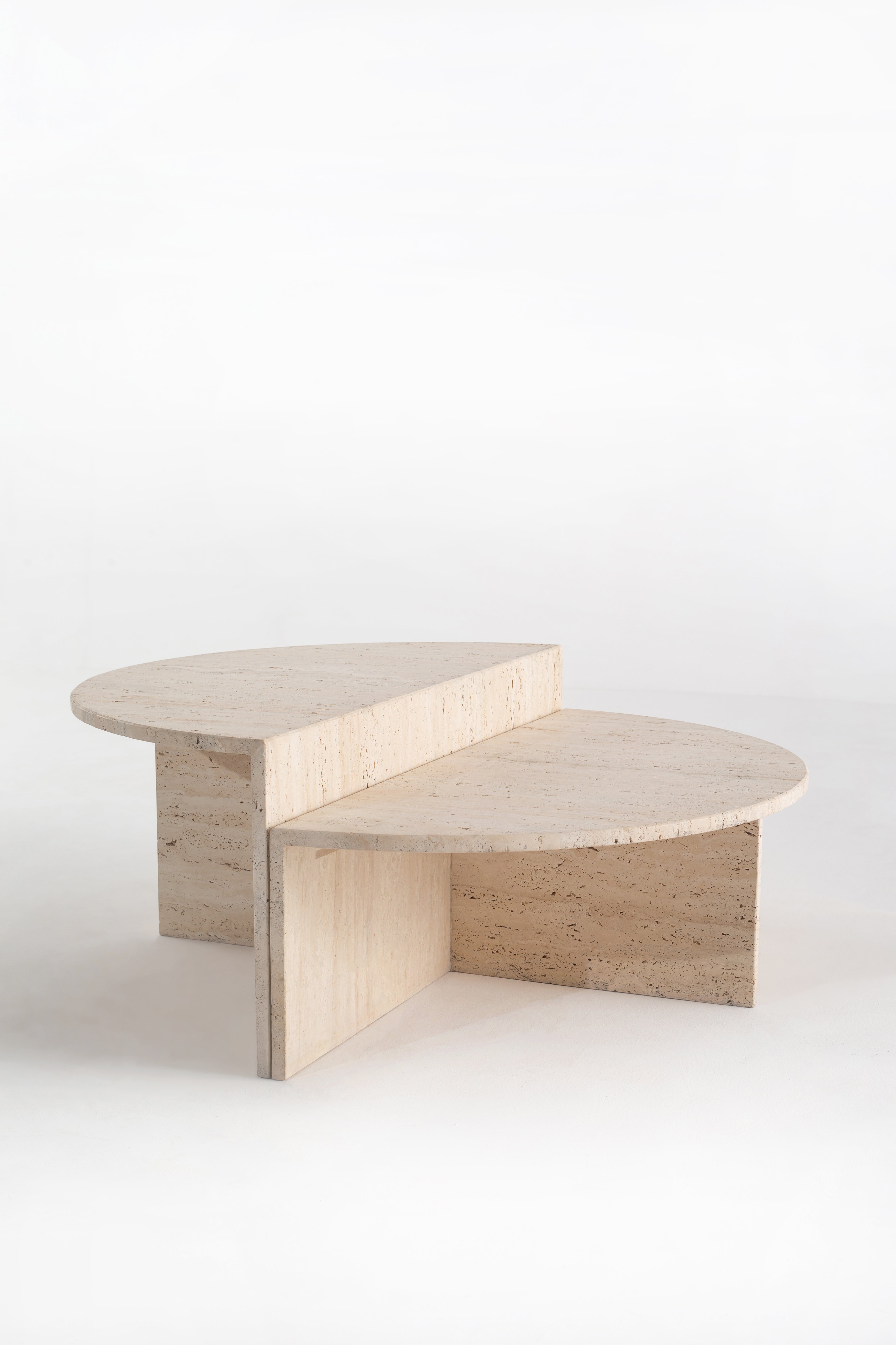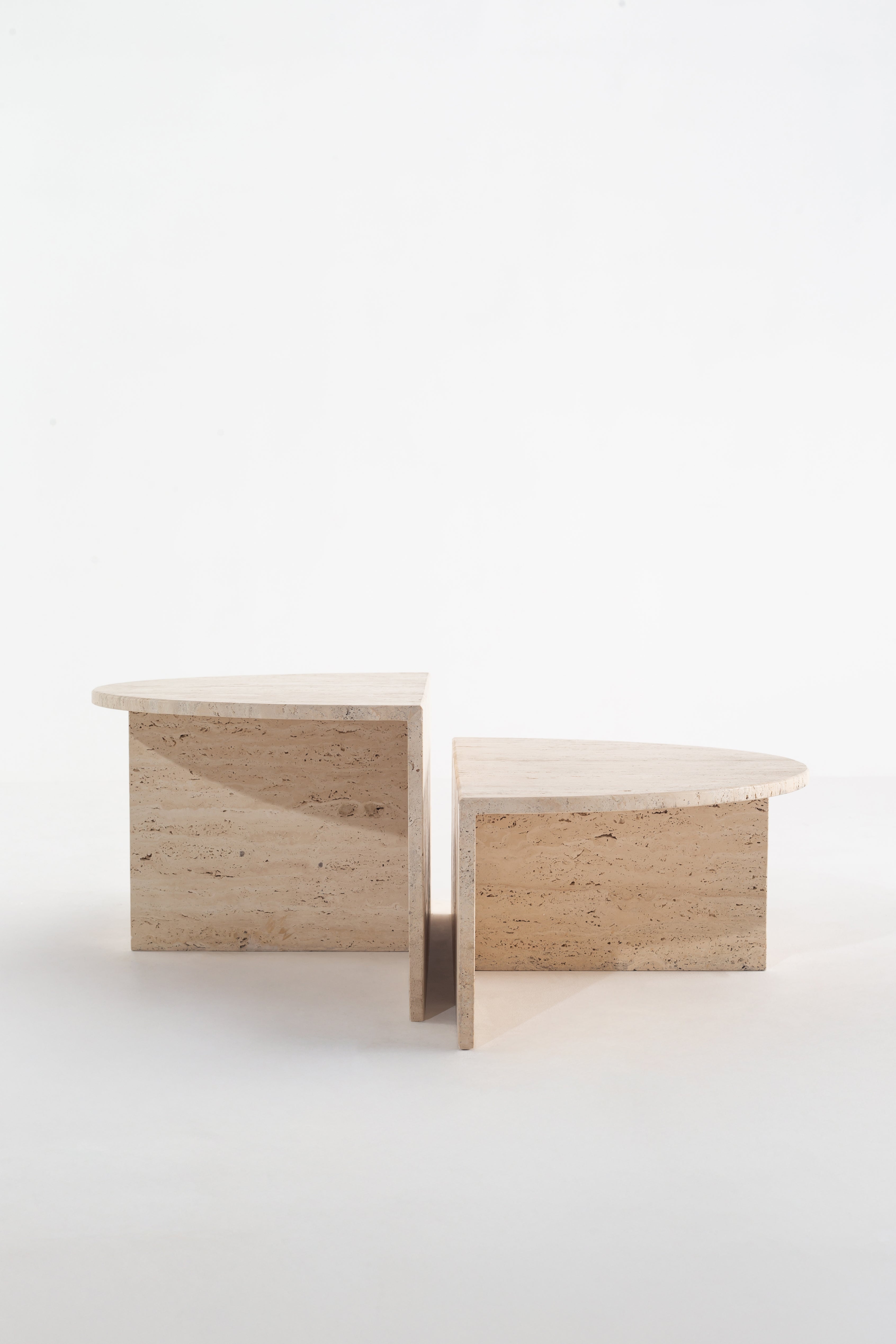 Elevate your living space with a nesting coffee table set that combines timeless elegance with functional design. The smooth beige travertine top showcases natural stone variations, adding organic charm to any décor. Designed for versatility, the nested structure offers space-saving convenience while maintaining a bold aesthetic. Whether used together for a layered look or separately for added functionality, these tables blend seamlessly into modern, contemporary, or minimalist interiors. With their sturdy build and refined finish, they provide both durability and sophistication, making them the perfect addition to any stylish home.