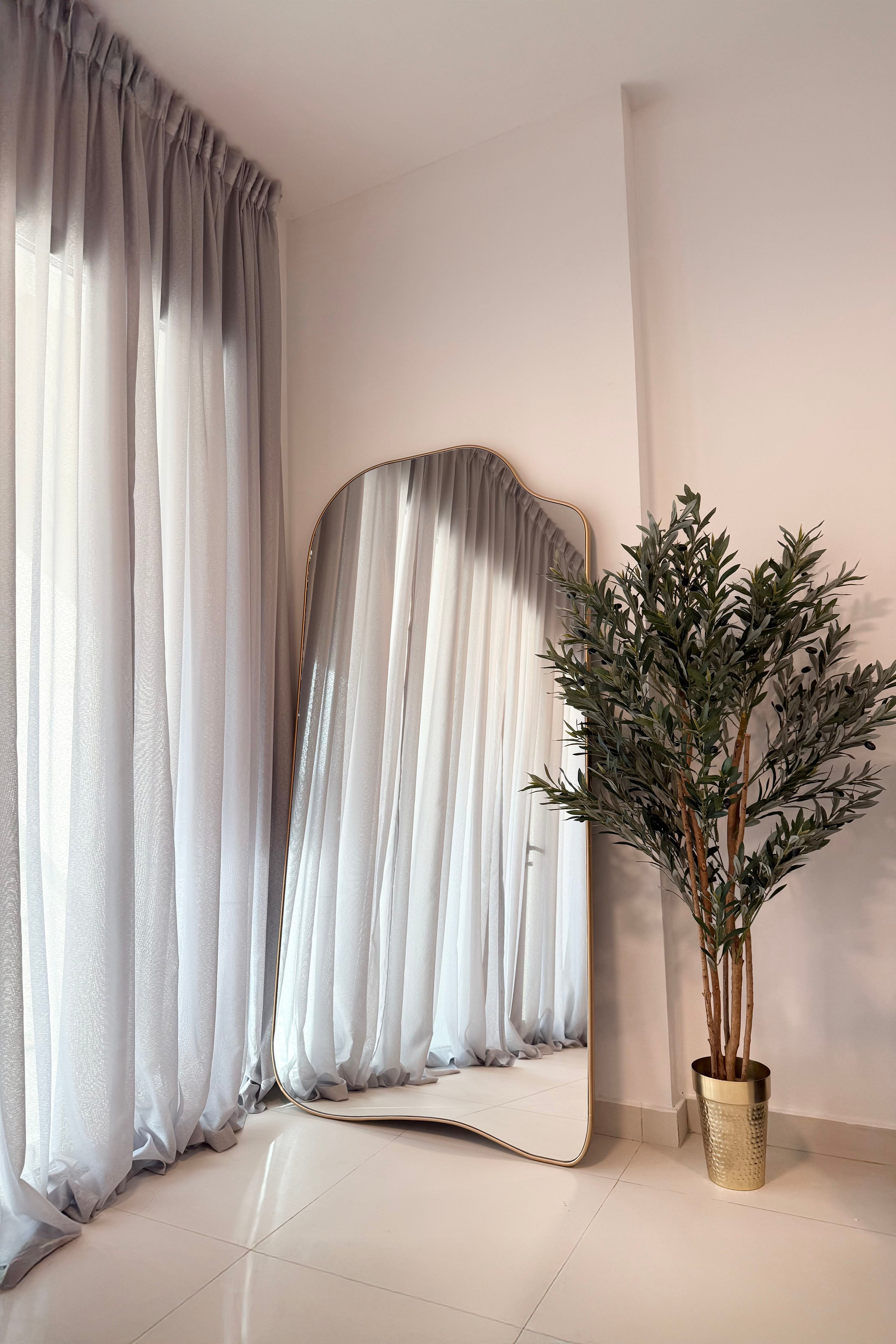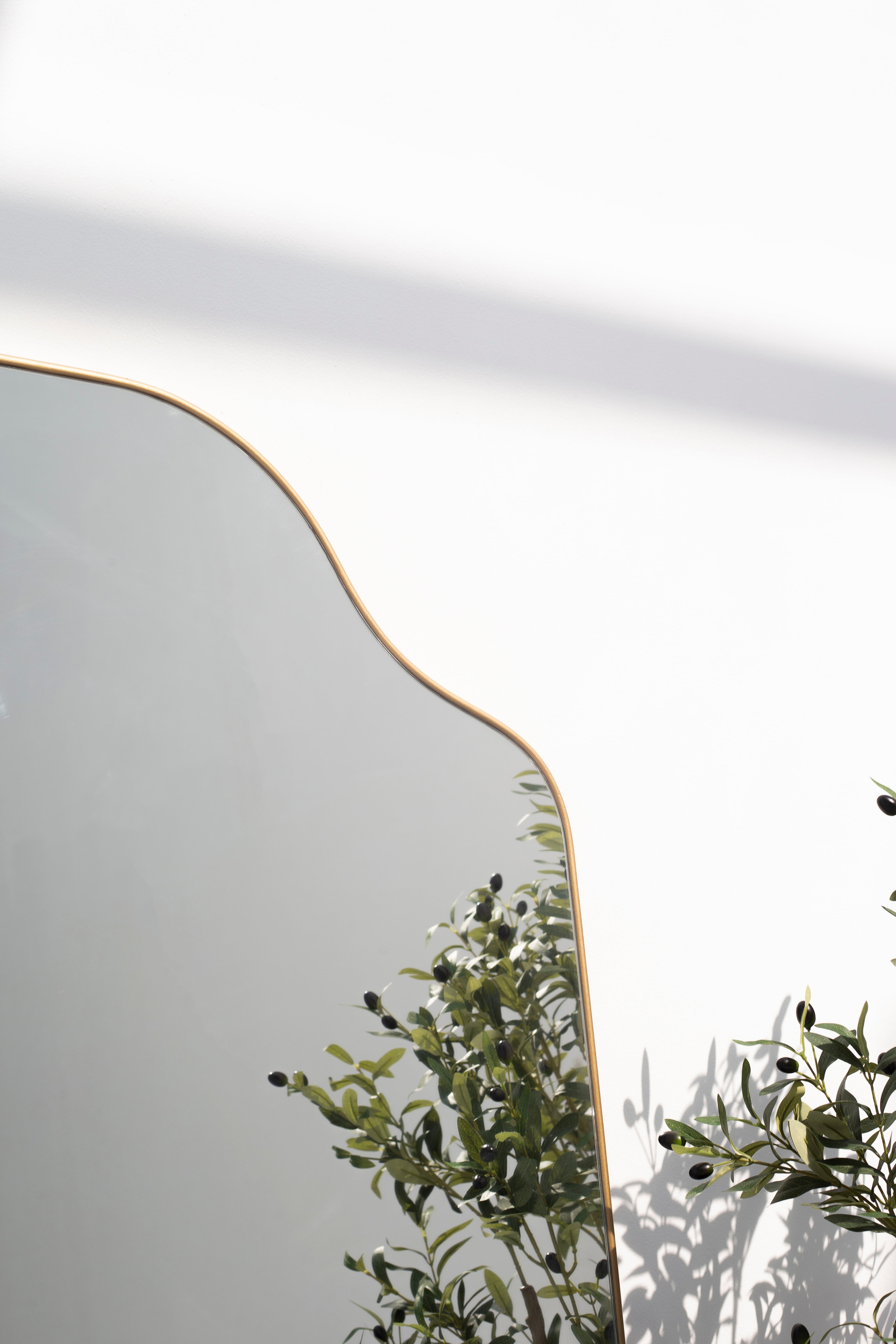 Crafted with precision, the wooden frame boasts a smooth, gilded finish, highlighting its premium craftsmanship. The mirror’s irregular shape enhances light reflection, providing a luxury feel to rooms while serving as a statement decor piece. Ideal for entryways, living rooms, or bedrooms, the Arcadia Gold Mirror effortlessly blends timeless elegance with modern flair, elevating the style of your home.