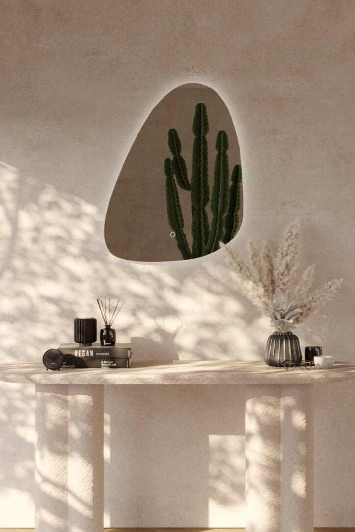 Transform your space with this minimalist irregular wall mirror, designed to reflect not just light but your refined taste. The soft, organic shape adds visual intrigue, while the frameless silhouette keeps the aesthetic clean and modern. Its neutral-toned backdrop and subtle curvature make it a perfect fit for Scandinavian, Japandi, or earthy interiors. Whether placed above a console or as a standalone statement, this mirror enhances natural light, adds depth, and creates a serene, design-forward ambiance that elevates your everyday environment.