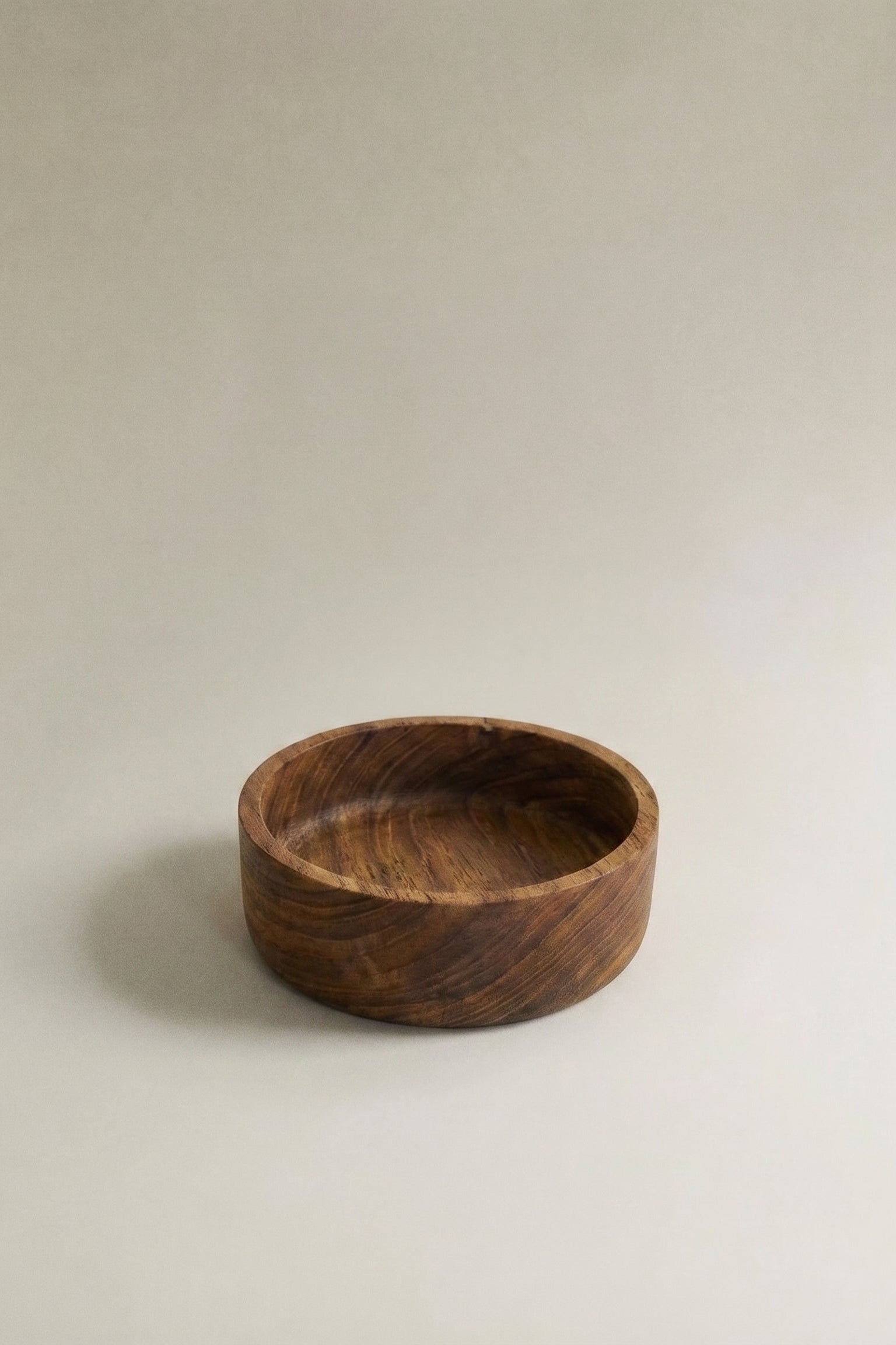 A compact teak wood bowl defined by its clean cylindrical form and smooth, uninterrupted surface. The minimalist profile emphasizes balance and proportion, while the finely finished interior enhances everyday usability. Each piece reveals subtle grain movement and natural tonal shifts, bringing warmth and depth to a simple, refined shape. Its low height and uniform structure make it ideal for serving condiments, snacks, desserts, or small portions with ease. Crafted from solid teak, it offers durability for daily use while maintaining a lightweight and practical feel. The understated design allows it to integrate seamlessly into modern, contemporary, or natural table settings across commercial and residential spaces.