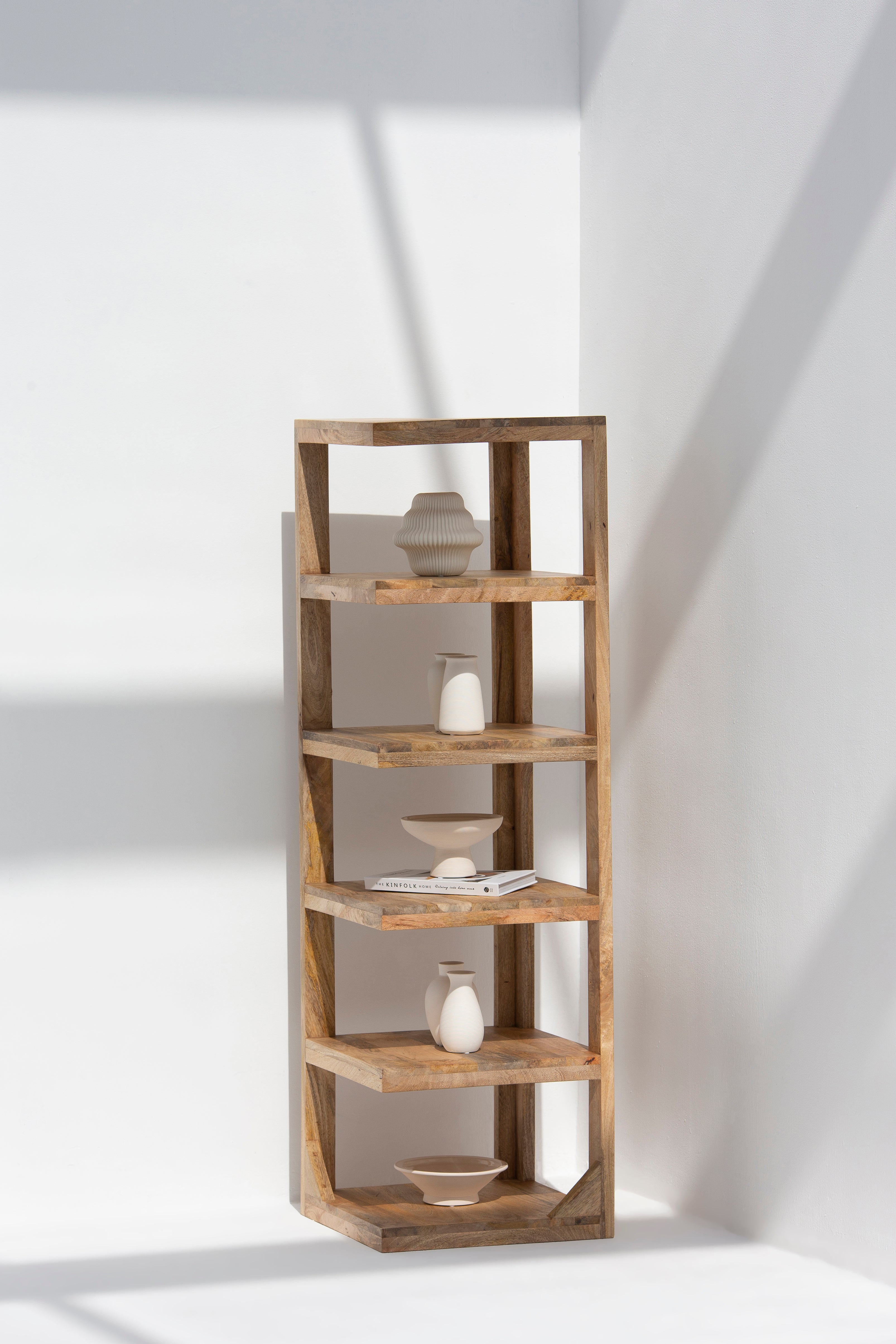 The Monique Corner Display Shelf is crafted from premium mango wood, blending rustic charm with functional elegance. Its unique corner design optimizes space, while the natural wood grain texture adds warmth and character to any room. With multiple tiers, this shelf is perfect for displaying decor, plants, or books, enhancing your interiors with minimalist yet sophisticated appeal.