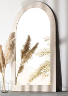 Introducing the Crema Marble Arch Mirror: A stunning reflection of elegance and sophistication. Featuring a sleek marble frame, this mirror effortlessly enhances any space with its timeless charm. Elevate your decor with this exquisite piece.
