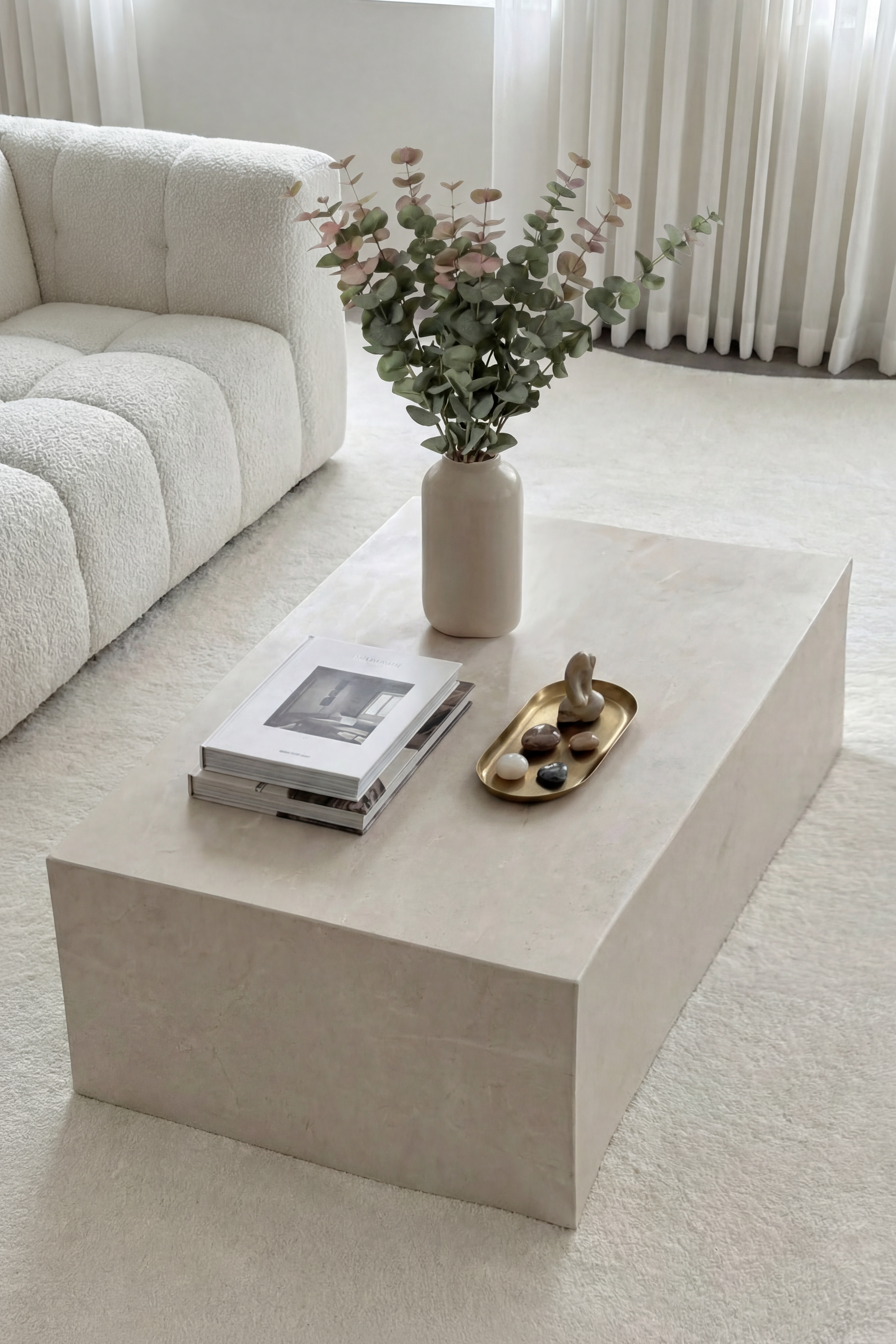 This refined coffee table brings quiet luxury to your living space with a sculptural cube silhouette crafted from exquisite Crema Marfil stone. Its polished surface reveals gentle veining and soft warm tones that create an inviting sense of calm while highlighting the natural beauty of the material. Designed to complement modern and classic interiors, it offers a bold yet graceful presence that anchors the room with effortless sophistication. The solid structure adds durability and everyday function, providing a versatile surface for decor, books, or intimate gatherings while enriching your home with timeless elegance.