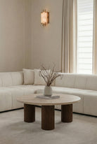 Kalliope Travertine Coffee Table With Dark Wood Base