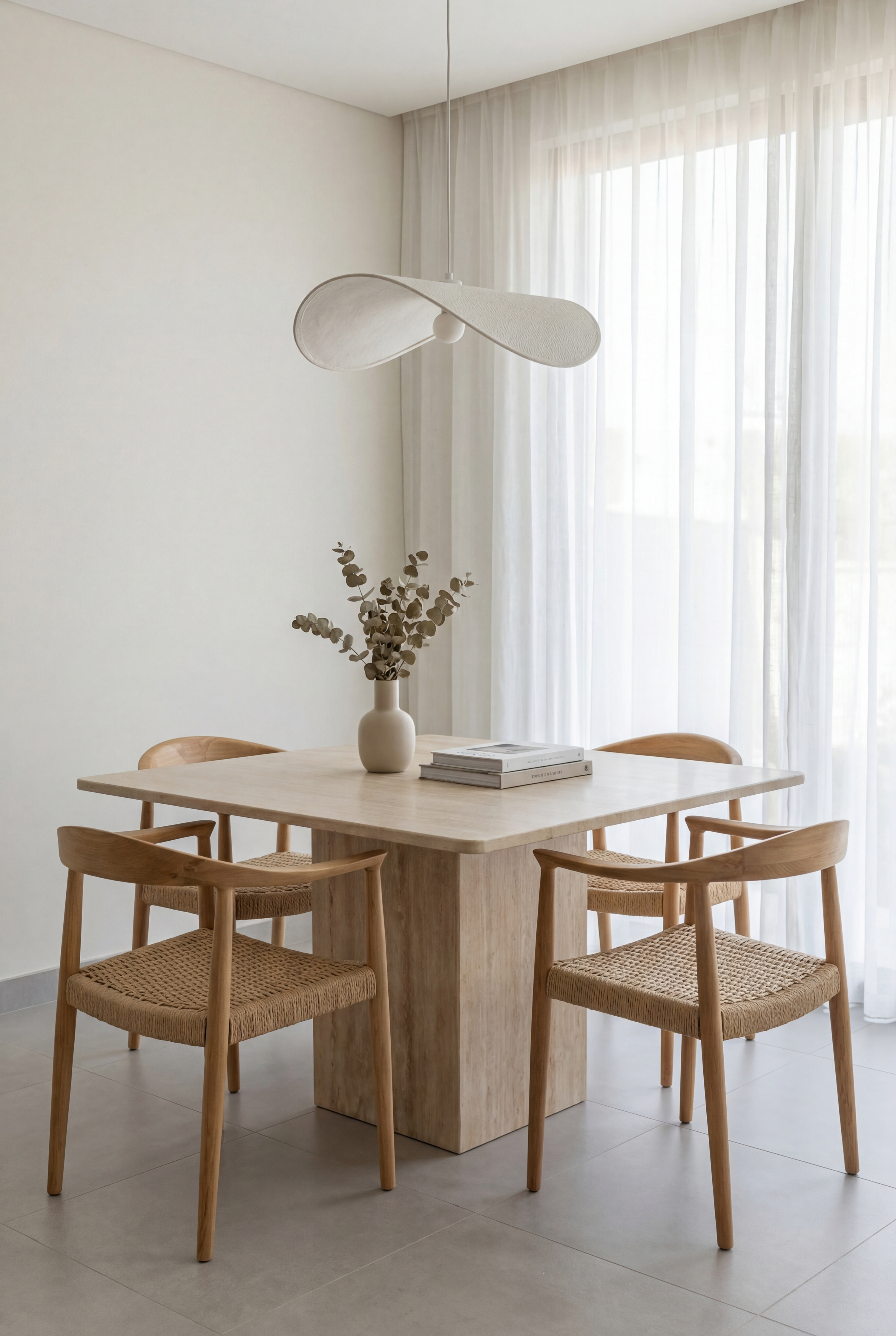 Create a sense of harmony with the square travertine Dining Table. Durable as well as striking, this travertine table is a perfect example of how beauty can be found in the simplest of designs. This table exudes sculptural appeal with its stunning neutral color and sleek design.