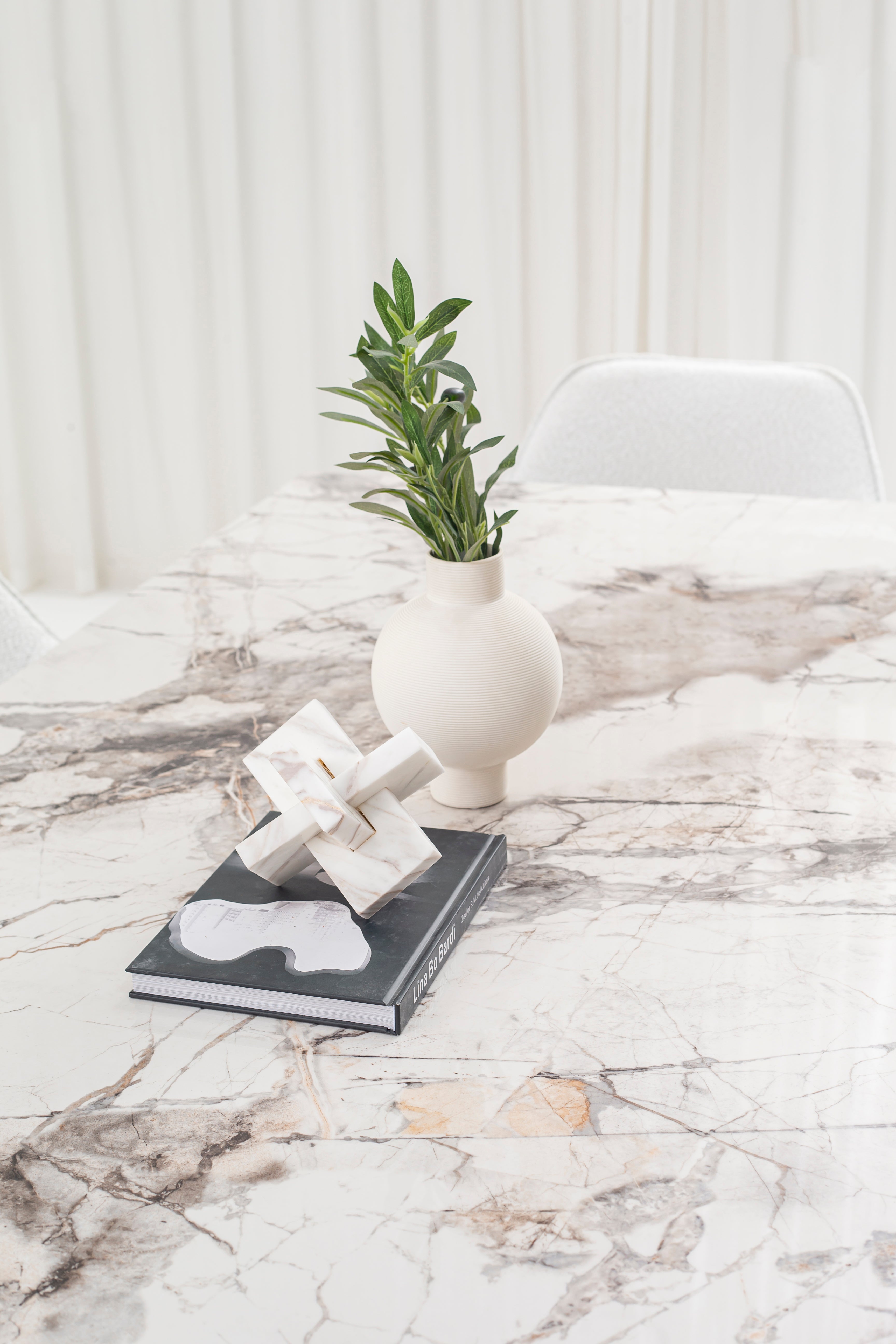 A true statement piece that speaks to your sophisticated taste. This hand-carved, genuine white marble sculpture showcases a unique abstract knot design, intricately crafted from premium Calacatta Greek marble. Its polished, smooth texture and elegant white and grey veining add a touch of timeless luxury and modern artistry to any space, from your living room to your office. Perfect as a decorative accent, tabletop decor, or shelf ornament, this luxury marble decor piece embodies minimalist elegance and contemporary sculpture, making it the ideal focal point for your home decor needs. Discover the beauty of natural stone art and infuse your space with unparalleled style and refinement.