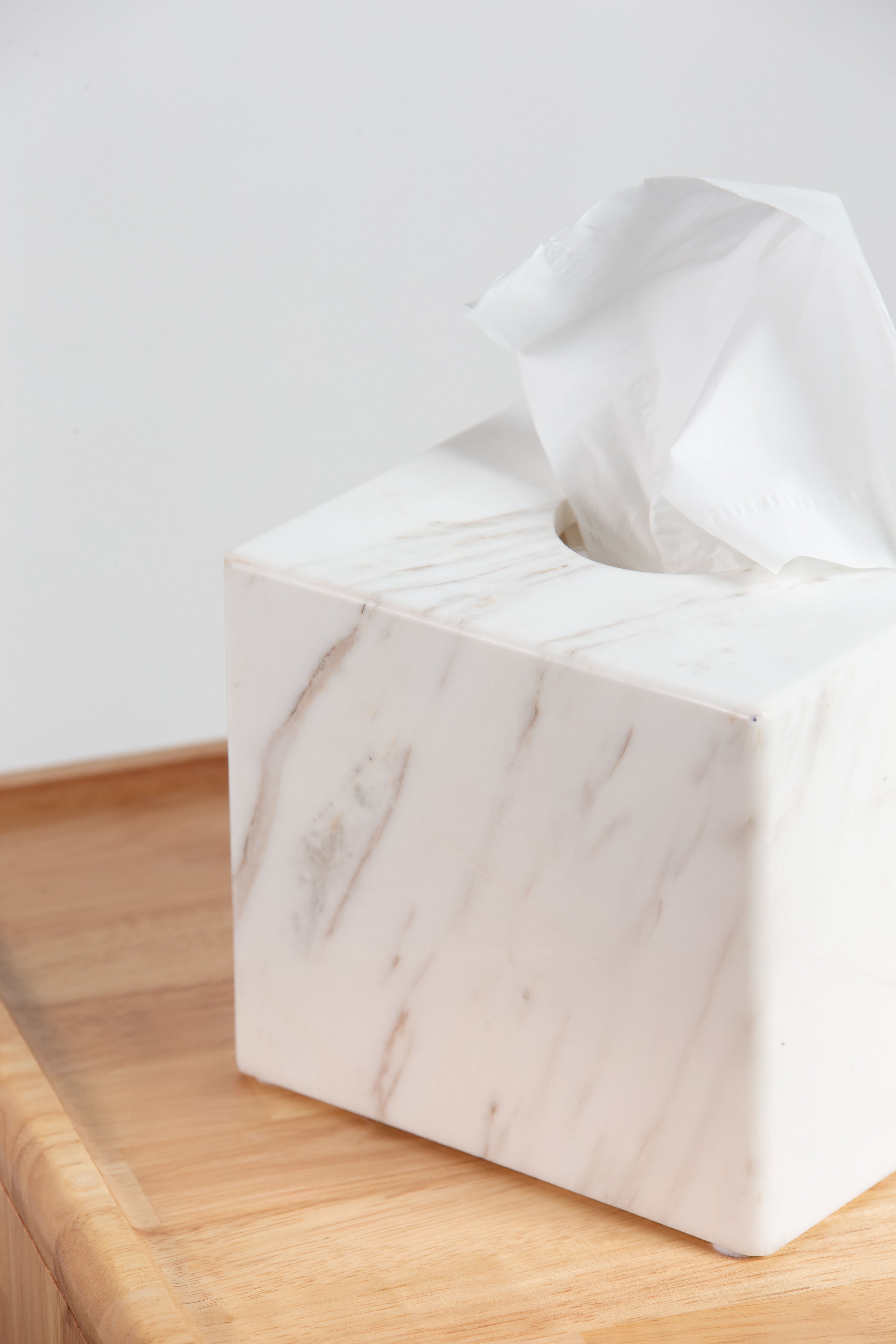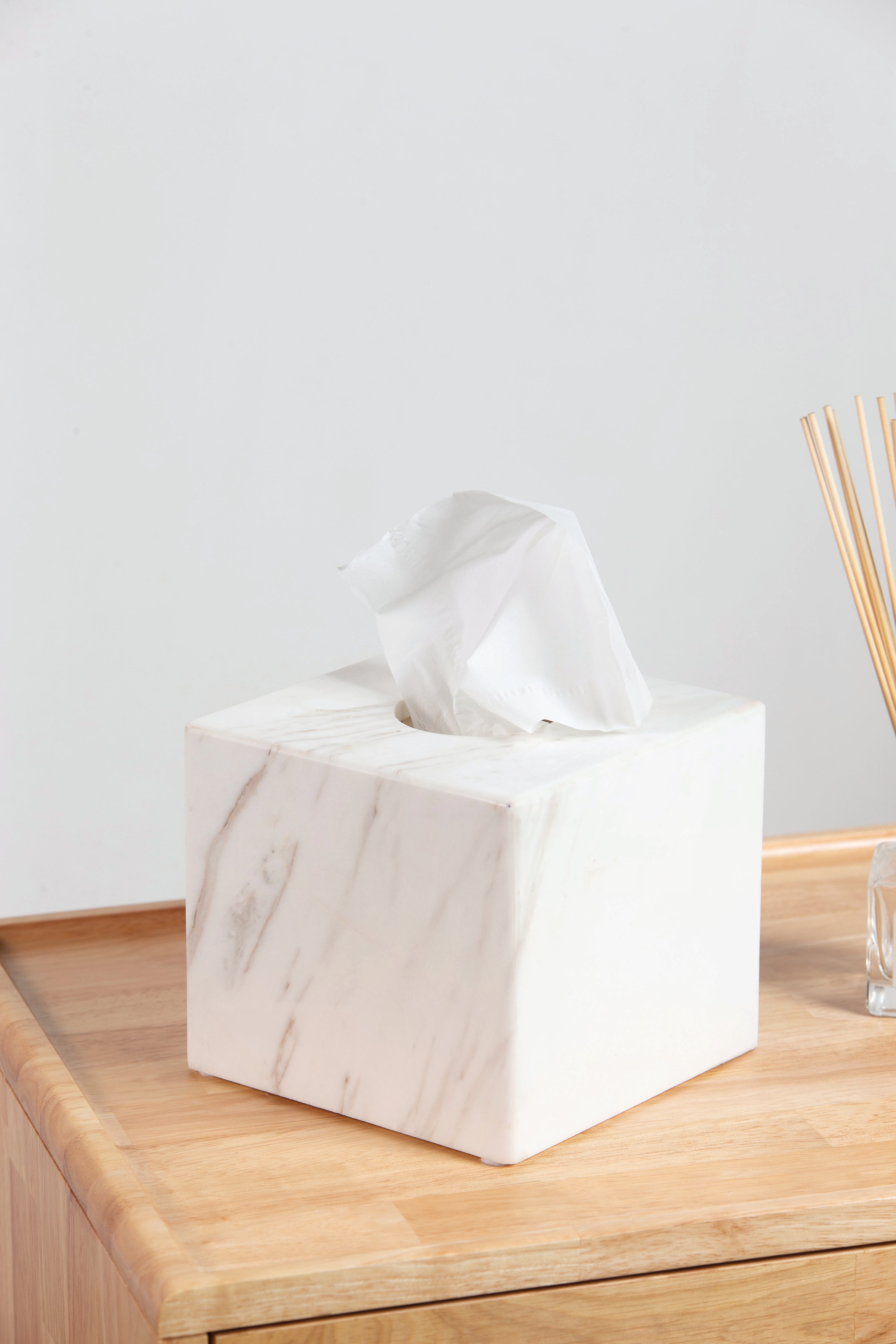 Elevate your everyday essentials with this compact cube tissue holder, crafted from exquisite Calacatta Greek marble. Its minimalist cubic form fits perfectly on countertops, nightstands, or office desks, while the polished white marble surface, adorned with soft grey and warm gold veining, adds a refined touch to any space. Designed for those who appreciate subtle luxury, this elegant tissue box cover brings timeless sophistication and natural beauty to your home decor, effortlessly blending function with style.
