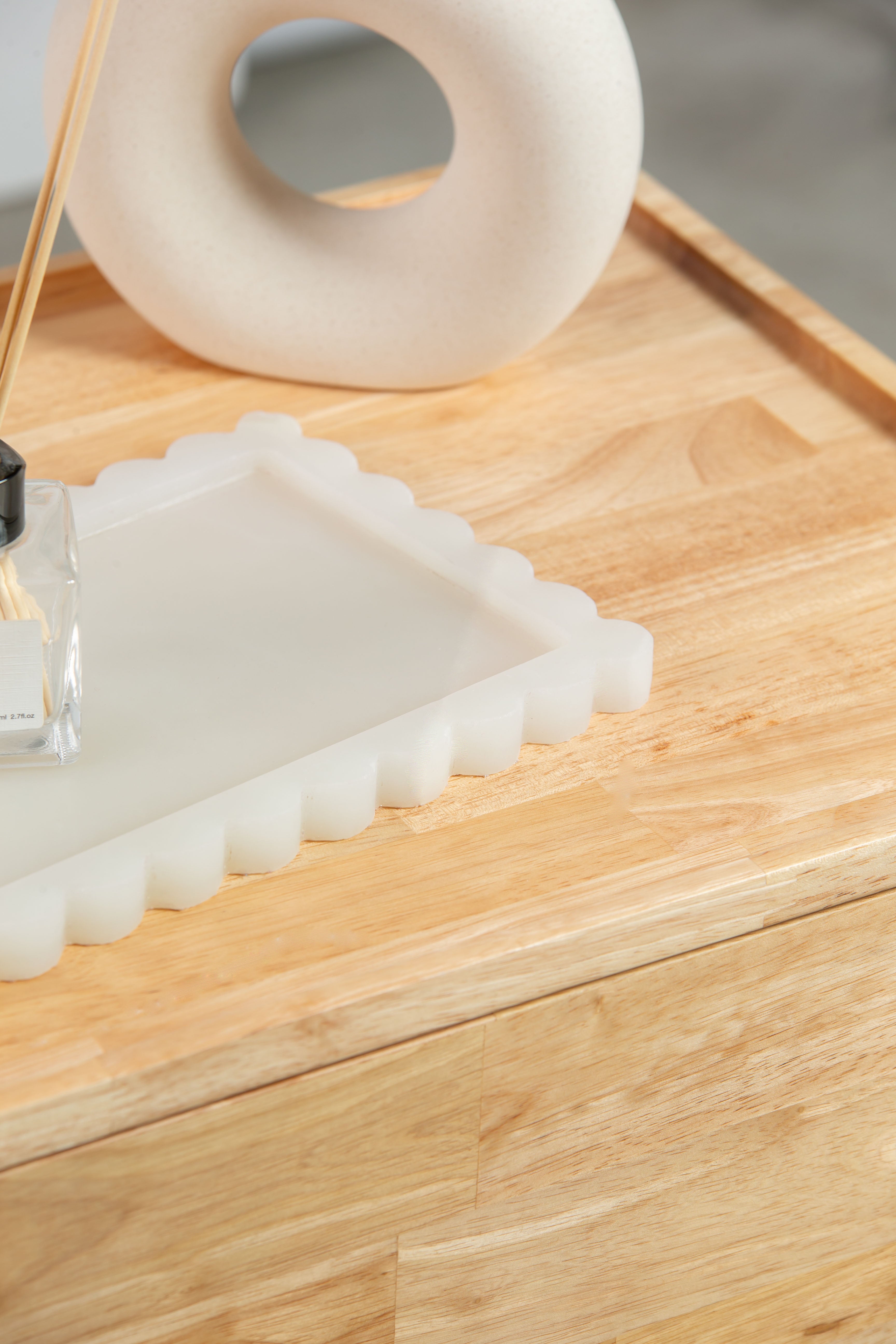 A perfect blend of natural beauty and sophisticated design. As you place this exquisite piece in your space, you'll immediately appreciate its unique character. Crafted from genuine green onyx, its rich emerald tones and delicate veining add a luxurious and serene ambiance to any surface. The rectangular shape, combined with elegantly fluted edges, creates a captivating texture and visual interest, making it an ideal decorative accent or functional organizer for your vanity, coffee table, or entryway. This versatile onyx tray invites you to bring a piece of nature’s artistry into your living environment, offering a stylish solution for displaying diffusers, jewelry, candles, or other cherished items. Discover the timeless elegance and refined craftsmanship of this exceptional green onyx decor piece, designed to enhance your personal sanctuary.