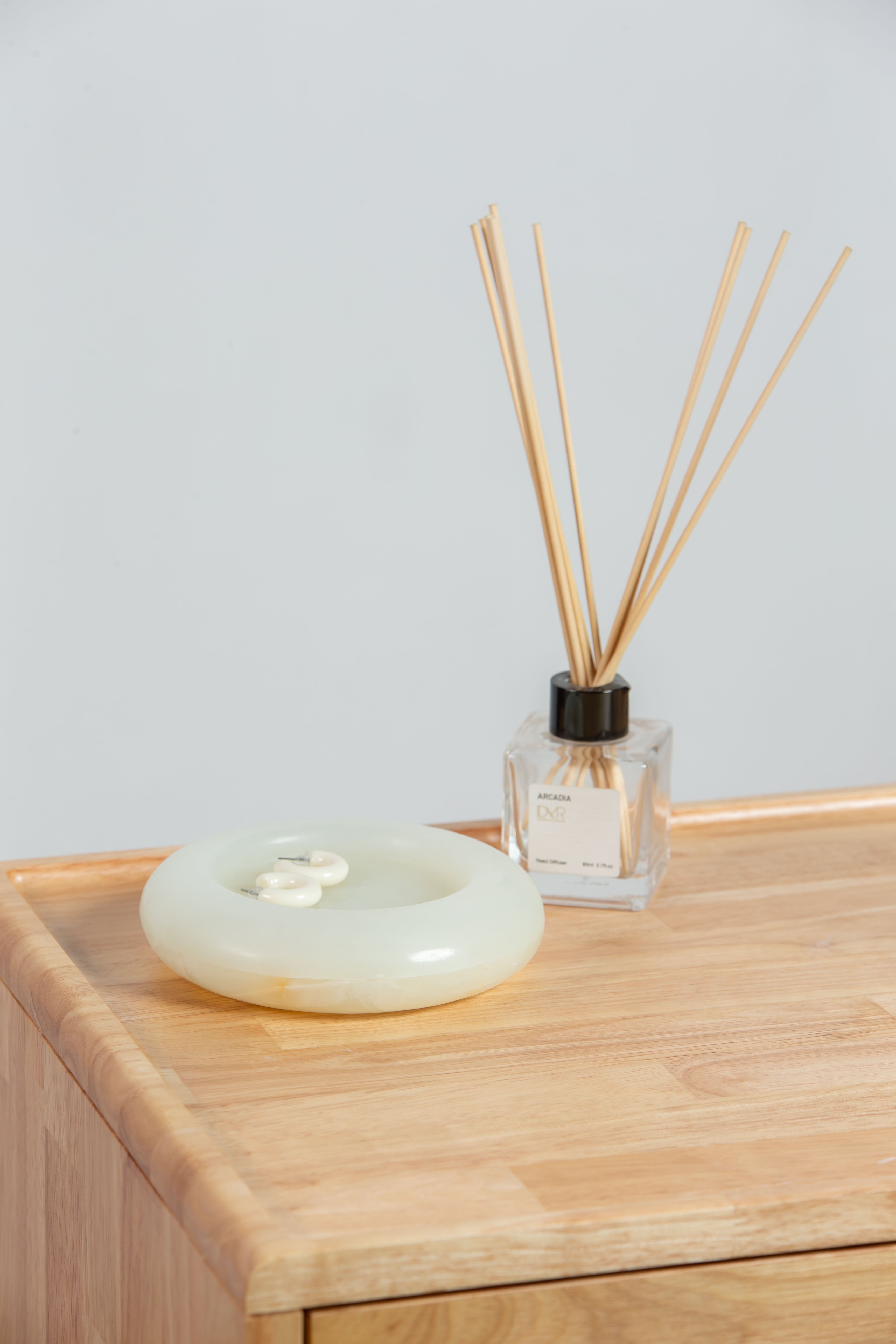 A serene centerpiece designed to elevate your everyday rituals. Hand-carved into a smooth, polished donut shape, its semi-translucent green onyx surface radiates a soft glow, showcasing natural veining and warm ivory undertones. Whether used to cradle a candle, display jewelry, or simply accent a console table, this decorative stone tray brings a calming, organic luxury to your home. Its minimalist circular silhouette and soothing sage hue seamlessly blend with modern, boho, or spa-inspired interiors—putting your aesthetic sensibility at the heart of every space.