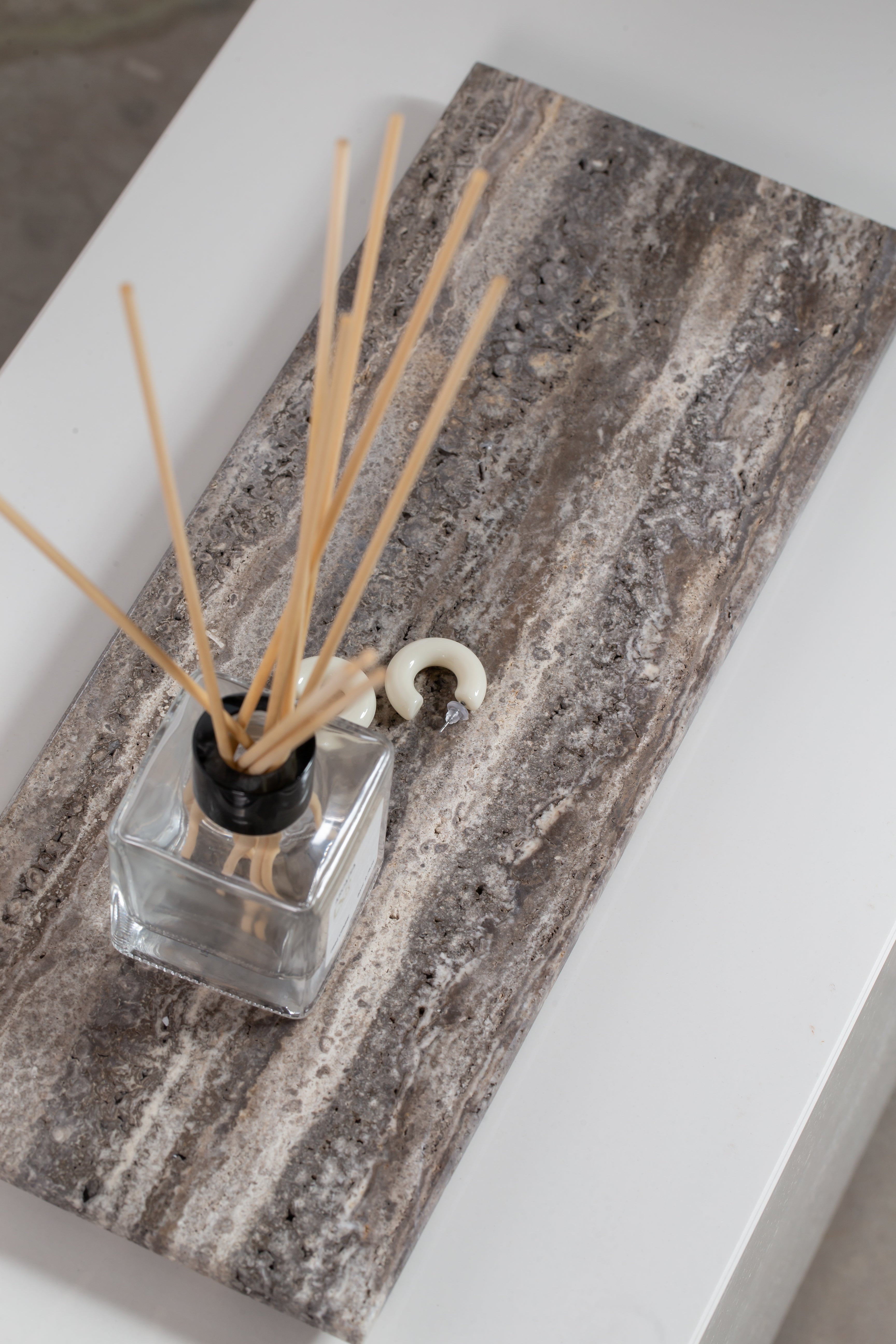 Bring timeless elegance to your space with the Rectangular Silver Grey Travertine Tray—a sleek, natural stone tray crafted from authentic silver grey travertine. Its elongated rectangular shape and smooth, honed finish reveal striking striations and organic veins in soft ash grey, charcoal, and beige tones. Each tray is uniquely textured with natural pores, making it a one-of-a-kind statement piece. Whether you use it as a vanity tray for your skincare essentials, a stylish catch-all on your console, or a centerpiece for candles and decor, this stone tray effortlessly blends into modern, minimalist, or classic interiors. Make your home feel curated, refined, and distinctly yours.