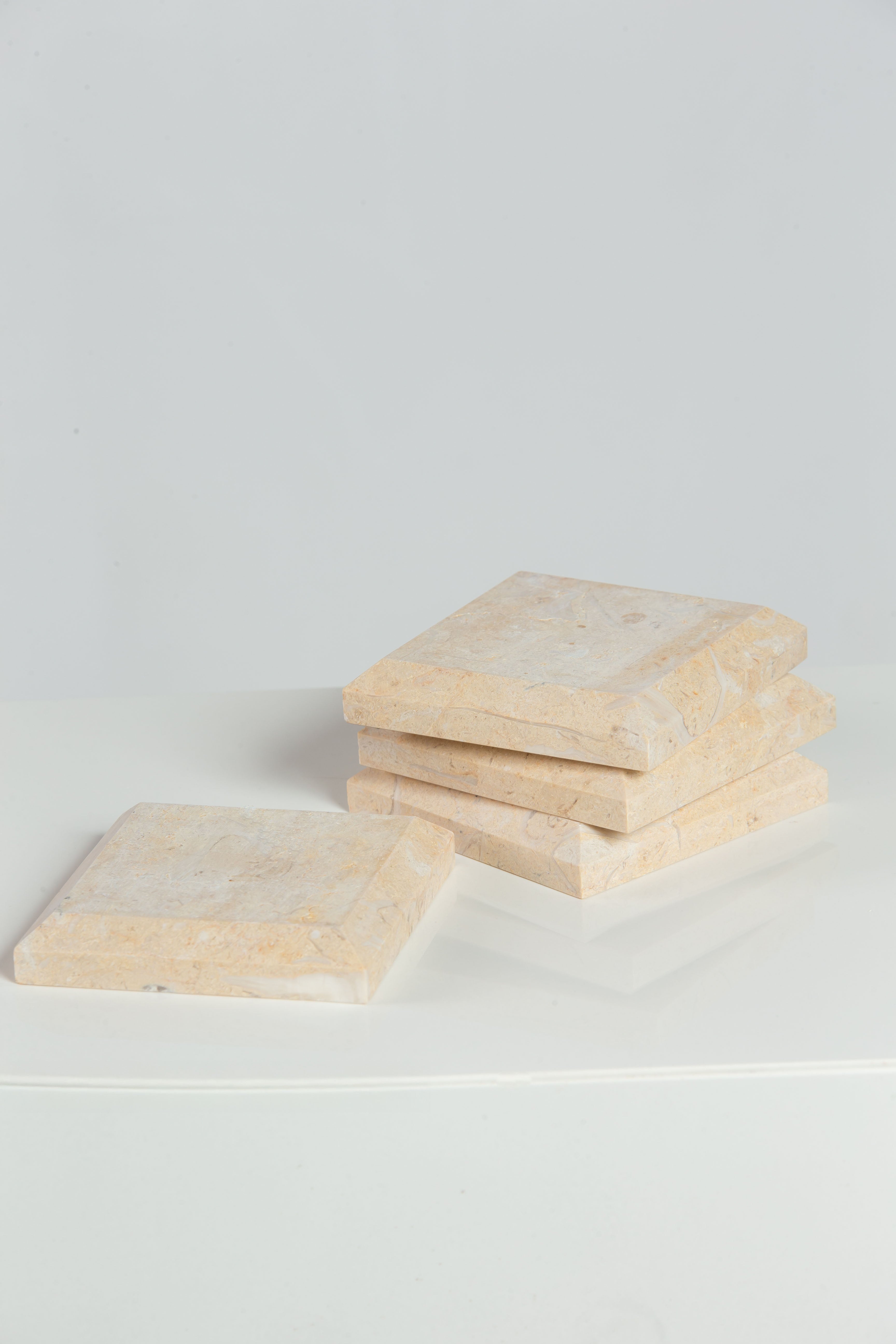 Crafted from genuine Jerusalem Fossil Stone, these square coasters offer a unique blend of natural elegance and practical protection for your surfaces. Each natural stone coaster boasts a smooth, polished finish that highlights its distinctive fossilized patterns and earthy, warm beige and cream tones. The beveled edges add a touch of sophistication to their square design, ensuring these aren't just drink coasters but decorative accents for your home. Protect your furniture in style with these unique stone coasters, perfect for your coffee table, dining table, or office desk, making every sip a touch more luxurious.