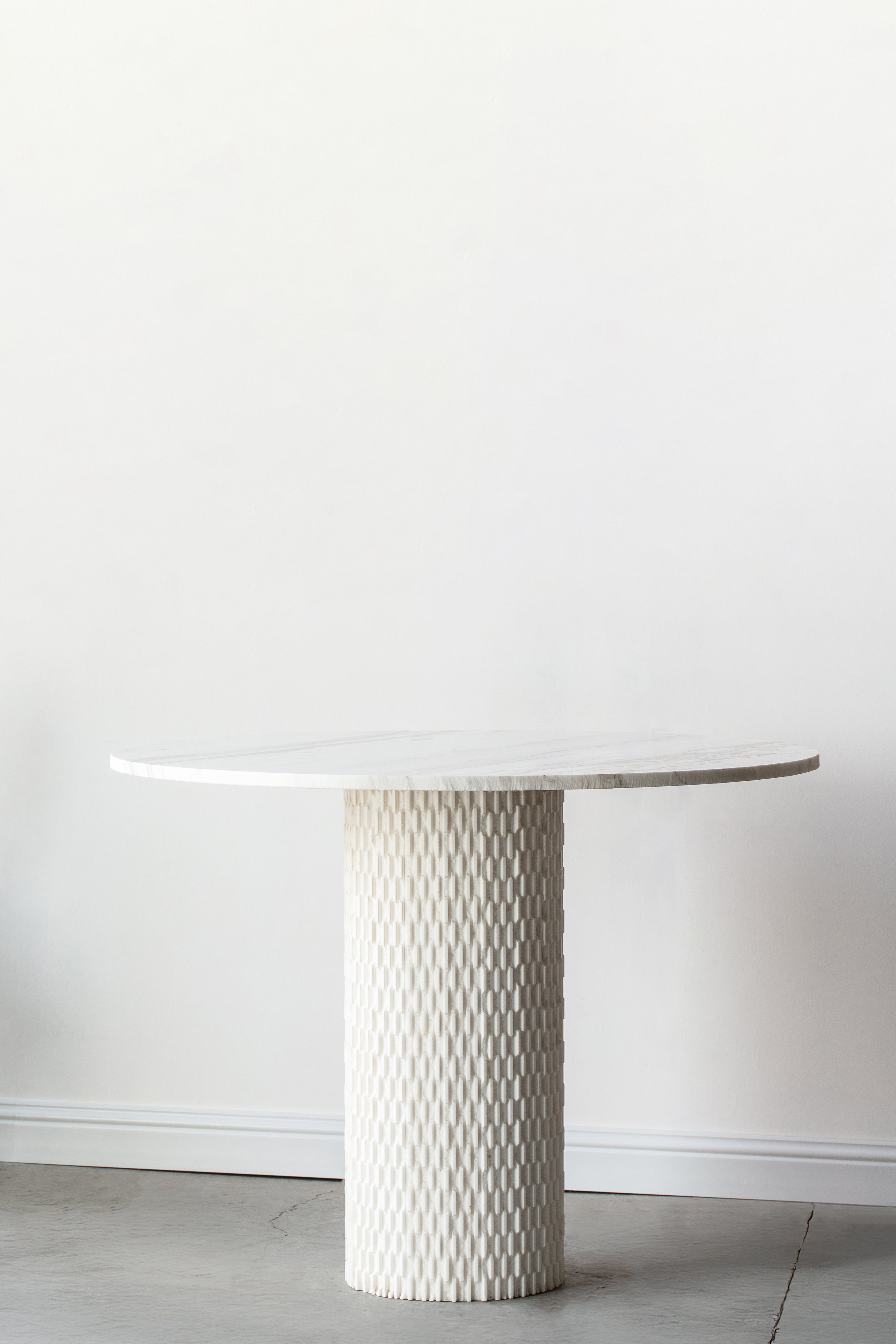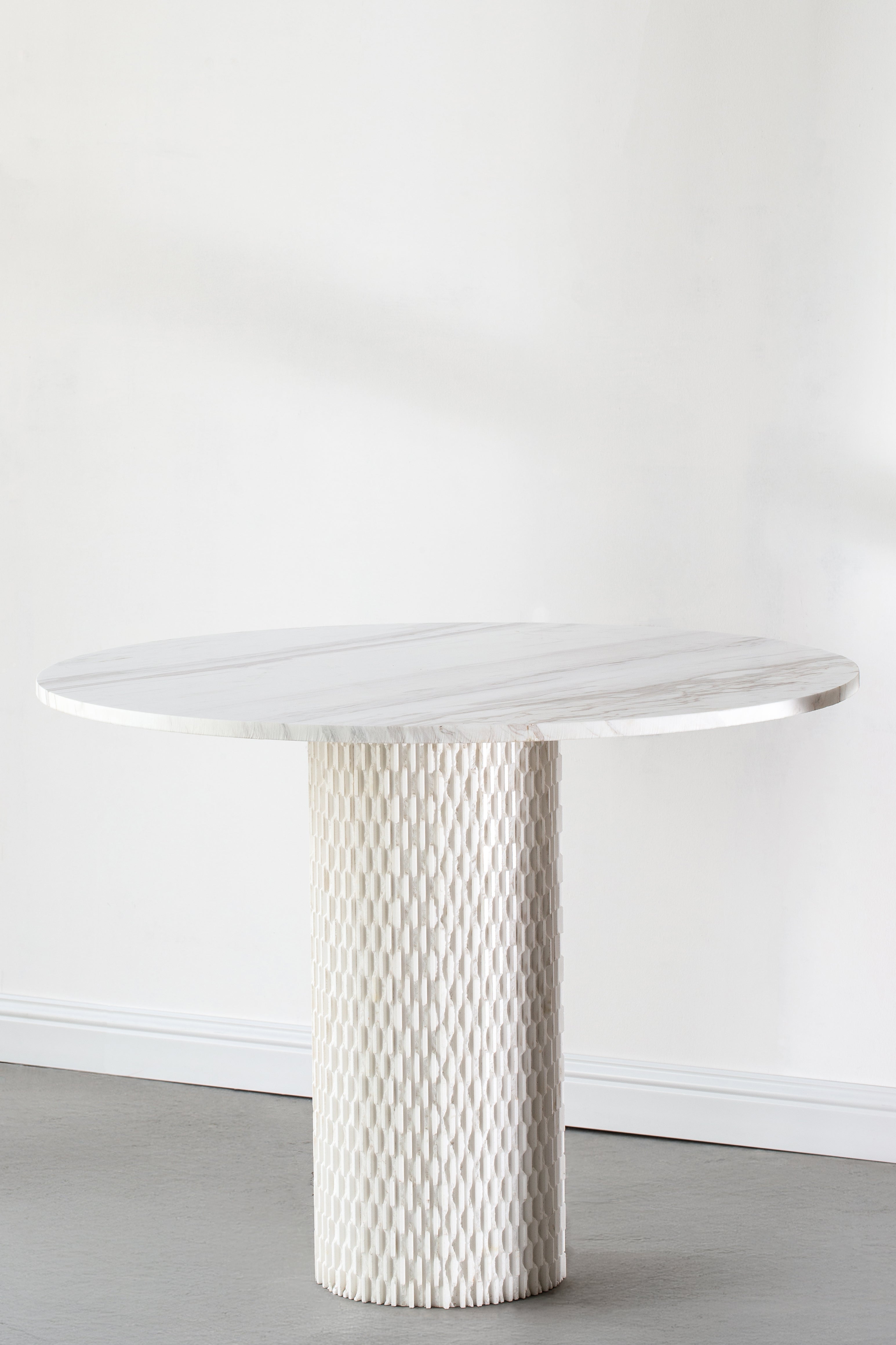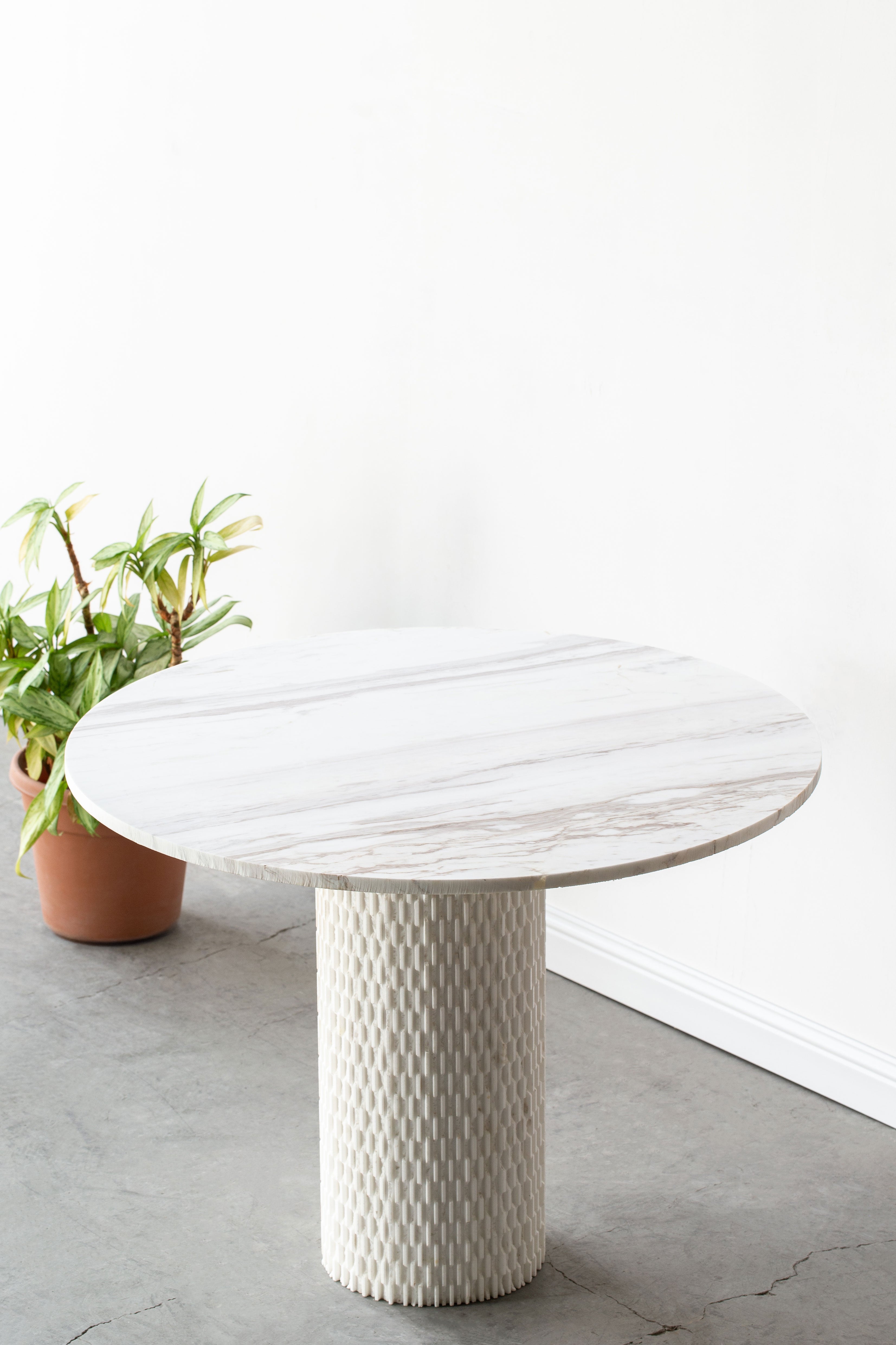 Upgrade your dining experience with our White Marble Round Dining Table, a masterpiece crafted from Thassos and Calacatta Greek marble. Explore our dining chairs and vases to complete your dining room's transformation. Order now and elevate your dining area into a haven of luxury and sophistication.
