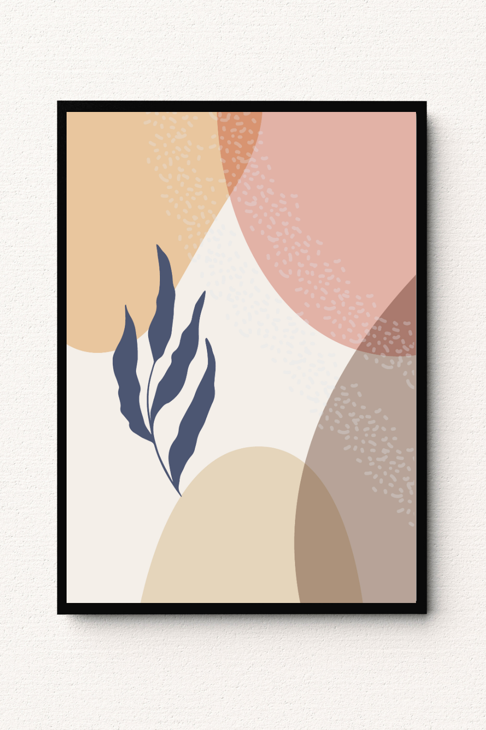 Layered abstract forms in warm sand, blush clay, soft beige, and muted taupe tones create a fluid backdrop for a delicate navy botanical silhouette that adds depth and vertical elegance. The organic curves and subtle textured details bring harmony and warmth to your space, allowing you to style your interior with modern sophistication and refined contemporary balance.
