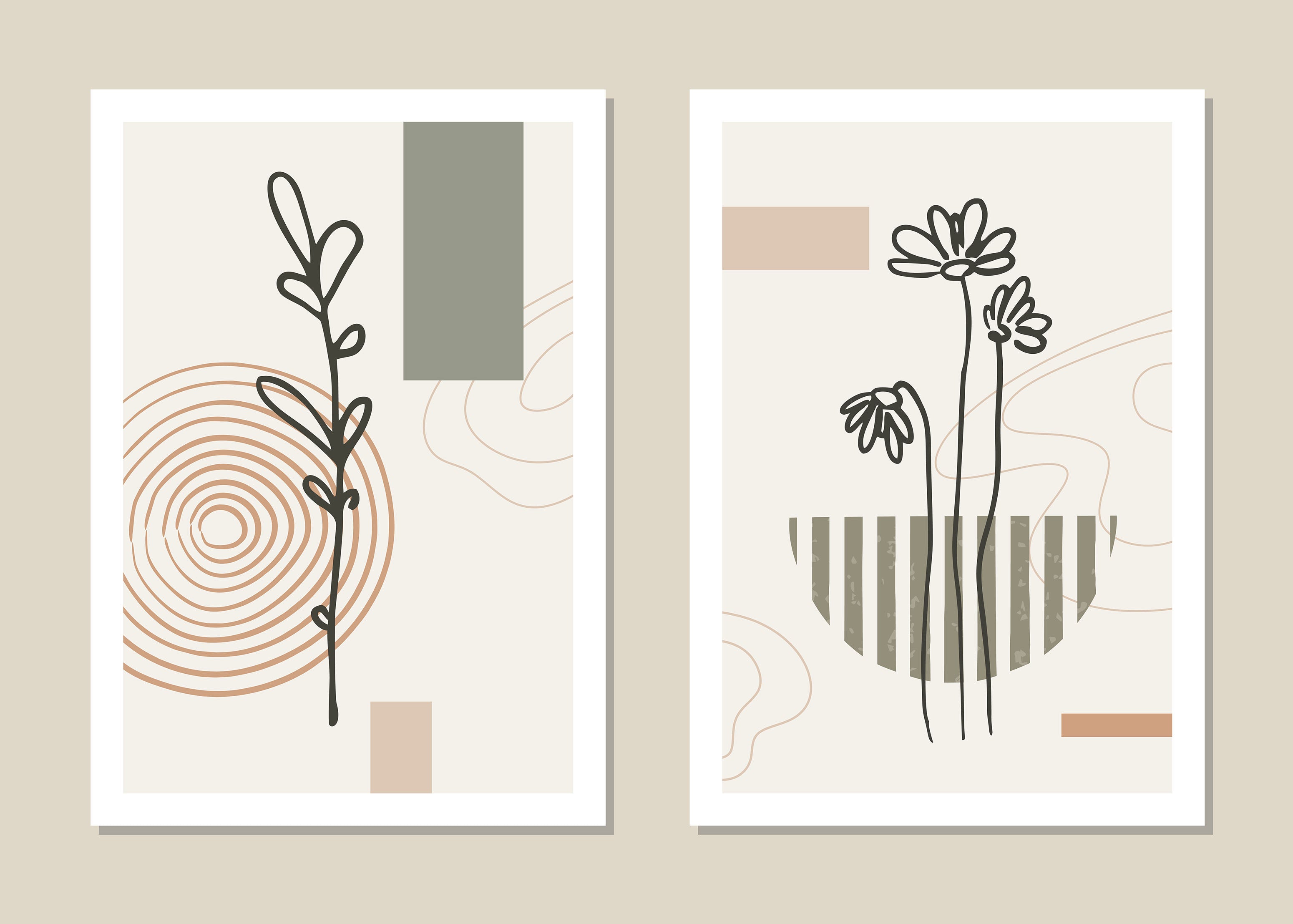 A calm botanical composition where delicate line drawn stems rise gracefully against warm neutral tones, creating a sense of balance and quiet movement that elevates modern interiors with effortless elegance and serene visual depth.