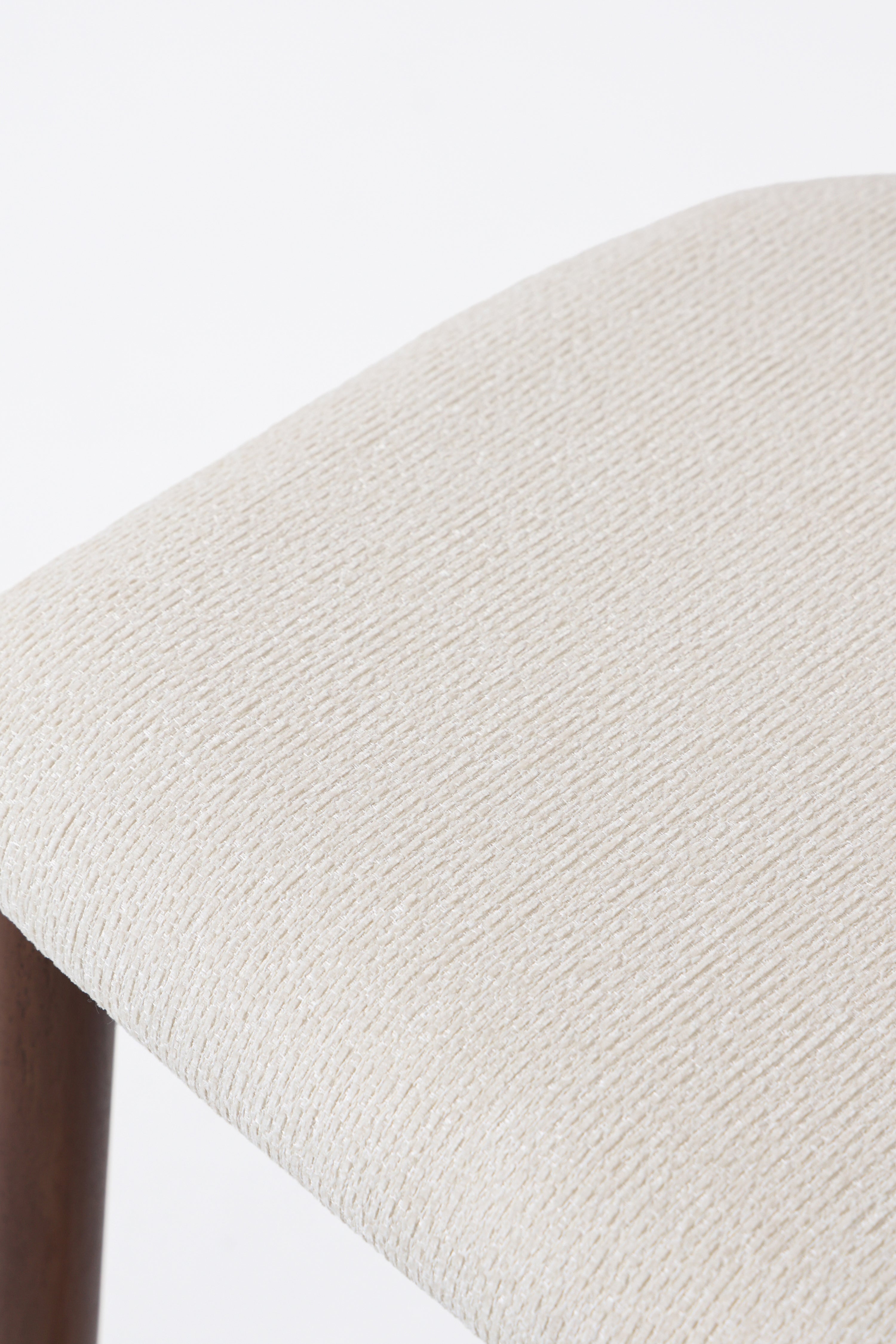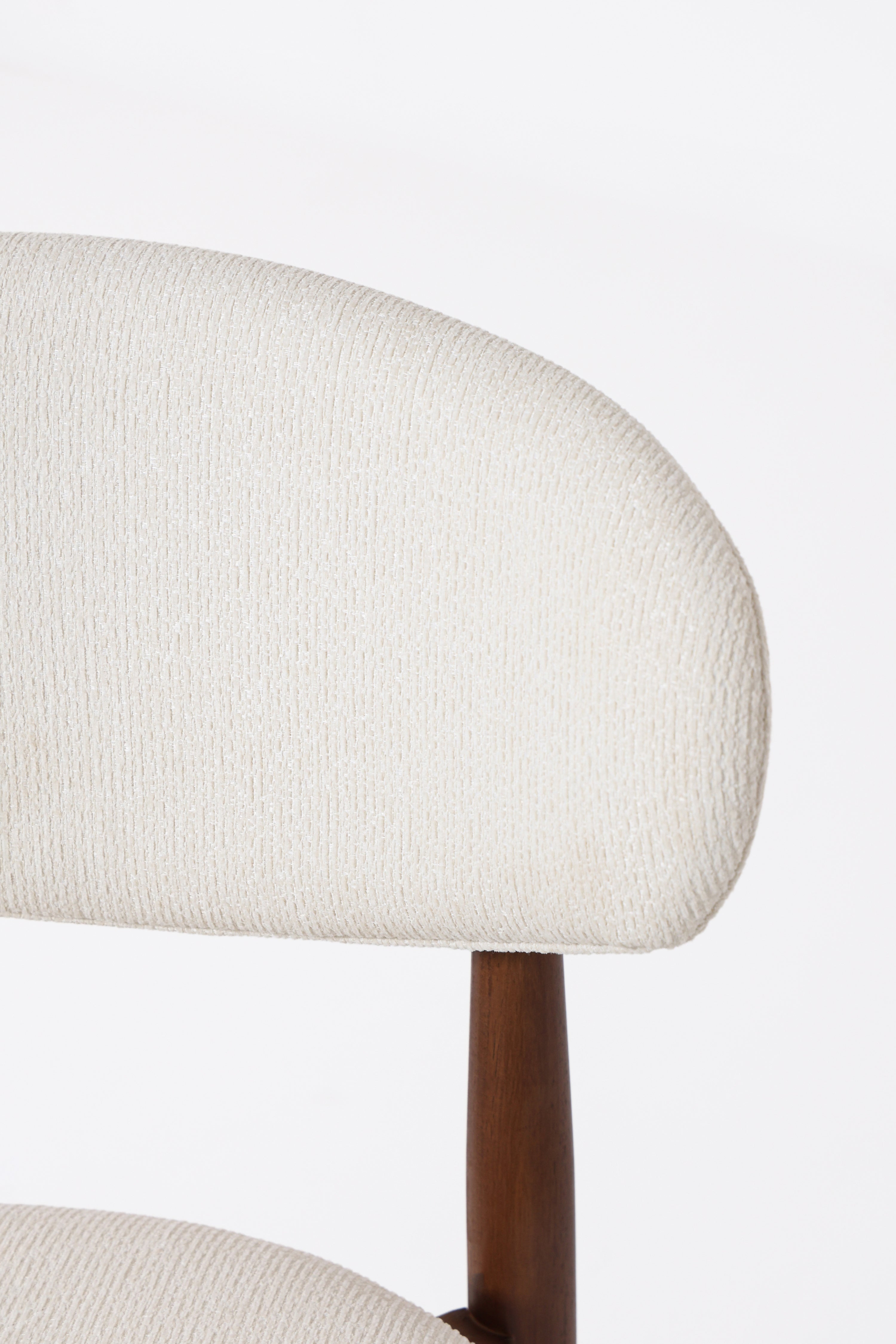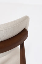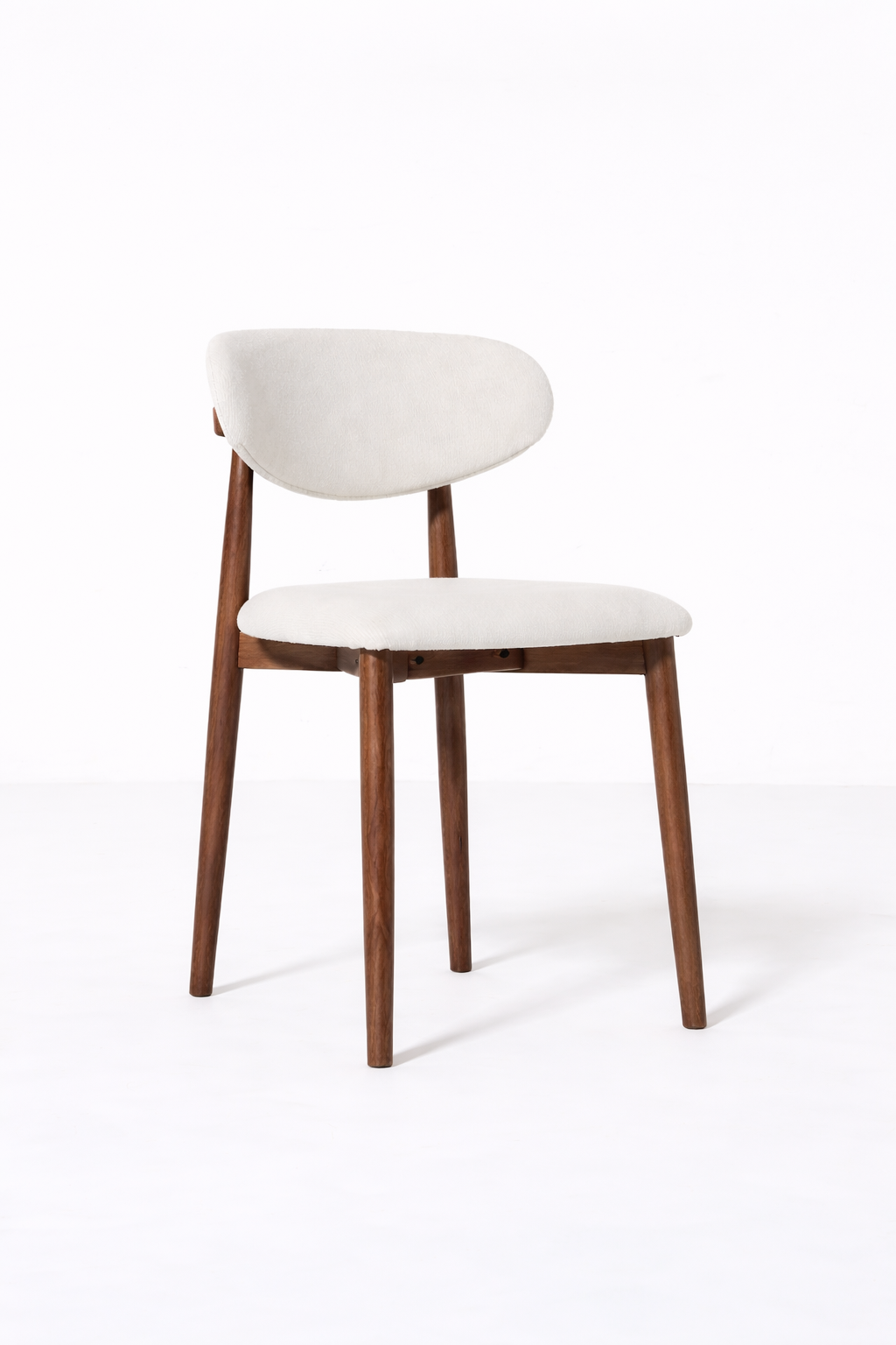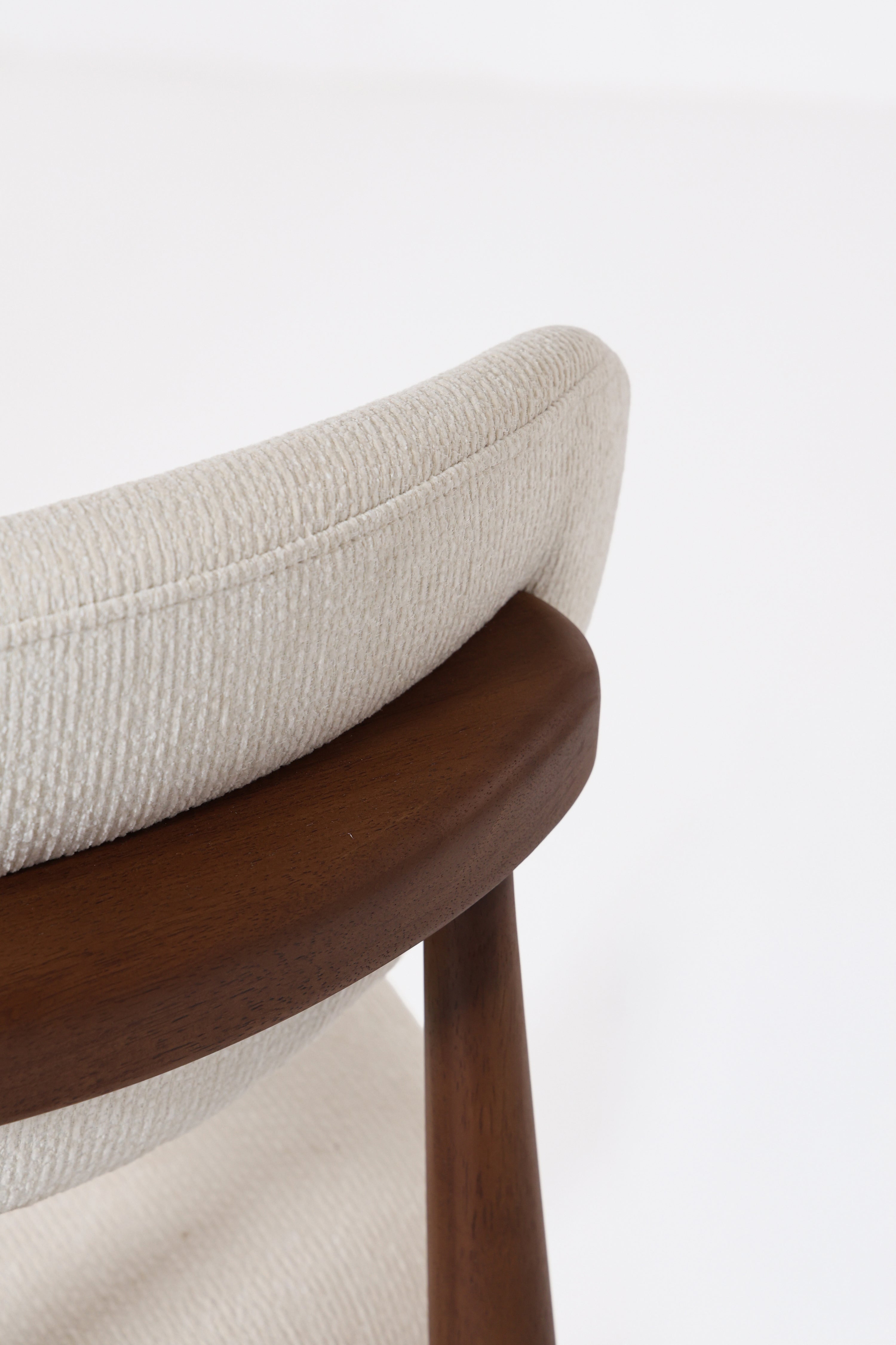 Bring refined simplicity to your dining space with a chair that pairs crisp off white upholstery with a rich dark wood frame for a beautifully balanced, elevated look. The sleek tapered legs and visible wood grain add depth and durability, while the softly upholstered seat and gently curved backrest offer inviting support from casual breakfasts to long conversations after dinner. With a mid century inspired silhouette and a versatile contrast of light fabric and deep wood, it blends effortlessly into modern, Scandinavian, and transitional interiors, making every gathering feel thoughtfully styled.