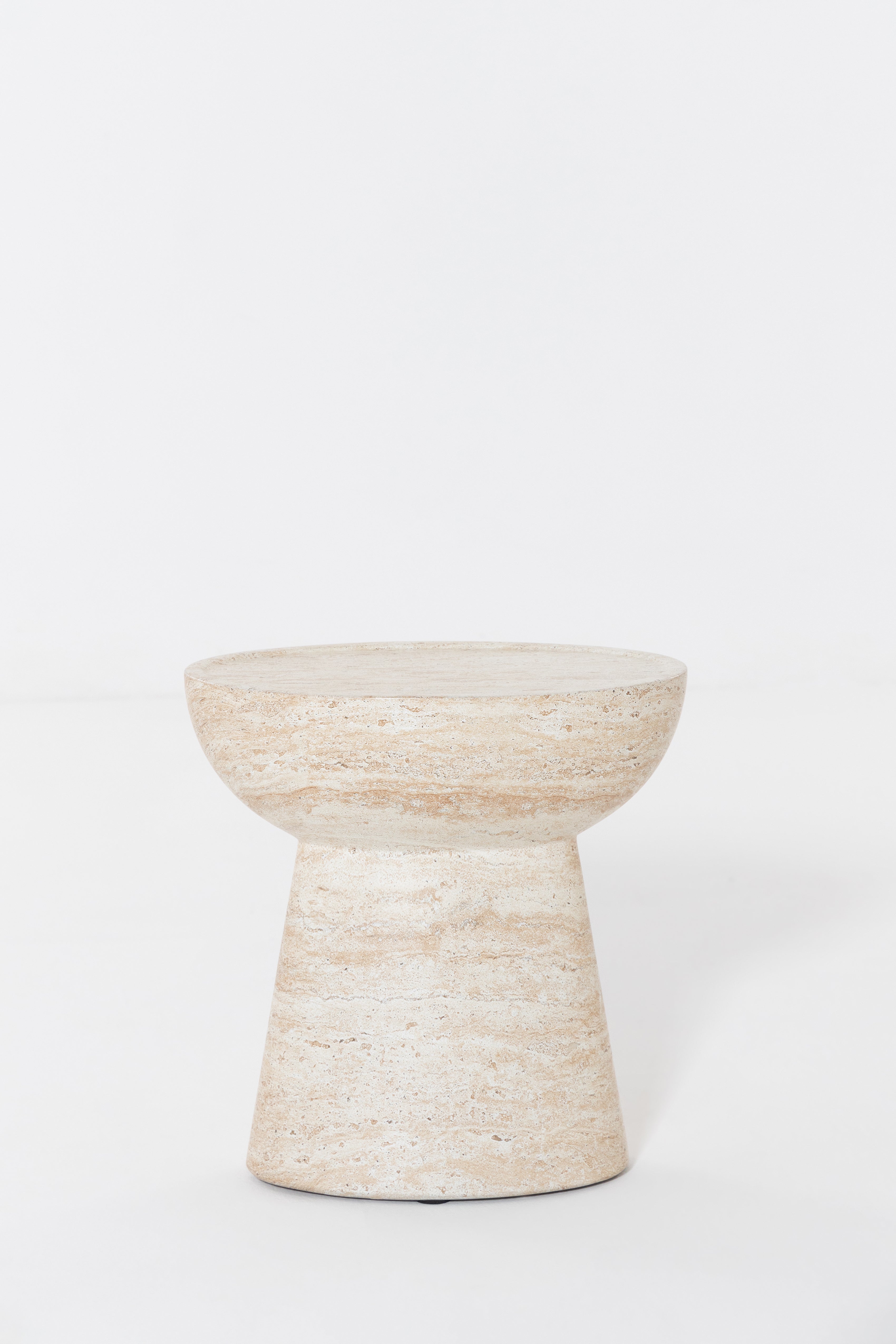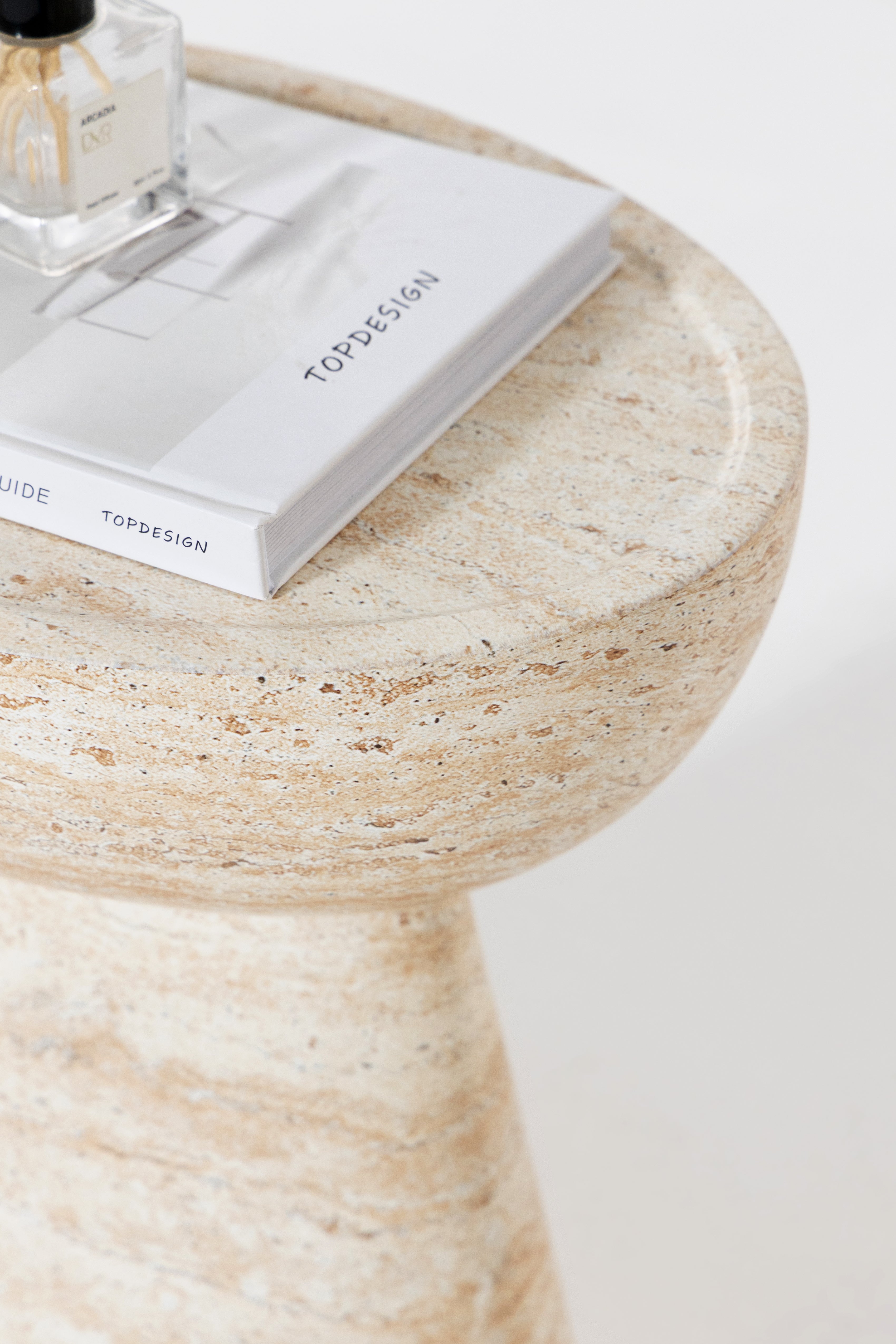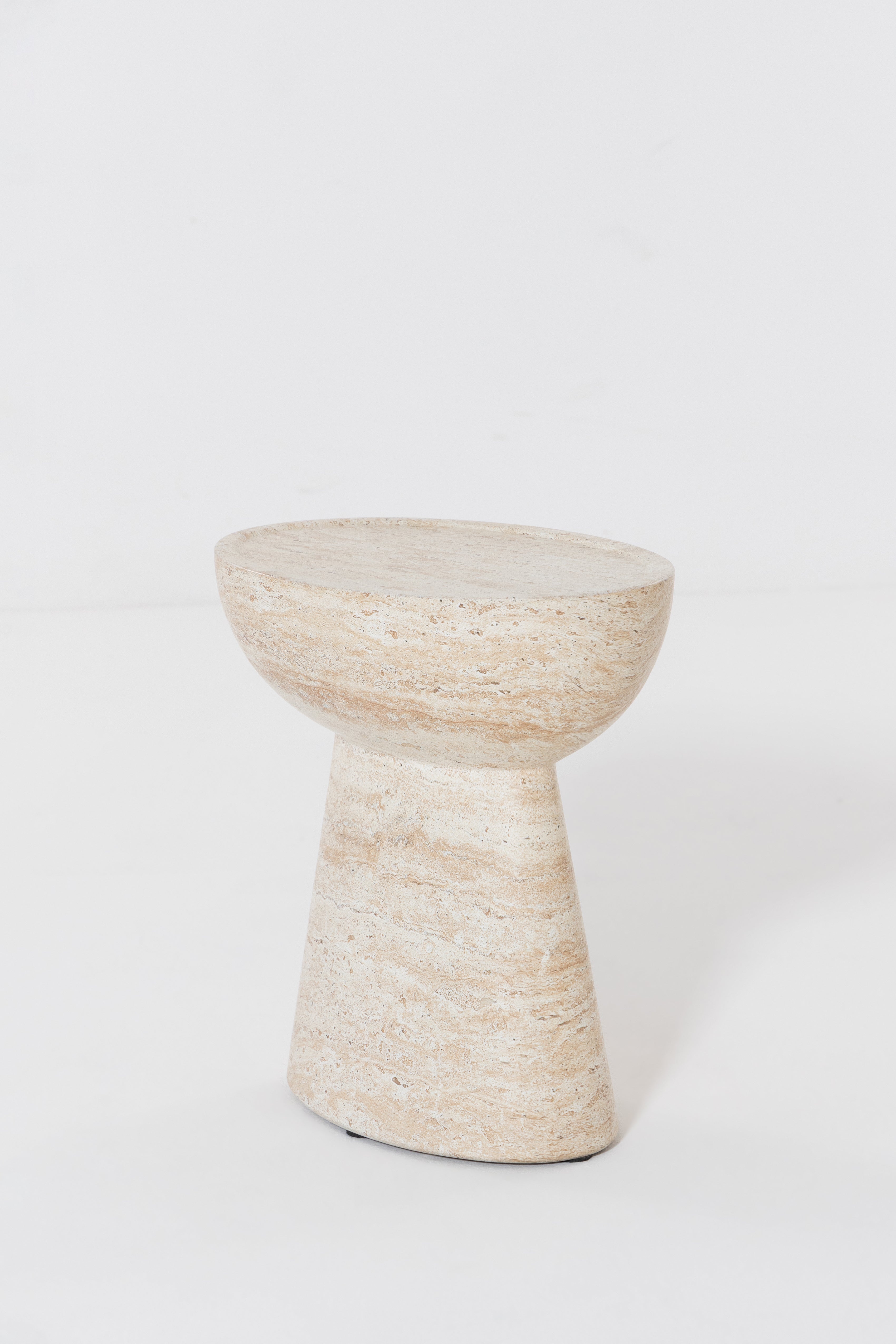 Crafted from premium Fiber Reinforced Concrete, this sculptural side table features a refined travertine finish that highlights its wide oval top and tapered base, blending organic texture with contemporary elegance. Its natural matte surface adds warmth and sophistication, while the smooth rounded top provides practical space for everyday essentials. Versatile enough for minimalist, industrial, or bohemian interiors, this piece serves as both a functional accent and an artistic focal point, enhancing living rooms, bedrooms, or office spaces with its timeless charm, durability, and distinctive modern form.