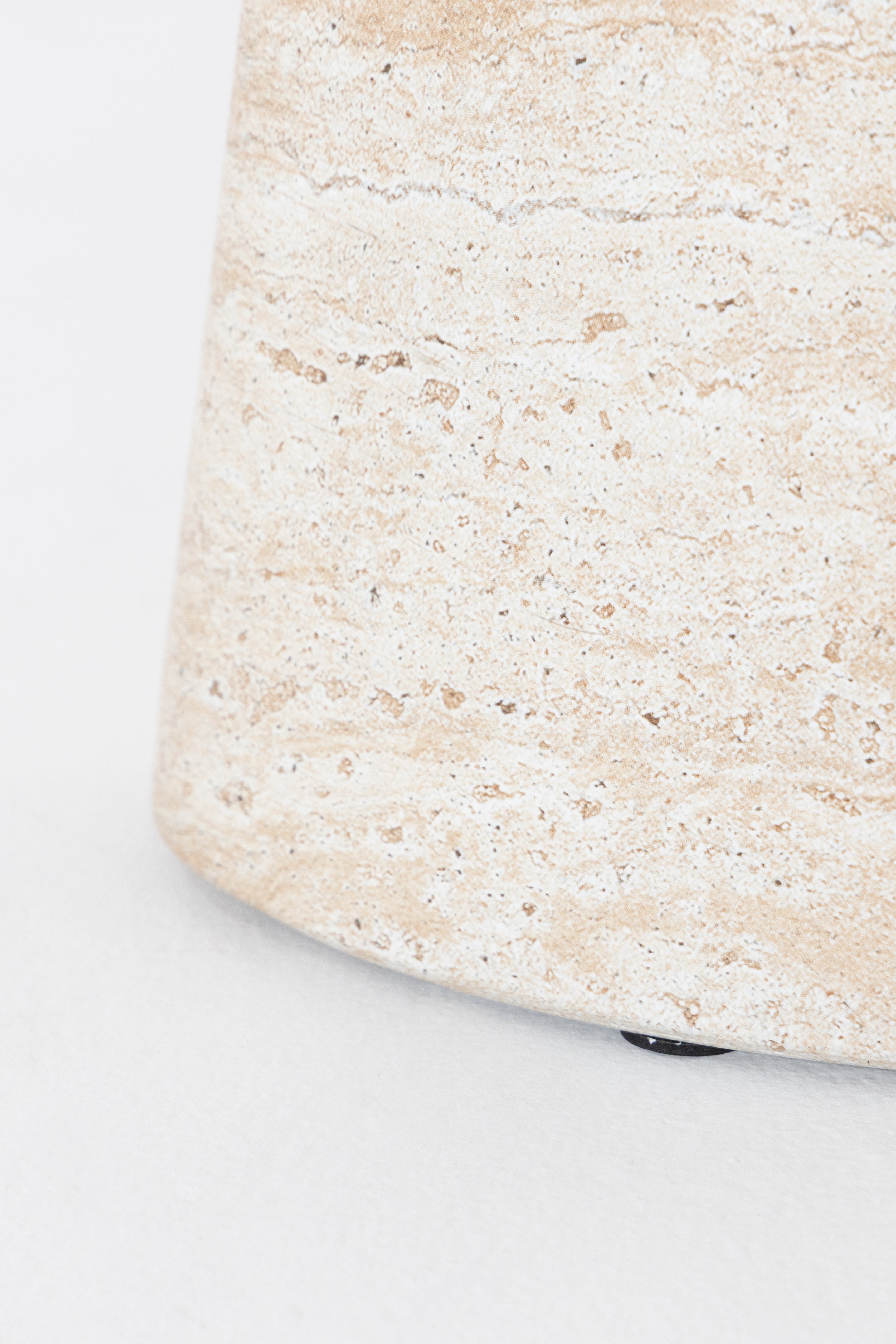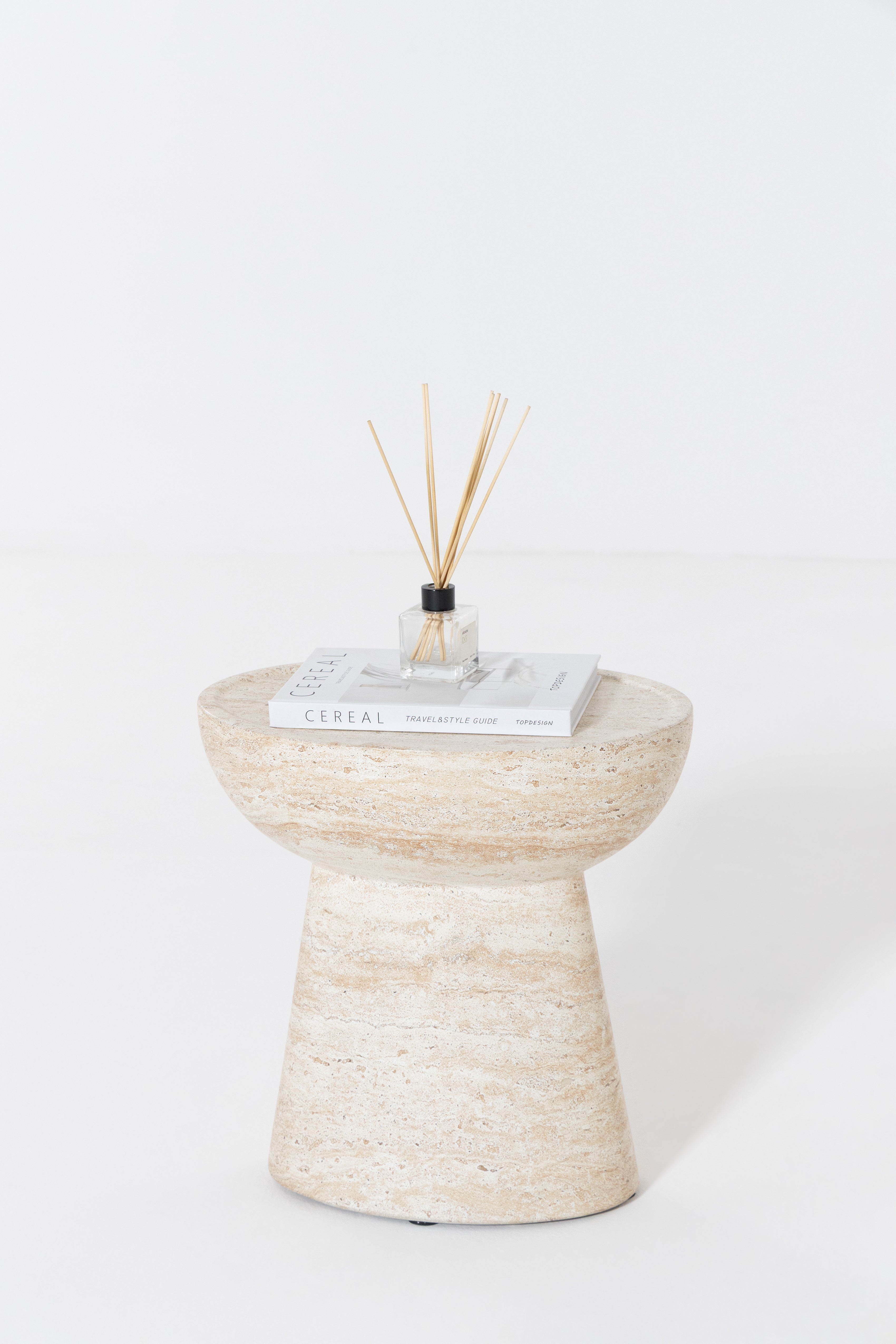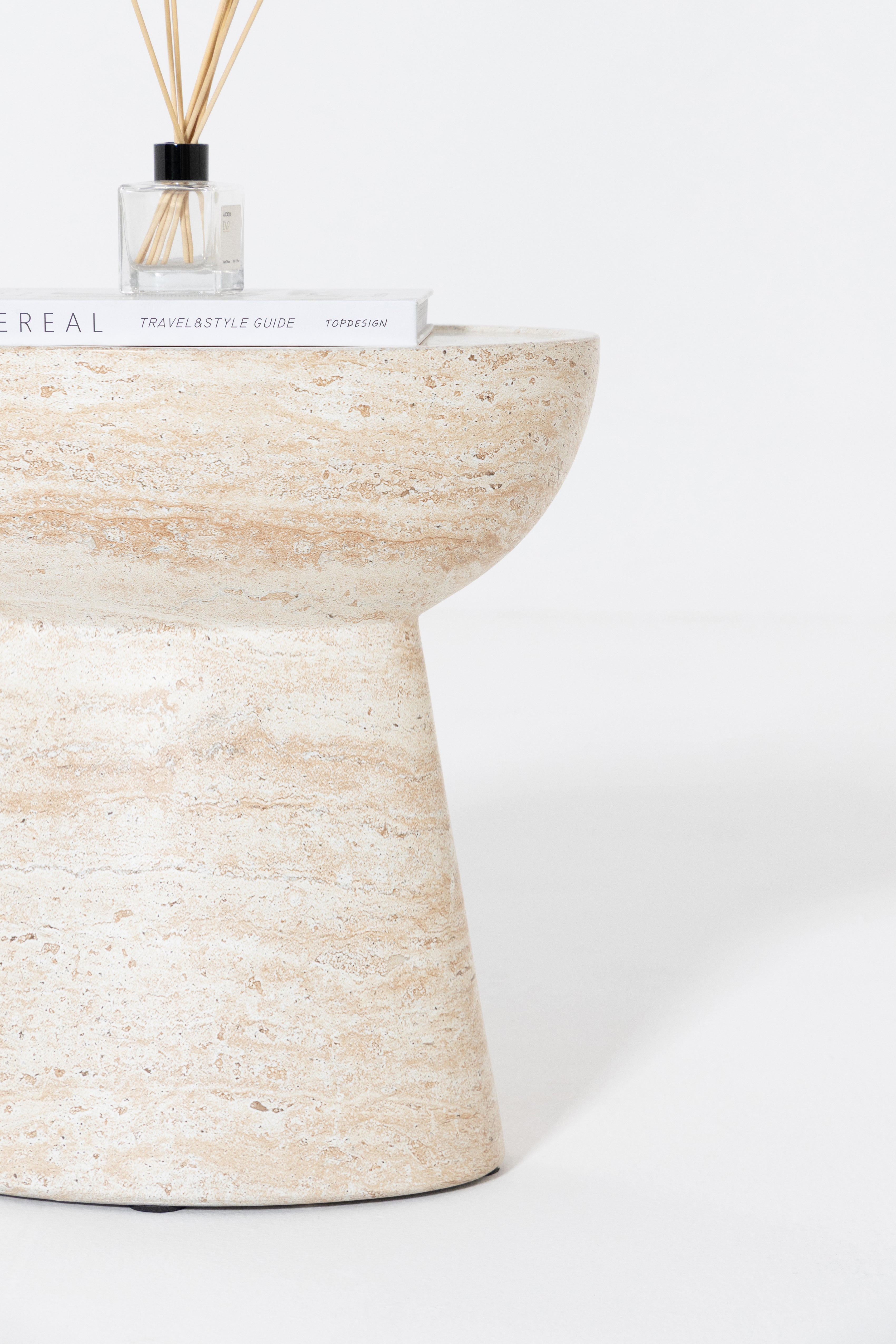 Crafted from premium Fiber Reinforced Concrete, this sculptural side table features a refined travertine finish that highlights its wide oval top and tapered base, blending organic texture with contemporary elegance. Its natural matte surface adds warmth and sophistication, while the smooth rounded top provides practical space for everyday essentials. Versatile enough for minimalist, industrial, or bohemian interiors, this piece serves as both a functional accent and an artistic focal point, enhancing living rooms, bedrooms, or office spaces with its timeless charm, durability, and distinctive modern form.