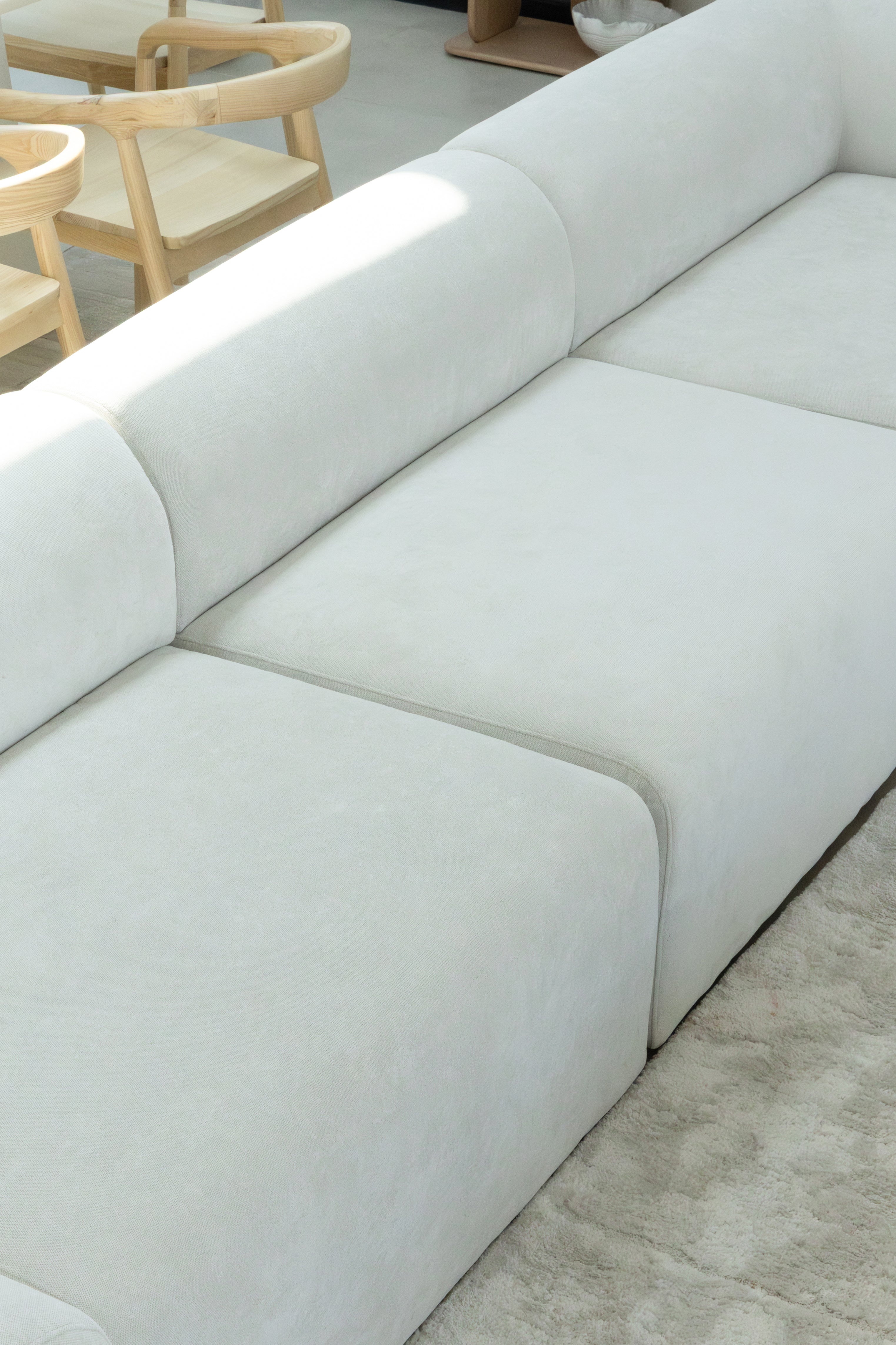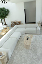Designed for modern living, this L shape sectional sofa brings effortless comfort and refined simplicity to your space. Its clean silhouette and generously cushioned seating create an inviting area for relaxation, entertaining, or everyday lounging. Upholstered in a soft neutral tone, it blends seamlessly with contemporary interiors while maintaining a timeless aesthetic. The spacious configuration offers both style and functionality, making it a sophisticated centerpiece for any living room.
