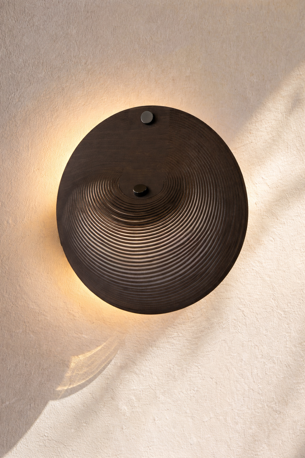 Make a bold, modern statement with this sculptural black disc wall light, designed with concentric grooves that create a striking sense of depth and quiet movement. Its matte black finish brings a refined architectural edge to hallways, bedrooms, and living spaces, while the circular form feels artful and balanced on the wall even when unlit. Perfect for minimalist interiors and warm neutral palettes, it adds gallery worthy character and a soft ambience that elevates your space with effortless sophistication.