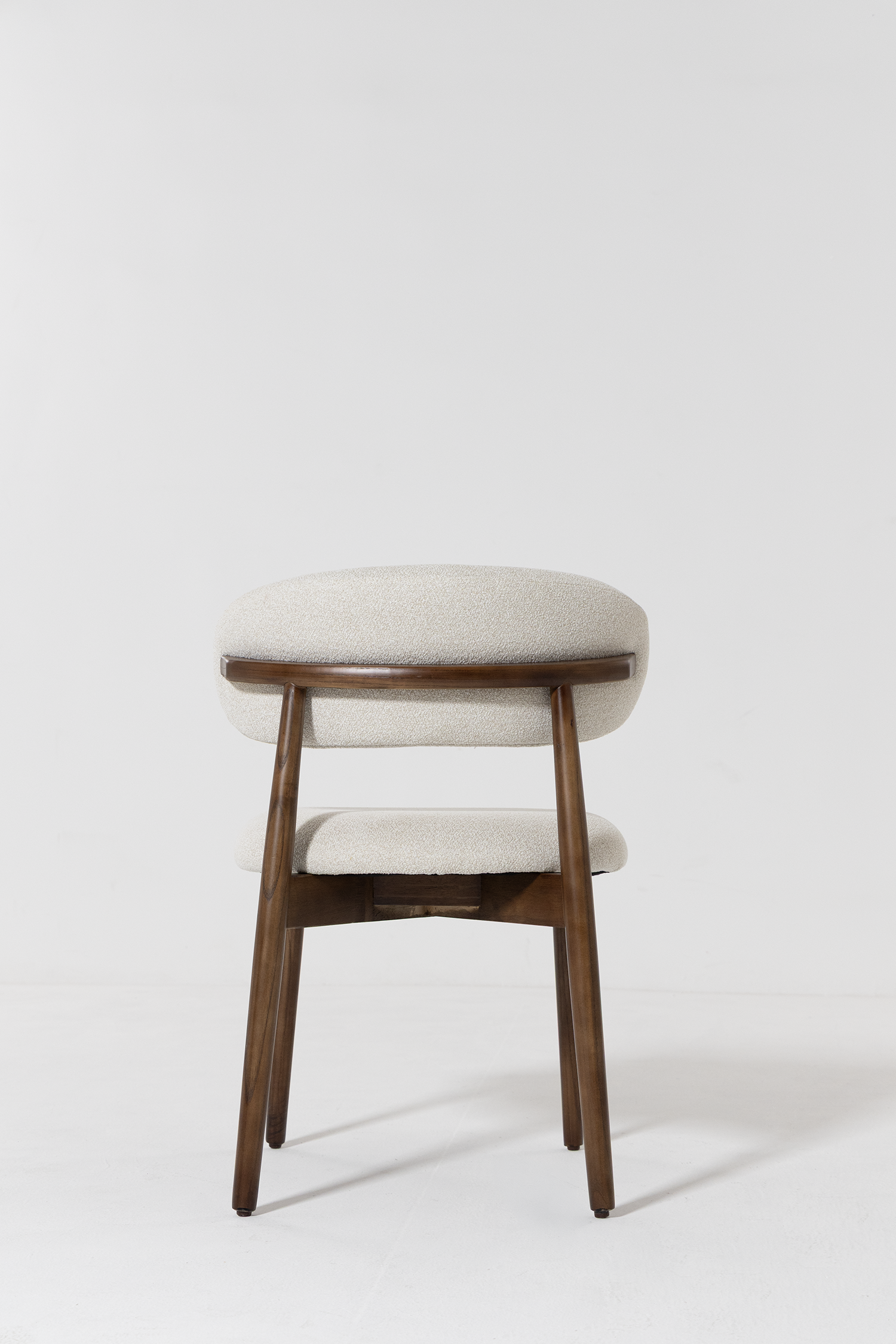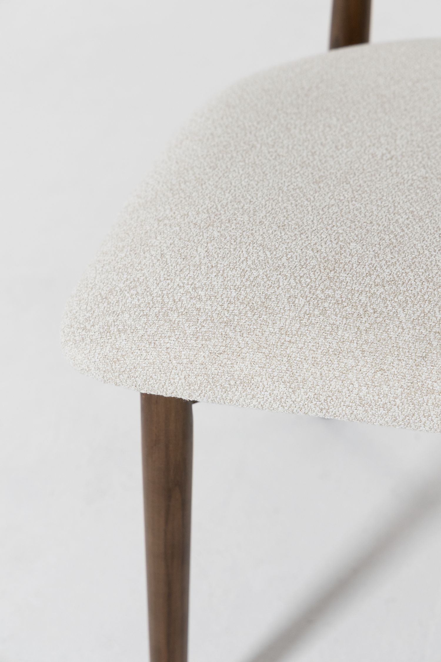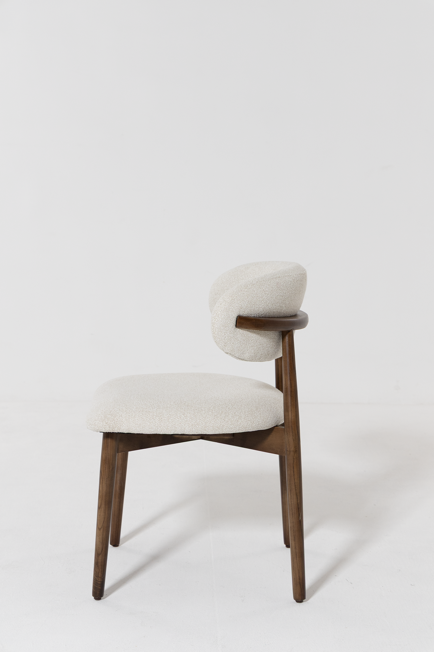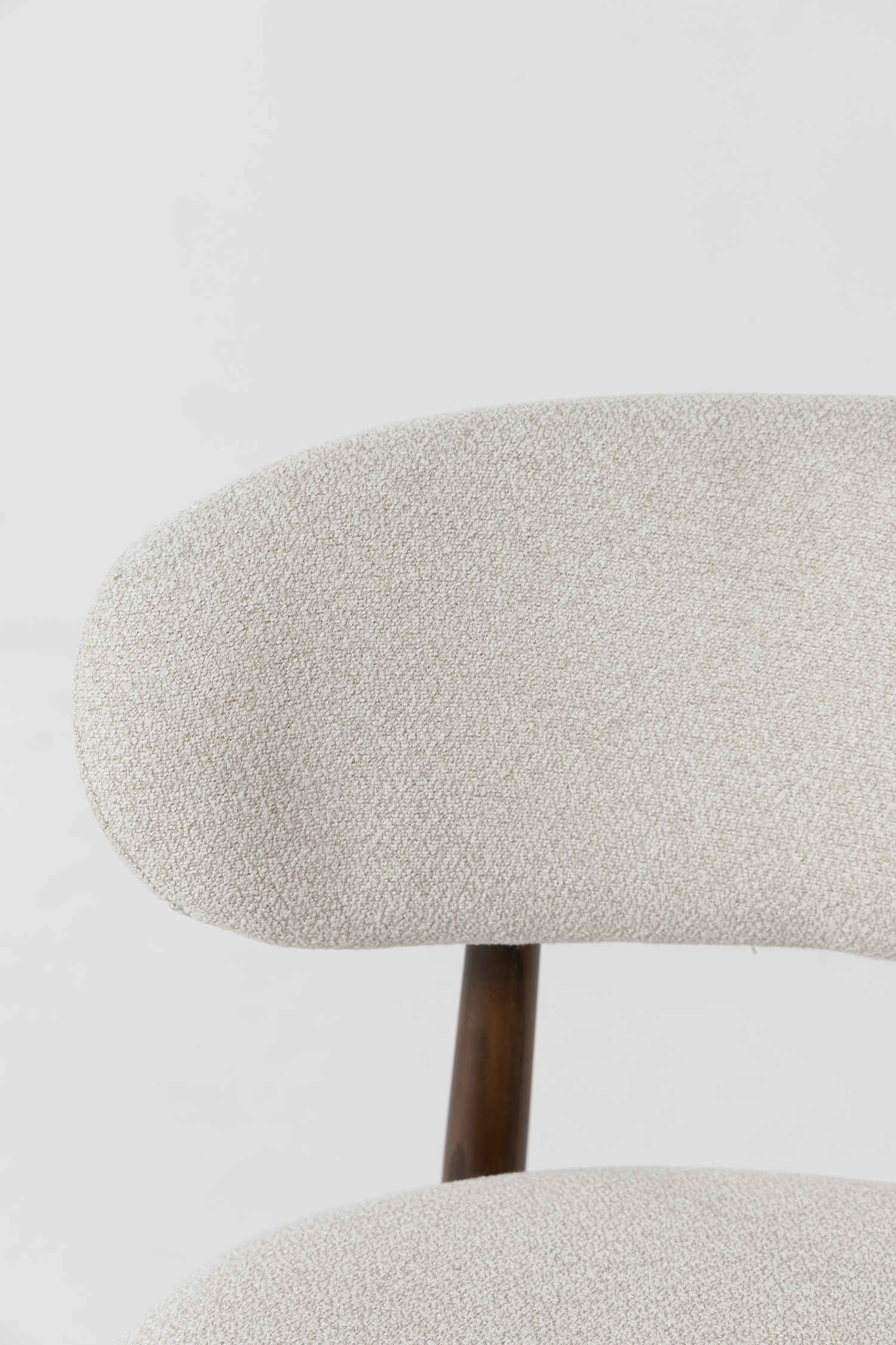 Soft upholstery paired with a beautifully crafted dark wood frame brings refined comfort and Scandinavian inspired character to your dining space. The gently curved backrest and cushioned seat create a welcoming silhouette that balances support with softness. Styled around a dining table or used as an accent seat, this piece introduces texture, warmth, and understated elegance that complements modern, contemporary, and natural interiors beautifully.