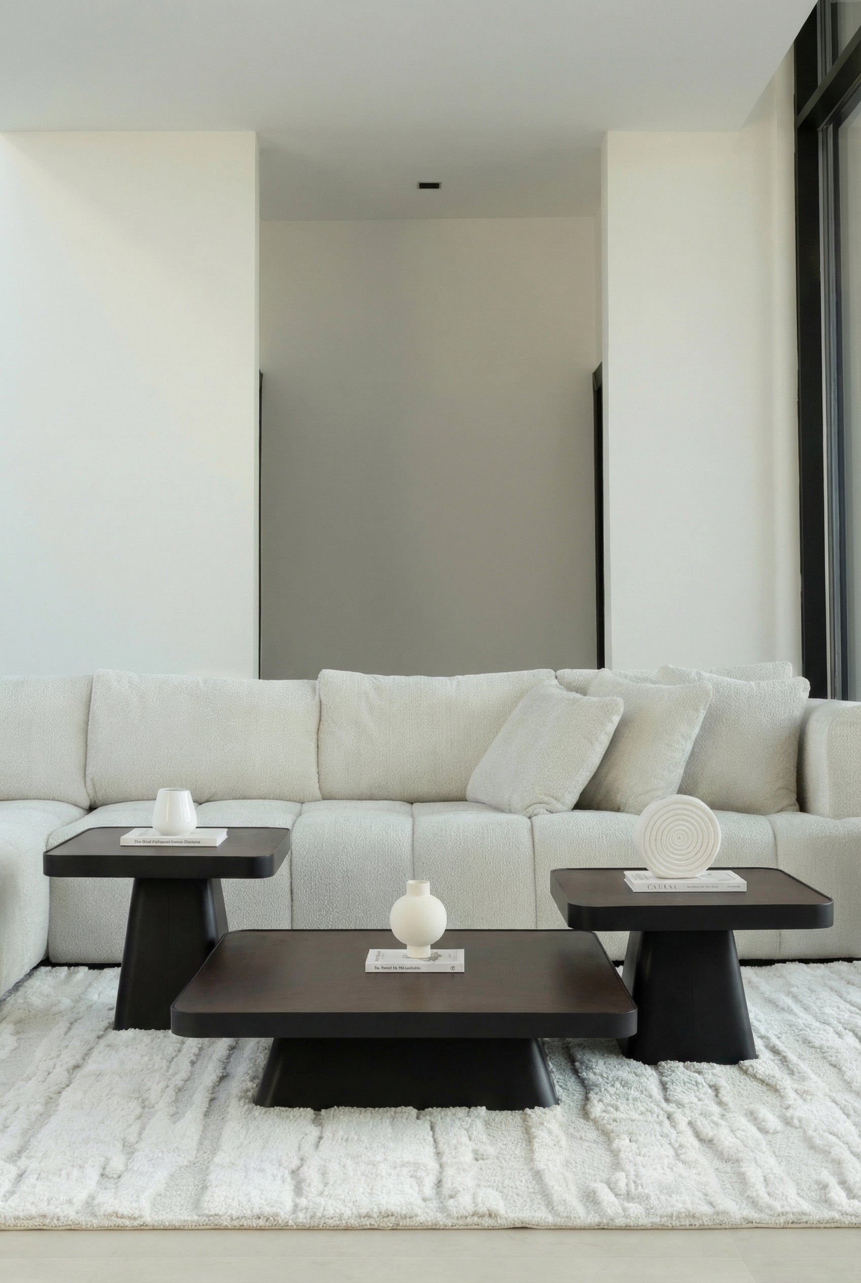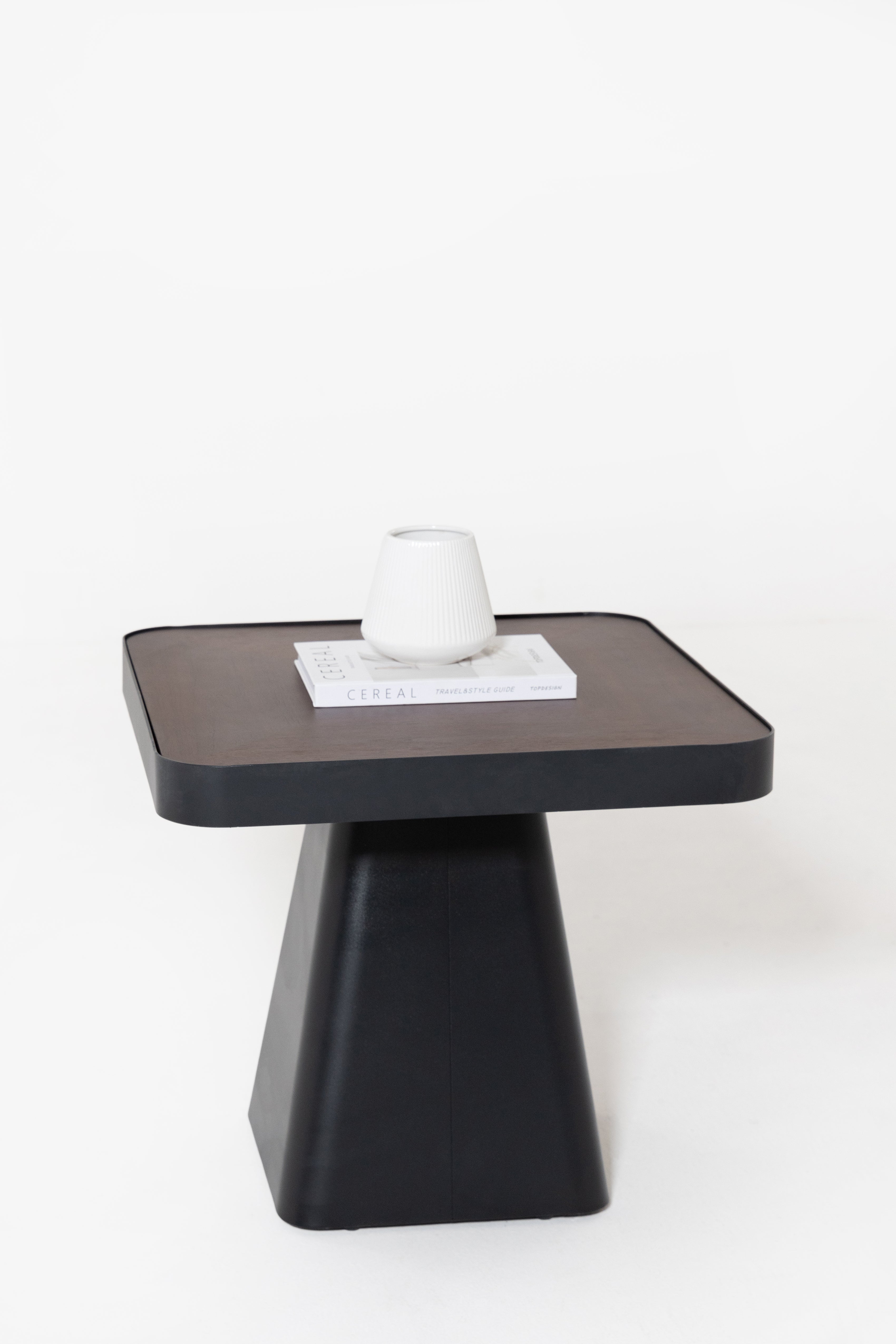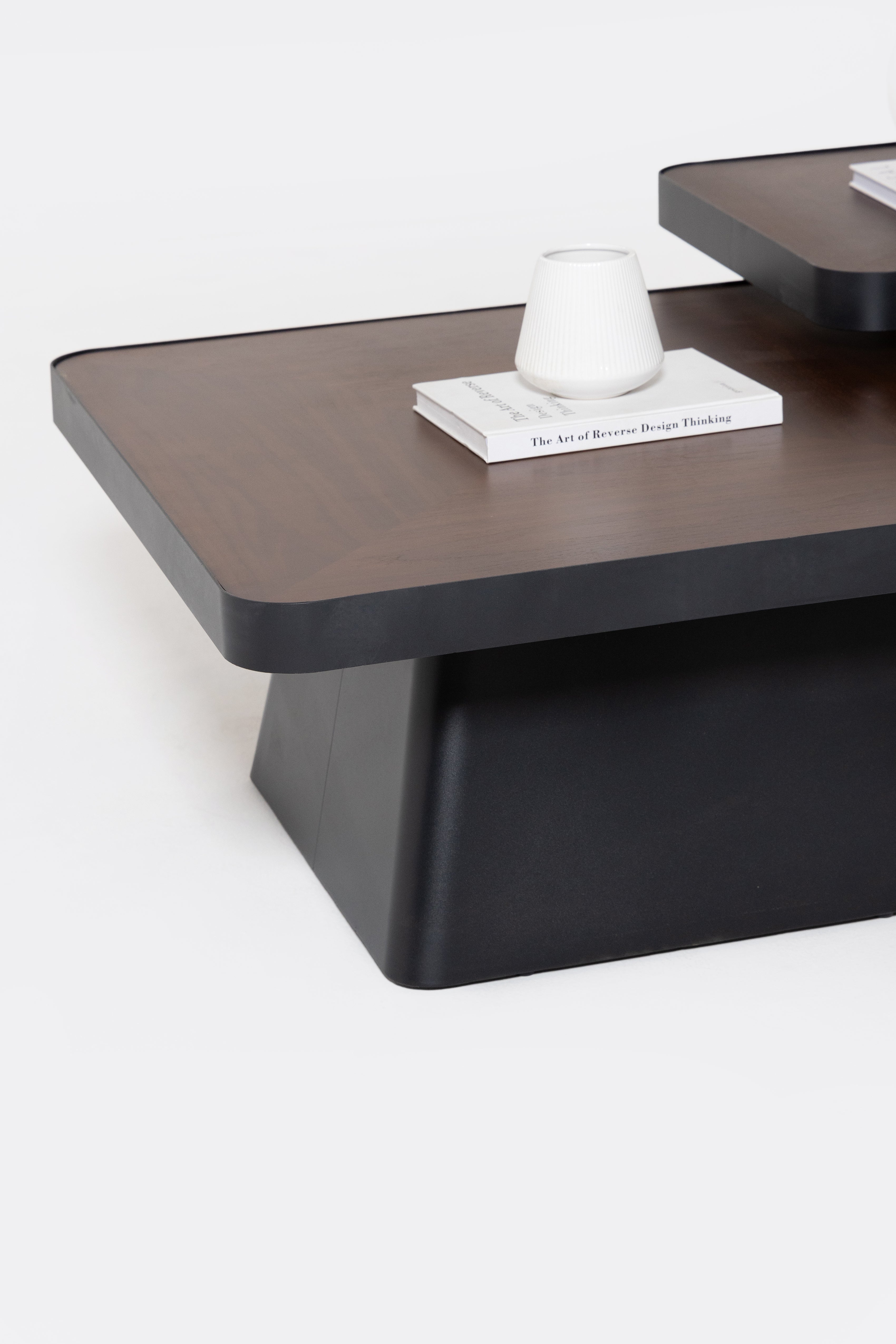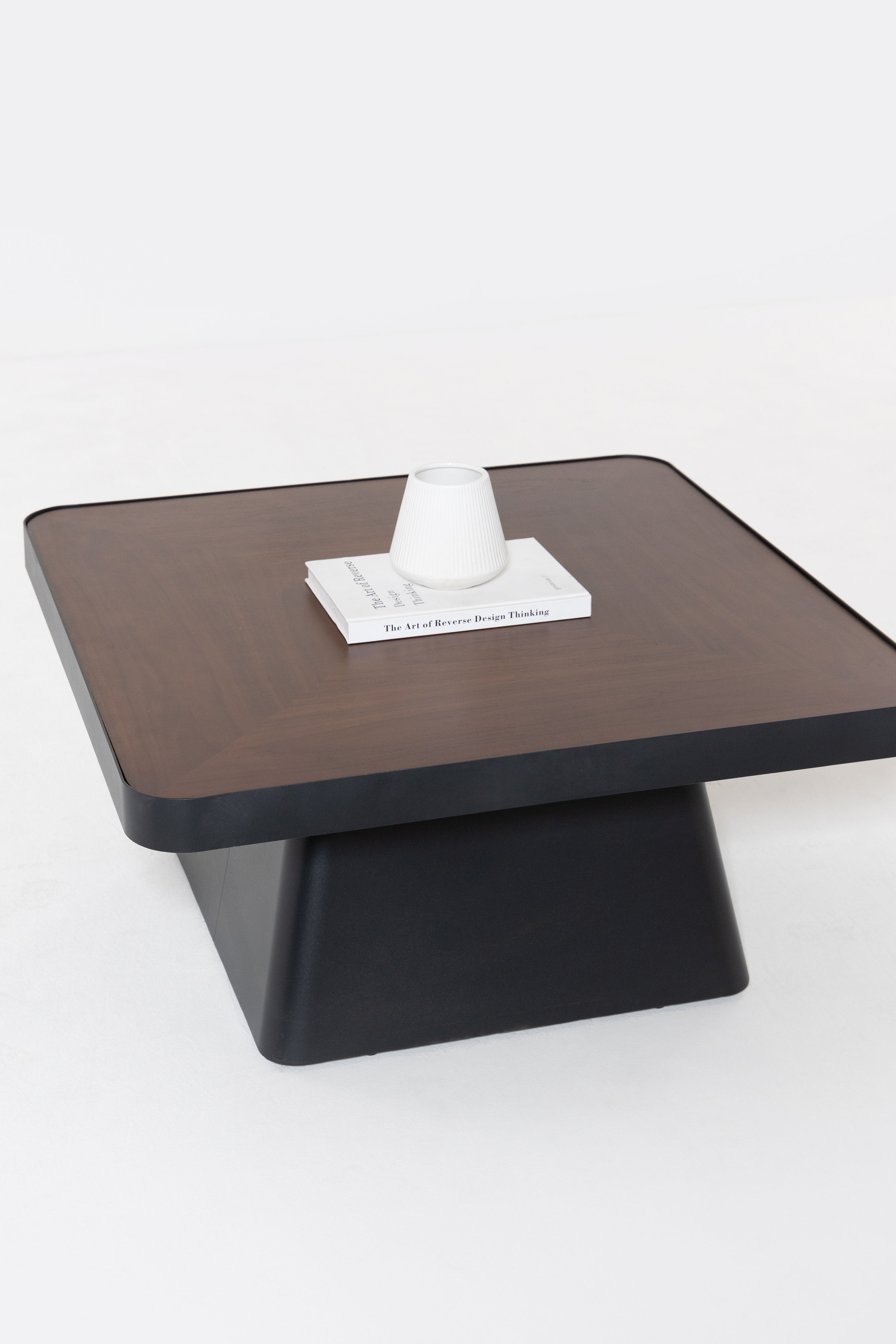 Defined by its bold square silhouette and deep walnut toned surface, this coffee table brings modern architectural presence to your living space. The sculpted pedestal base adds balance and strength, while the smooth rounded edges soften the design, allowing you to style your seating area with layered elegance, rich wood texture, and refined contemporary character.