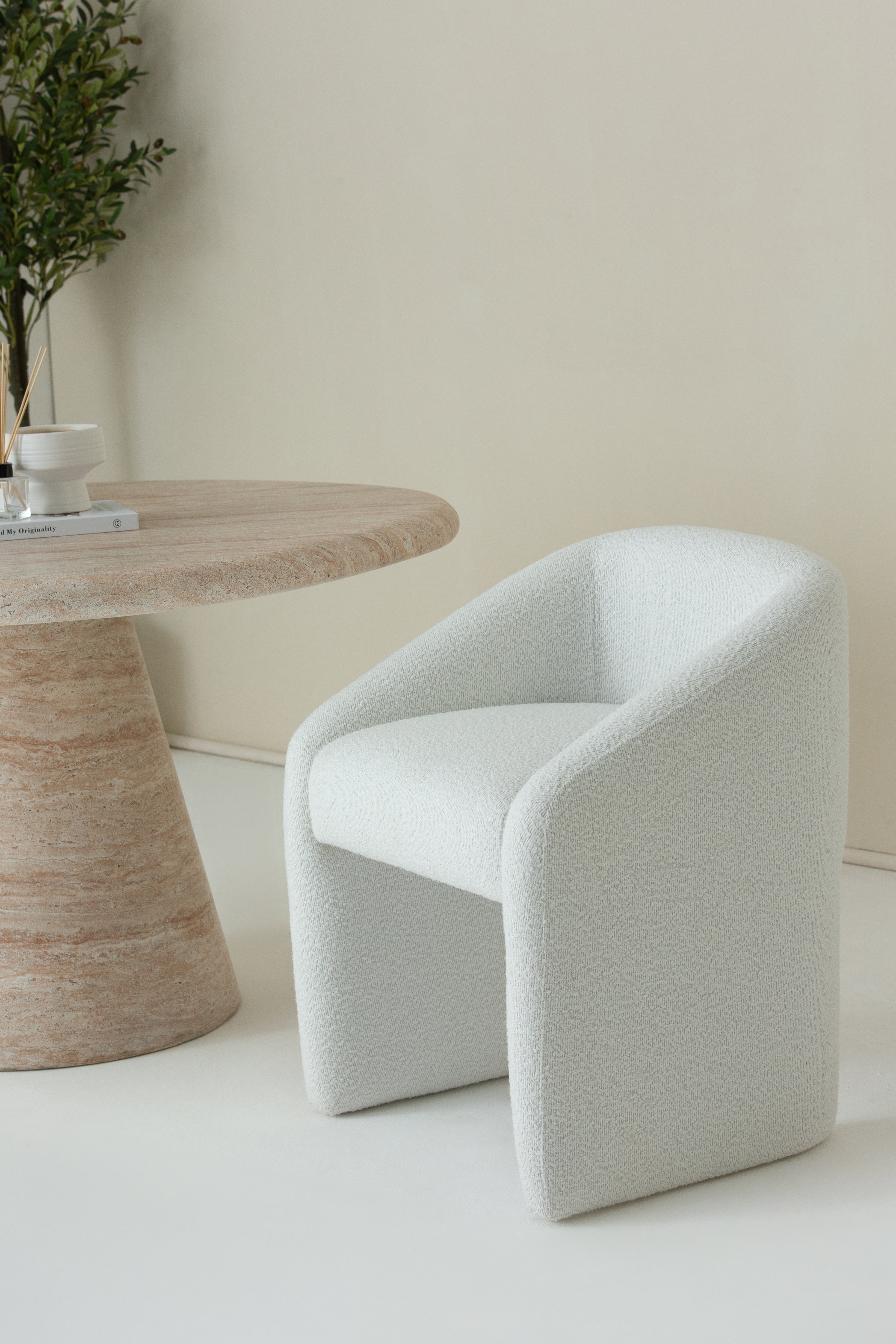 Mereana White Boucle Dining Chair