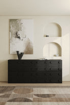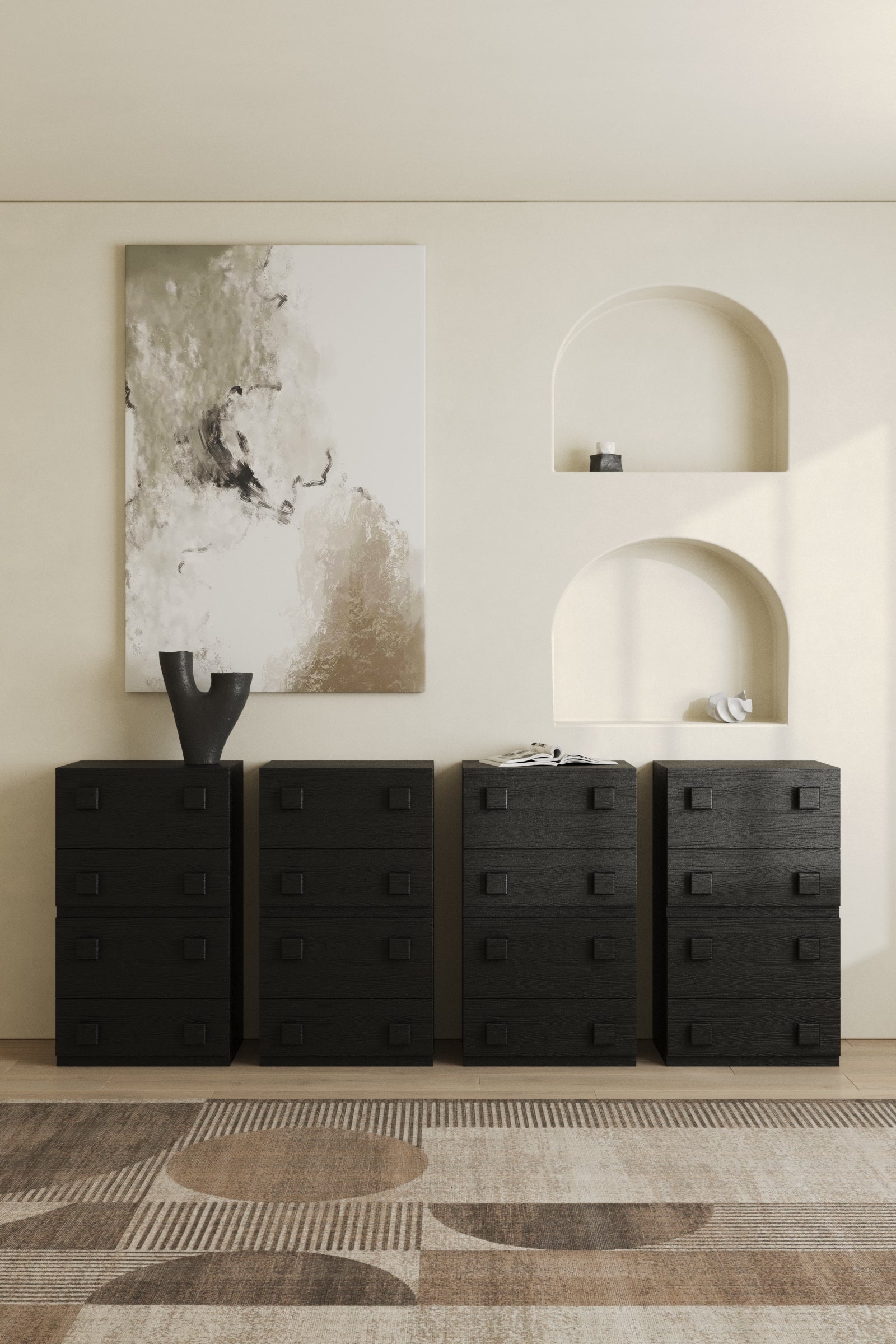 For large spaces that need elevated storage, this spacious black wood cabinet delivers a dramatic yet timeless centerpiece while giving you the freedom to style each unit exactly as you like. Use the pieces together for a bold cabinet look, or arrange them separately as a media unit, bedside tables, or individual storage accents to suit your space and routine. The tessera inspired drawer layout brings a structured, architectural feel, while the deep black finish enhances the silhouette with a sleek, premium touch. Designed to store more while keeping your living area effortlessly refined, each unit offers generous concealed space and a clean, styled top surface that makes décor look instantly curated, with the added flexibility of being completely unattached for easy reconfiguration anytime.