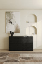 Designed for spacious layouts and statement styling, this wide black wood cabinet set anchors the living room with strong, modern character, crafted as separate units that are not attached to each other for effortless flexibility. Arrange the pieces together for a wide statement cabinet, or style them individually as a media unit, bedside tables, or versatile storage accents to suit your space. The tessera inspired drawer design adds subtle texture without visual clutter, while the rich black finish creates a luxury look that pairs effortlessly with contemporary décor. Perfect for organizing essentials and keeping the room serene, each unit provides generous concealed storage to maintain a polished, clutter free look. Finished with extended top surfaces ideal for artful displays and everyday convenience, it brings a calm, curated feel from every angle.