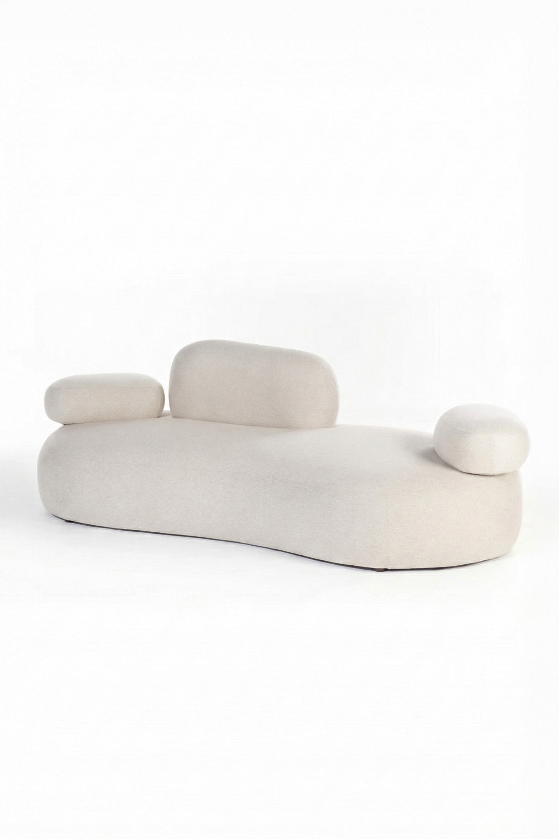 An artistic silhouette with soft organic curves forms a striking contemporary lounge piece designed to elevate modern interiors. The smooth off-white upholstery wraps the sculptural frame while the rounded side cushions and floating backrest create a playful yet refined balance of comfort and design. You introduce a bold statement piece that blends minimalist elegance with sculptural beauty.