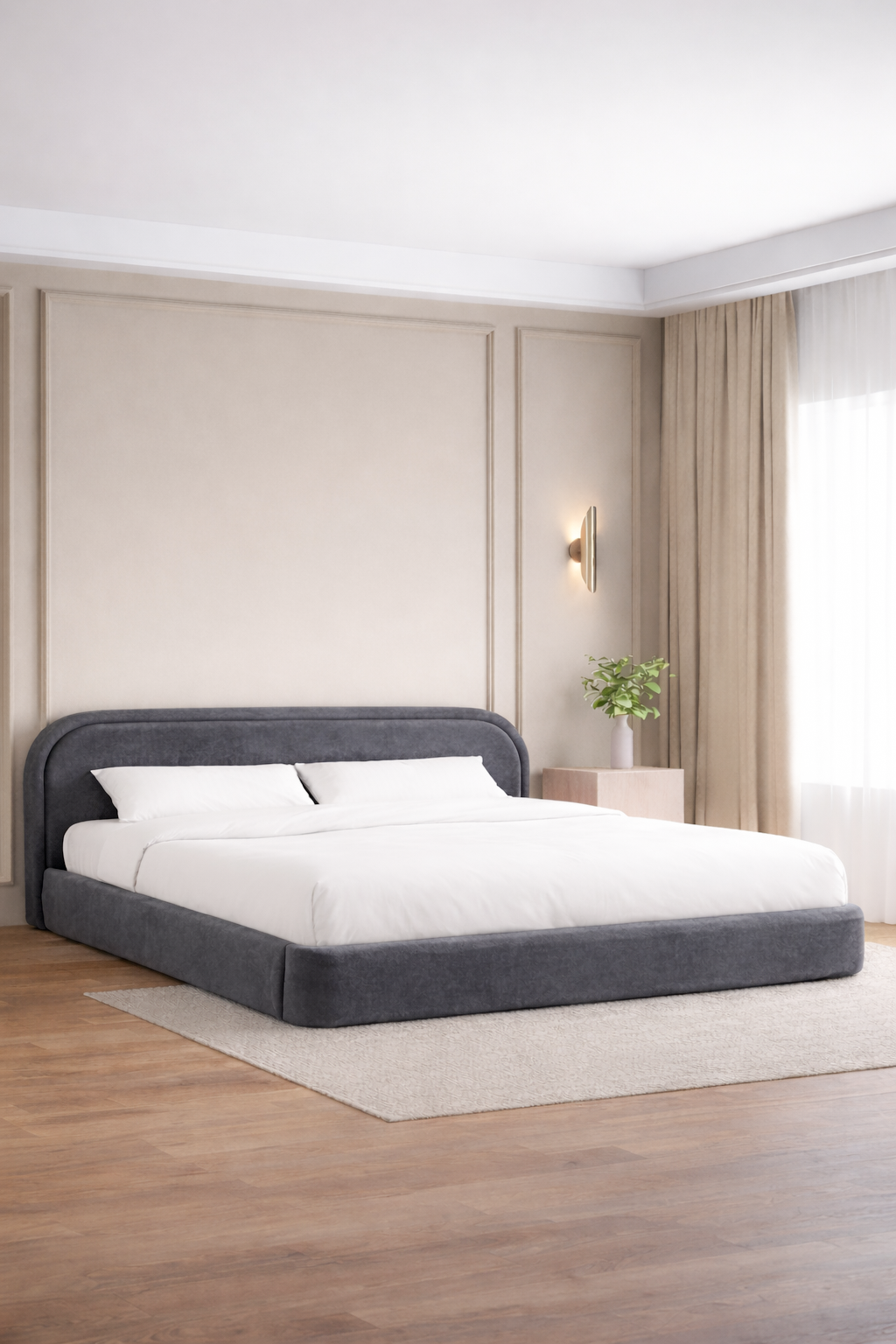 Create a calm, elevated bedroom retreat with a softly curved silhouette wrapped in terracotta upholstery that brings warm, sunbaked richness to your space. The sculpted headboard adds a gentle architectural statement while keeping the look grounded, inviting, and beautifully balanced. Designed to pair effortlessly with warm woods, natural stone textures, and layered neutral linens, it delivers a refined boutique hotel finish with everyday comfort. A perfect foundation for minimalist, modern, or organic luxury interiors.