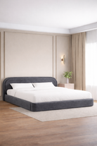 Caelia Dark Grey Upholstered Platform Bed With Curved Headboard