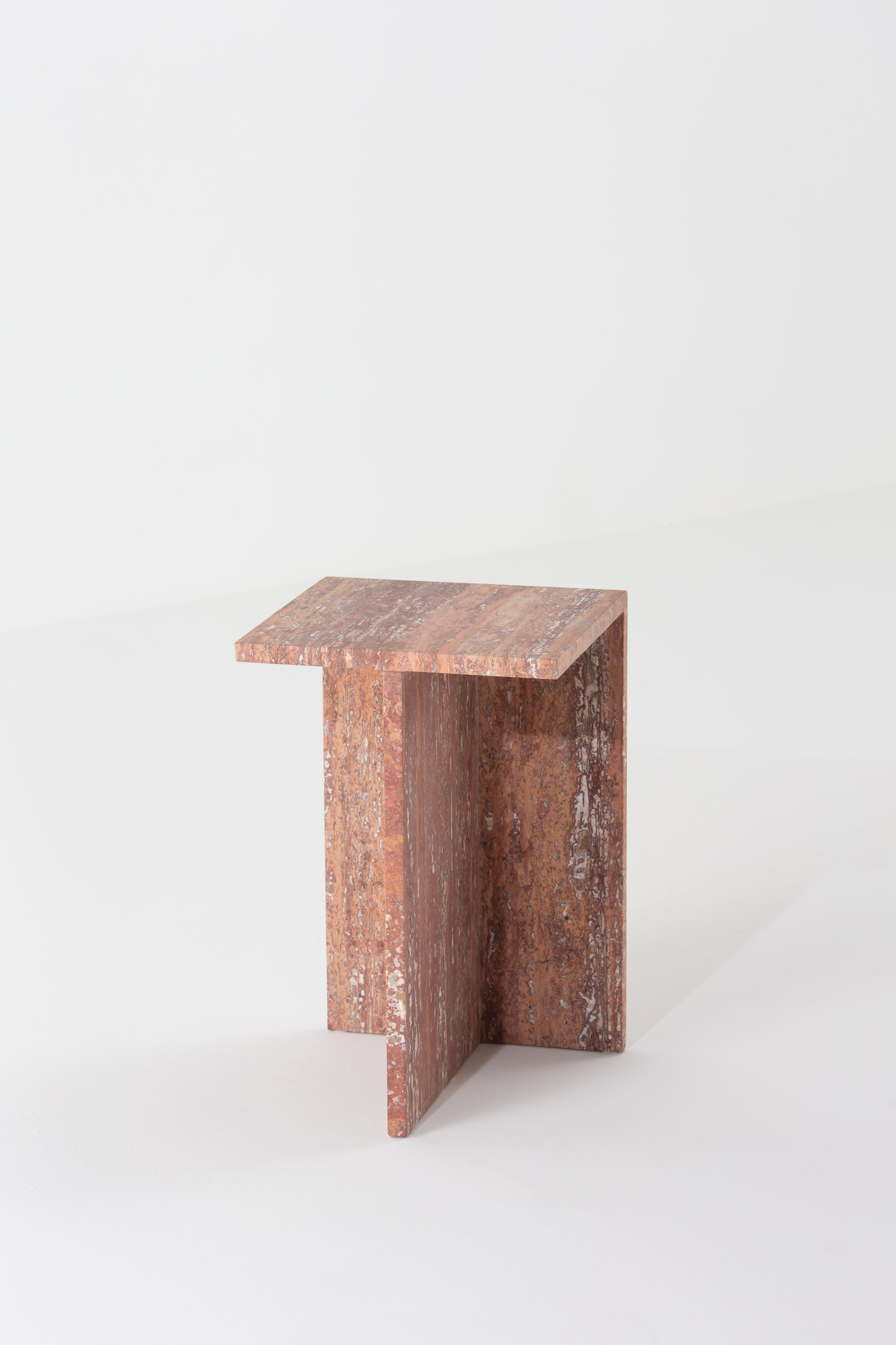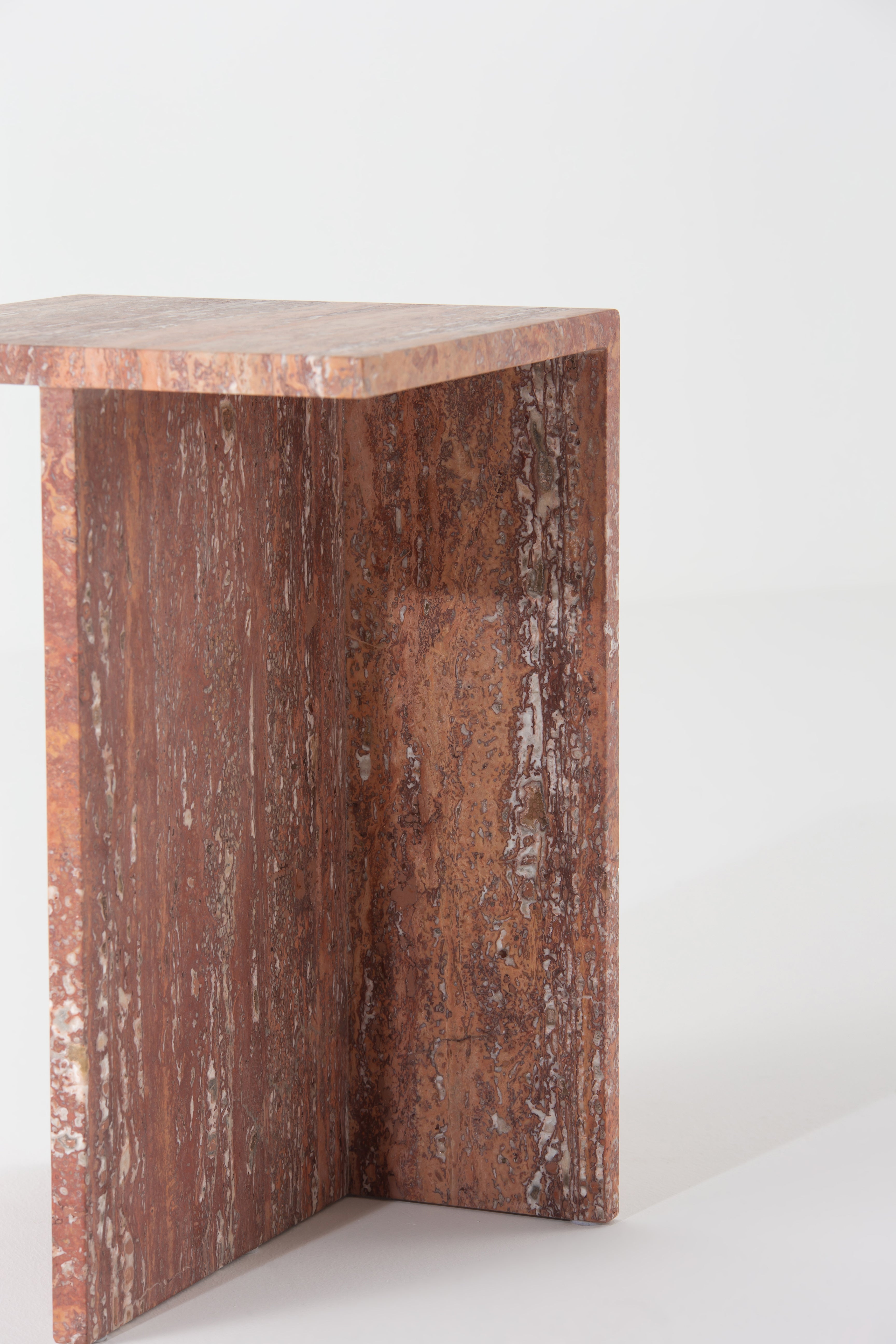 Crafted from honed red travertine, this sculptural side table transforms your space with natural warmth and timeless elegance. The rich, earthy hues and intricate veining create a striking statement, while the geometric silhouette adds a modern touch. Whether placed beside your sofa or as a standalone accent, it blends functionality with art, elevating any setting effortlessly.