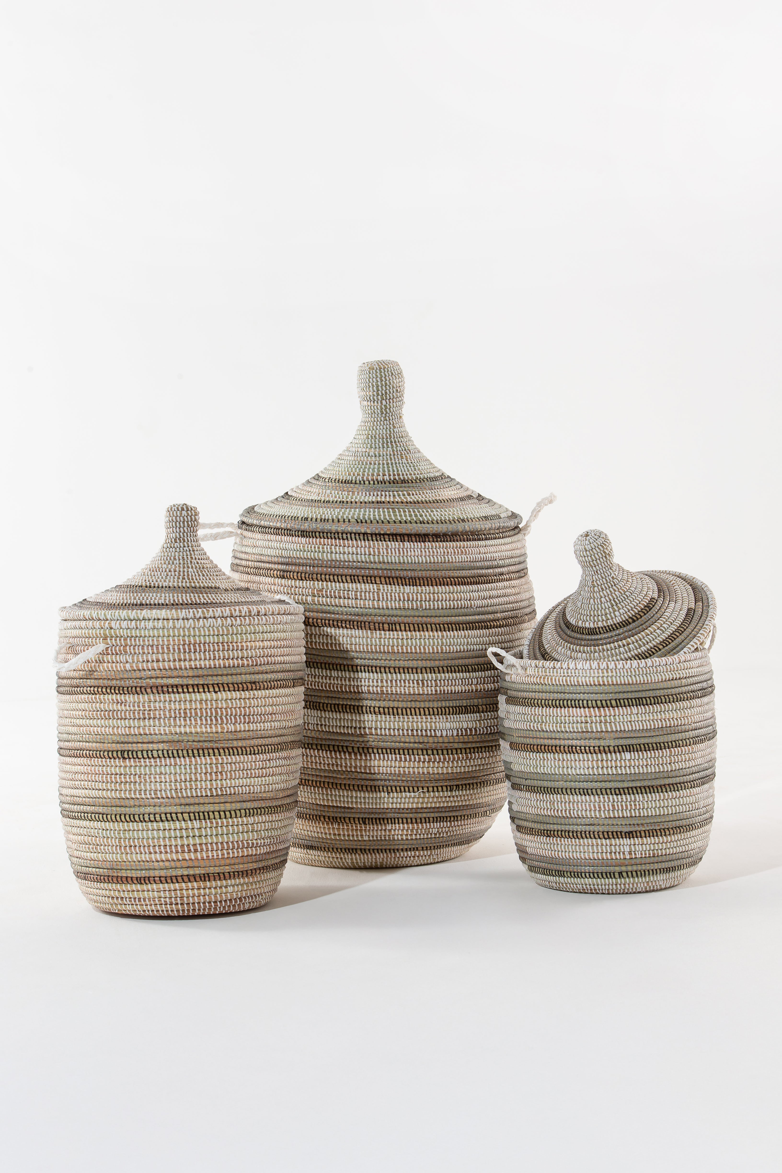 These baskets are handwoven by a group of women living in villages in Senegal. Made out of dried local grass and eco friendly PP plastic.
