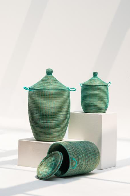These baskets are handwoven by a group of women living in villages in Senegal. Made out of dried local grass and eco friendly PP plastic.