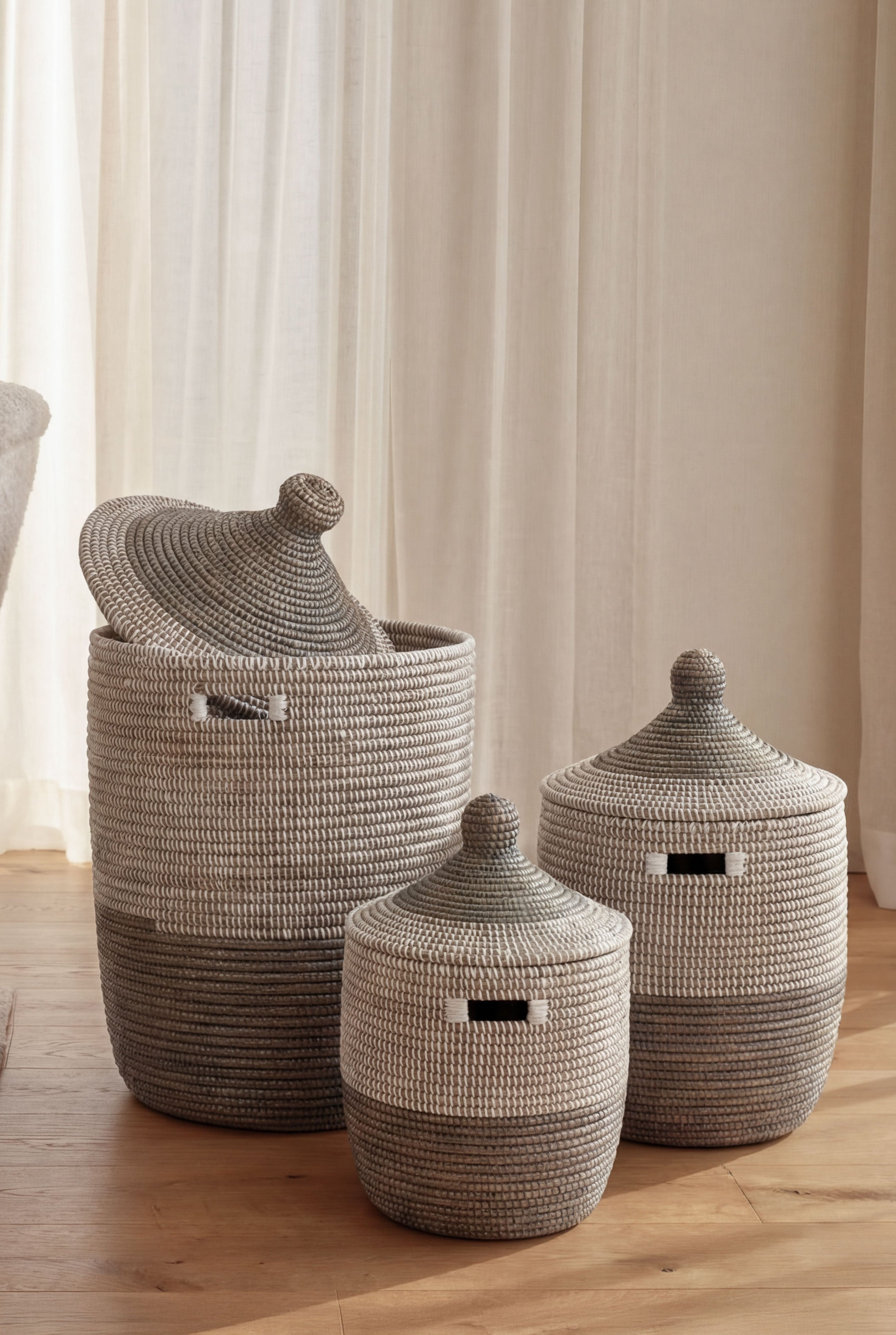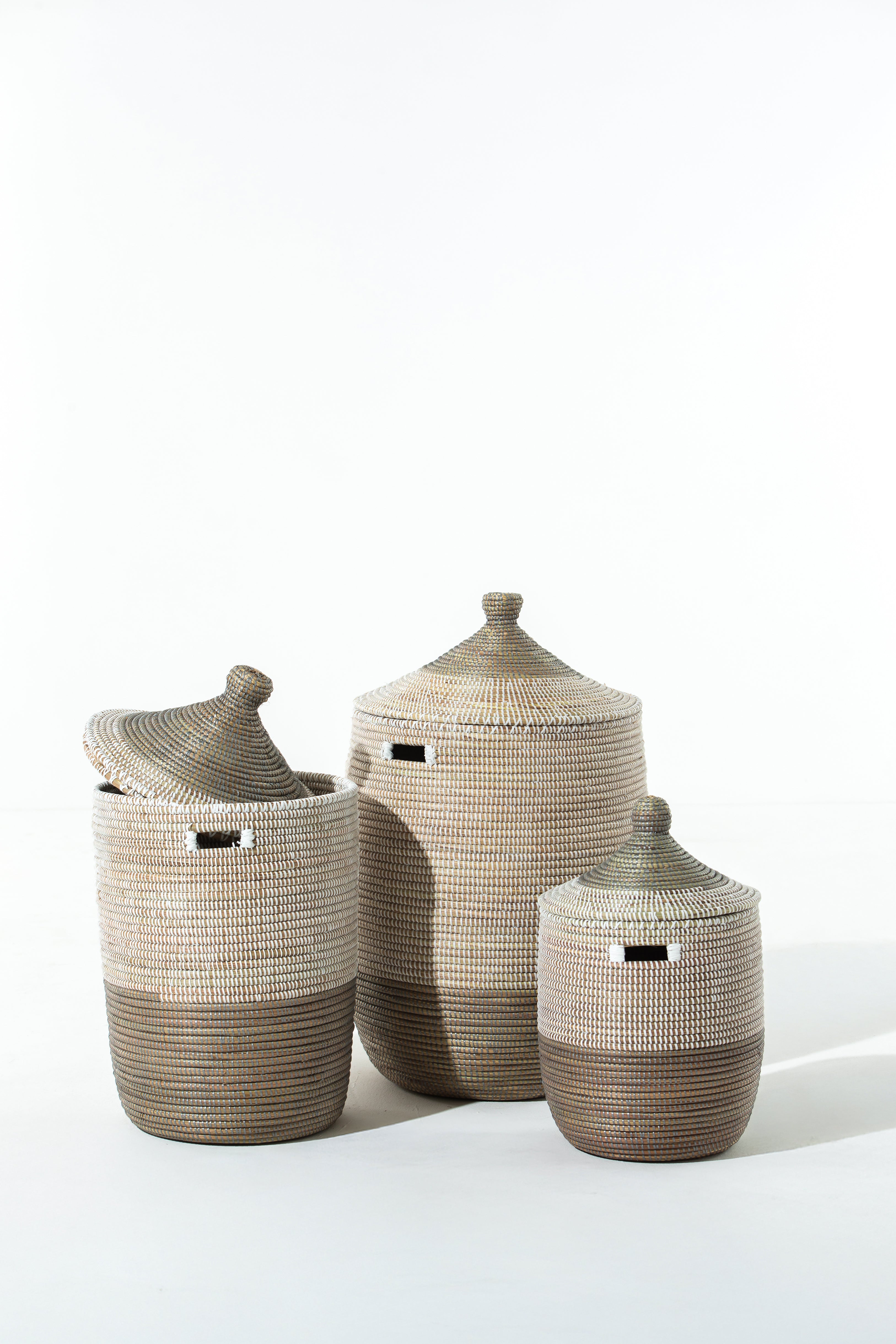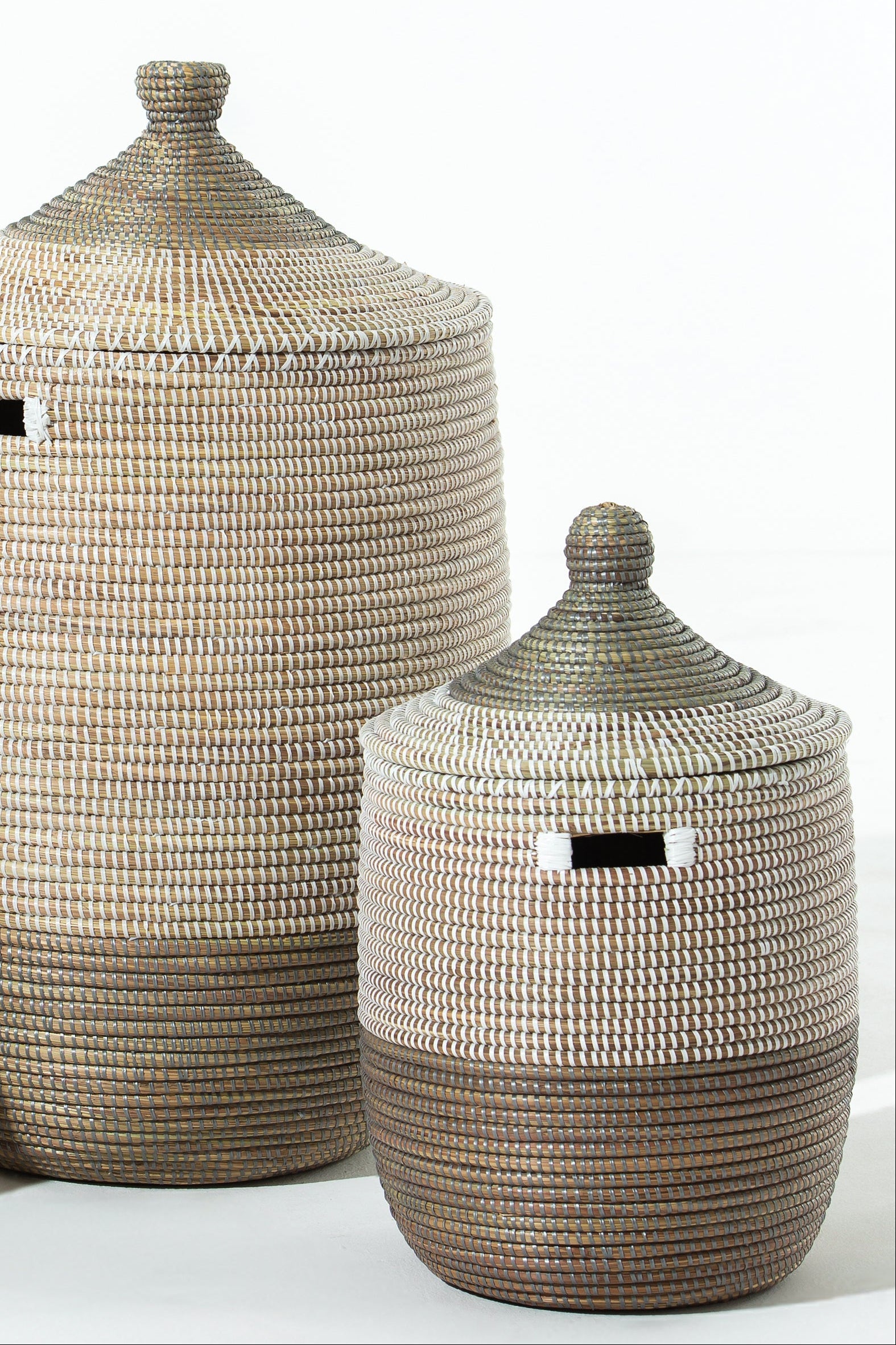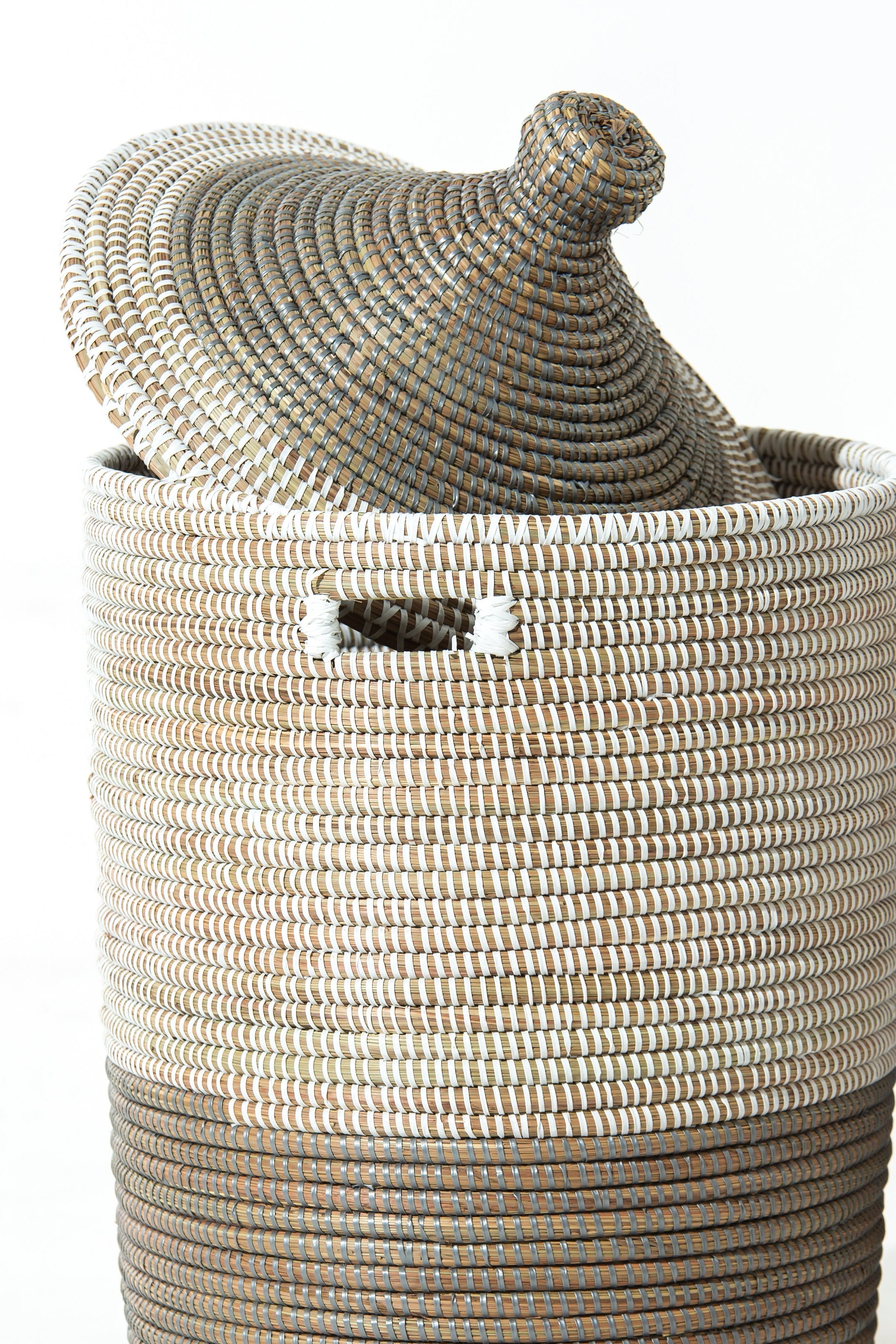 Enhance your home with artisanal charm and sustainable style. This beautifully handwoven storage basket showcases a two-tone palette and organic silhouette, blending contemporary minimalism with rustic craftsmanship. Perfect for storing throws, laundry, or toys, its tall, structured form adds visual texture while keeping your space tidy. Ideal for entryways, living rooms, or bedrooms seeking an earthy yet elevated aesthetic.