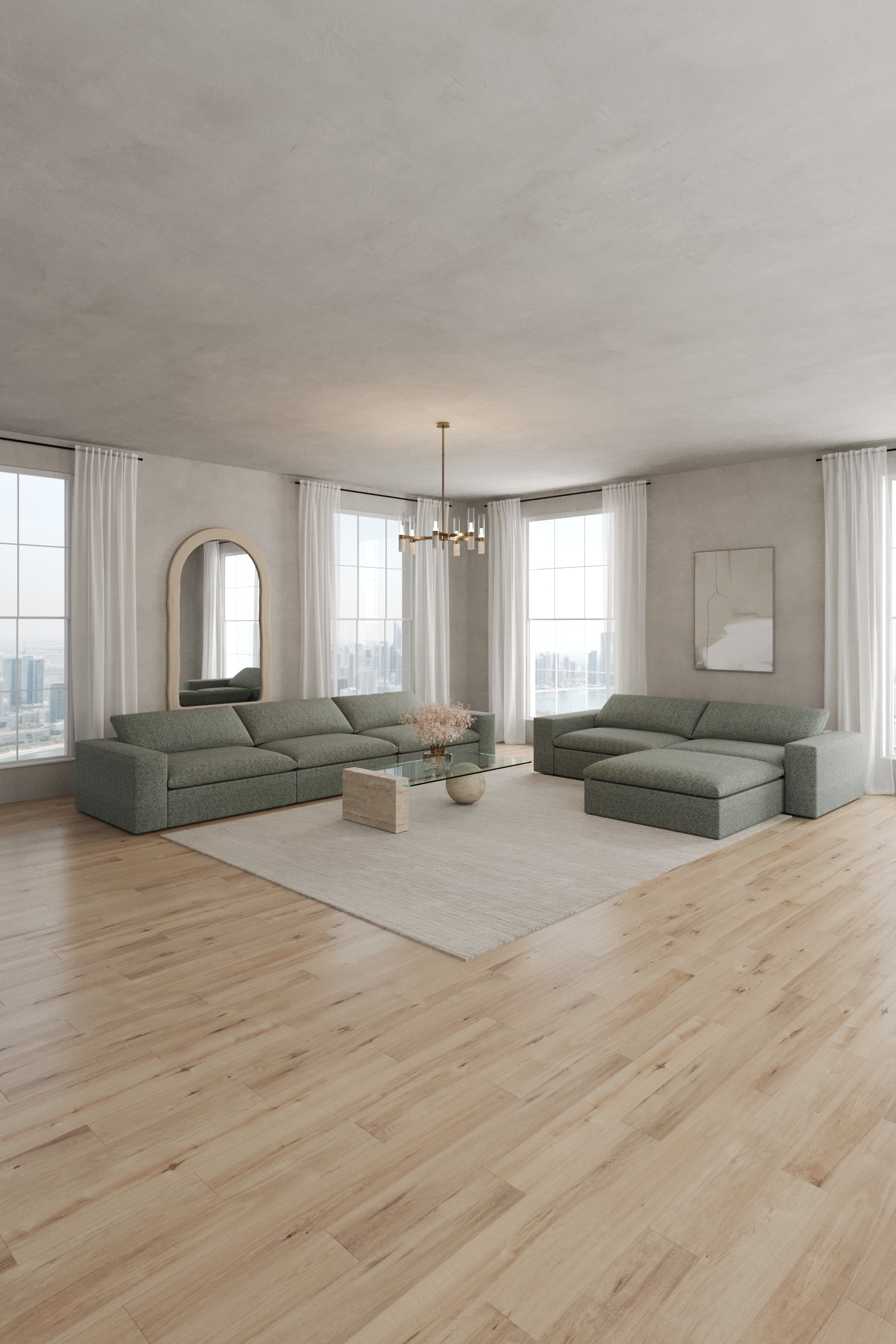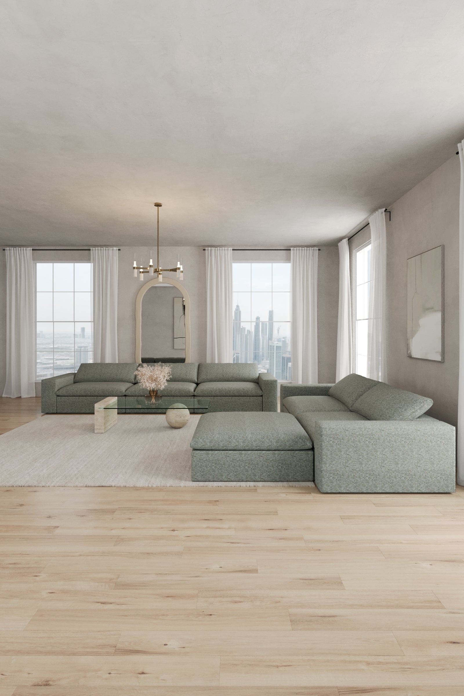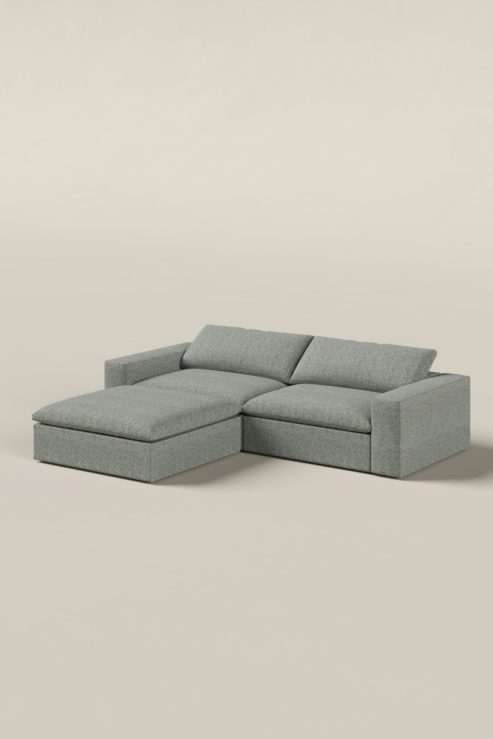 Ideal for compact homes, this two seater with ottoman in Eucalyptus Dust offers comfort without compromising style. The calming shade pairs beautifully with any décor, while the ottoman adds multifunctional use. A cozy yet chic choice for modern living.