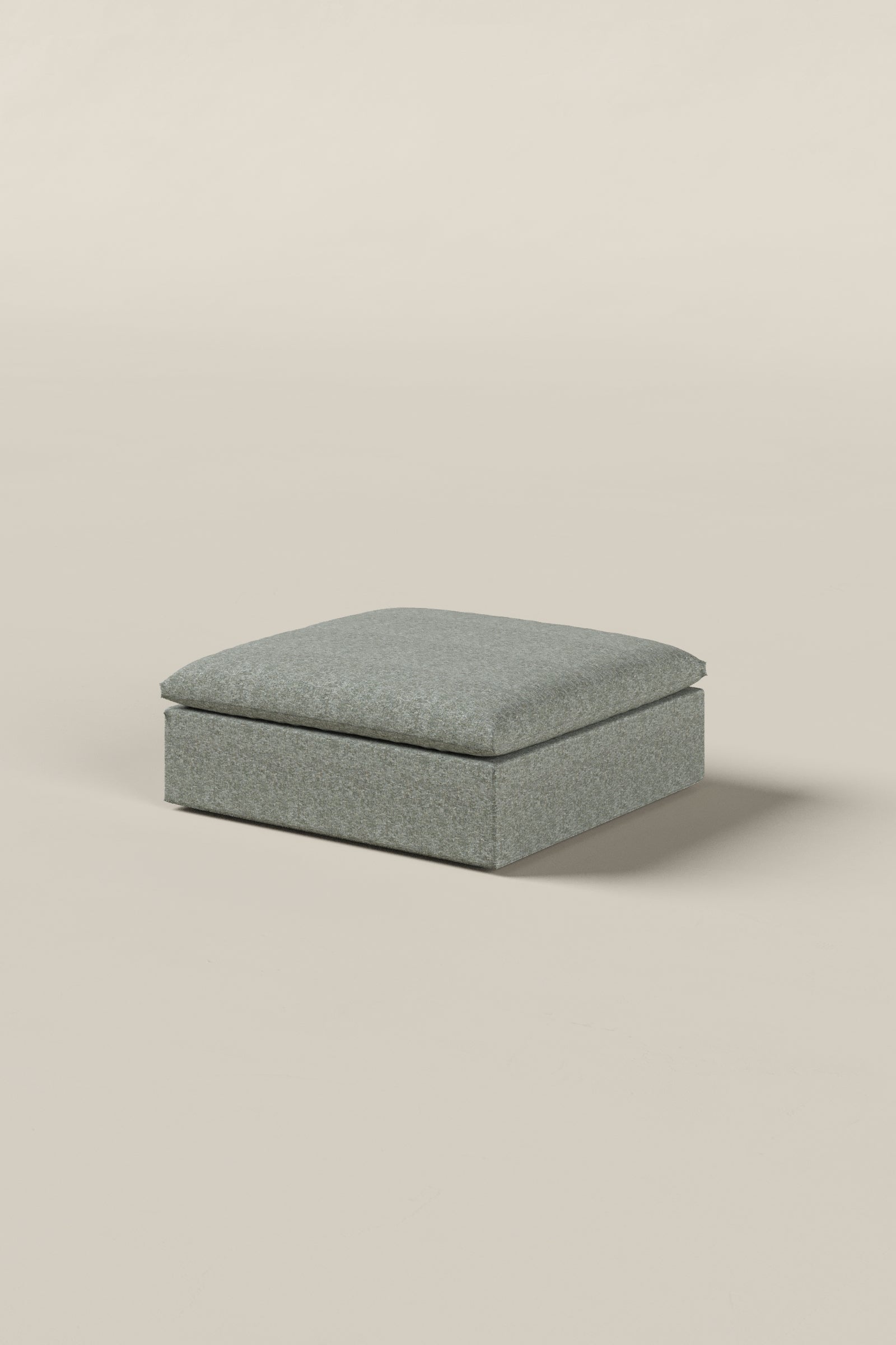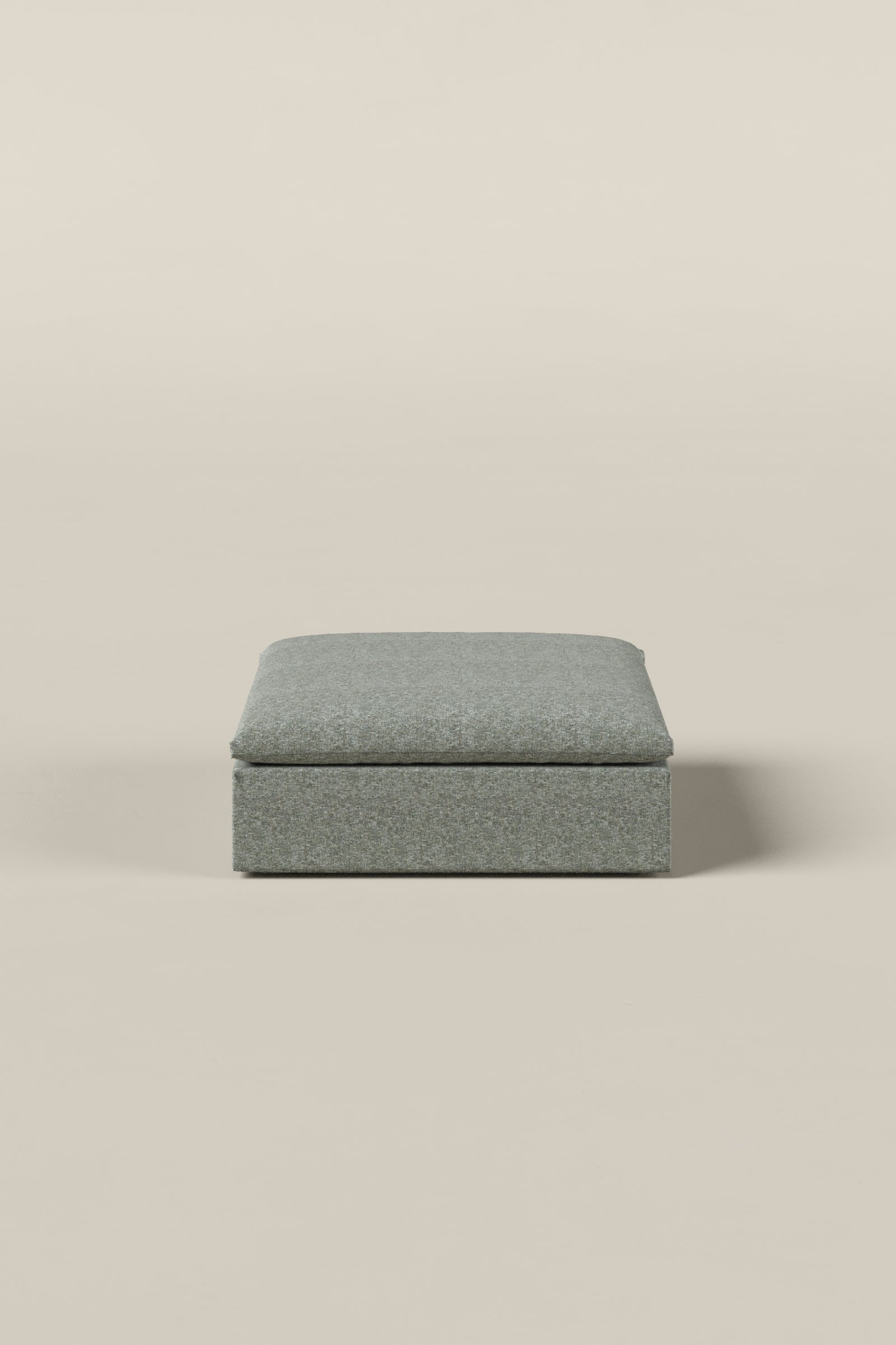 A multifunctional ottoman upholstered in Eucalyptus Dust, perfect as a footrest, extra seating, or accent piece. The muted green tone adds sophistication, while its soft cushioned top ensures comfort. Its versatile design makes it ideal for completing modular layouts or standing alone as a chic centerpiece.