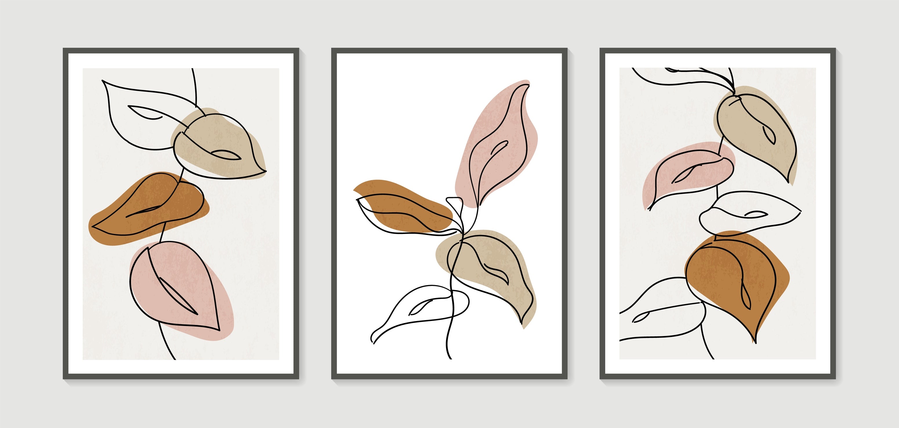 Softly drawn leaf silhouettes and muted earthy tones create a refined visual rhythm that feels calm, organic, and effortlessly elegant, allowing the artwork to ground your space with a sense of natural balance while complementing modern interiors, neutral palettes, and thoughtfully curated rooms.