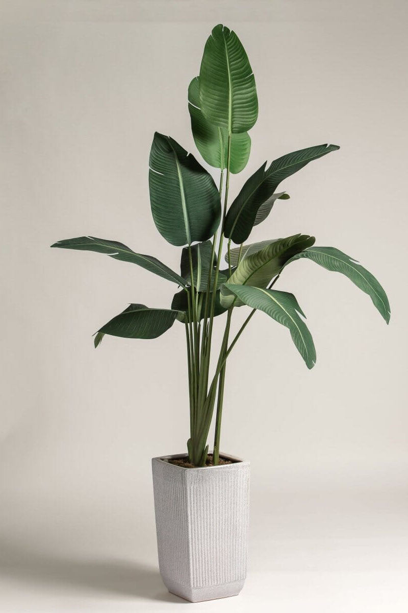 Bring tropical flair to your space with the Strelitzia Nicolai Artificial Plant, also known as the Giant White Bird of Paradise. Featuring tall, wide leaves in deep green, this lifelike faux plant adds a bold, vibrant touch to any decor. Perfect for busy homes and offices, it requires no maintenance and effortlessly elevates your interiors with its tropical appeal. Ideal as a statement piece in living rooms, lobbies, or entryways, this artificial plant provides lasting greenery without the hassle of upkeep.