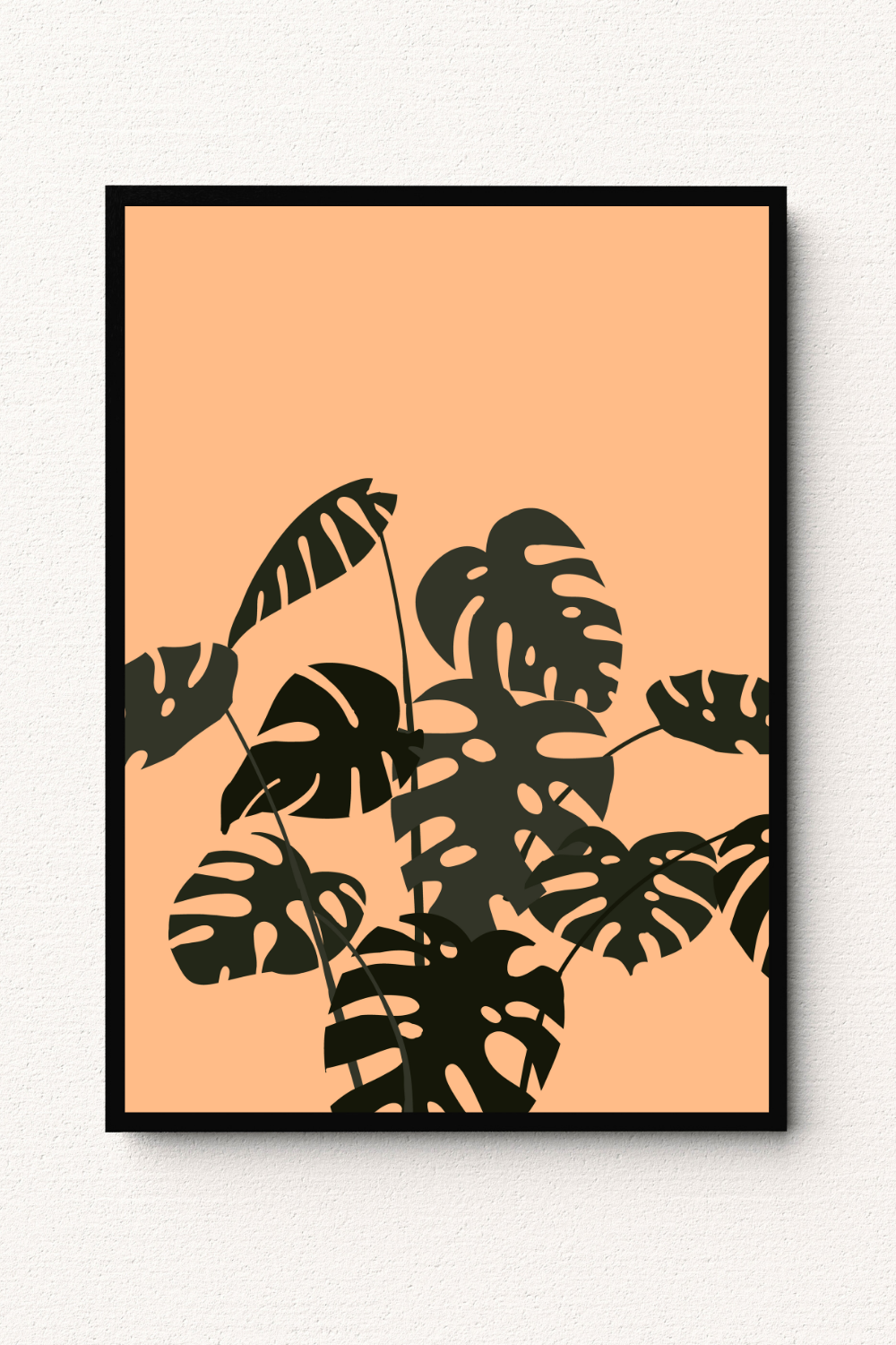 A warm botanical composition that brings calm energy into your space, featuring sculptural monstera leaves silhouetted against a soft sunlit backdrop to create a refined tropical mood that feels balanced, modern, and effortlessly serene for contemporary interiors.