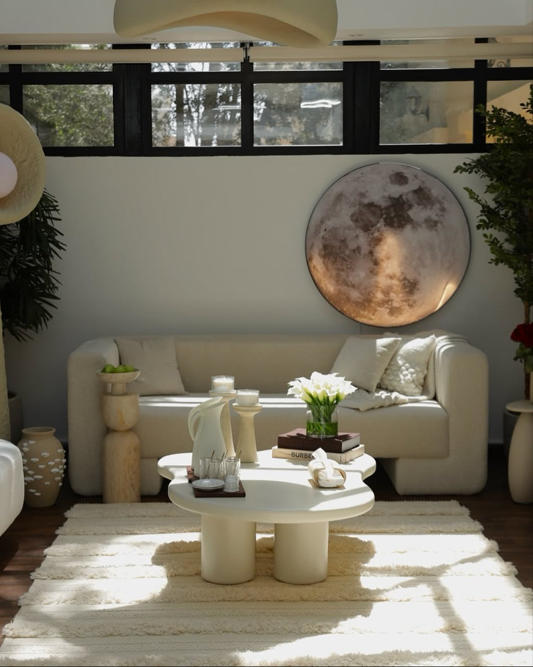 Layered Look: Create visual interest by layering the rug over a larger natural fiber rug or carpet. This adds depth and dimension to your space while allowing the creamy hues of the rug to shine through.