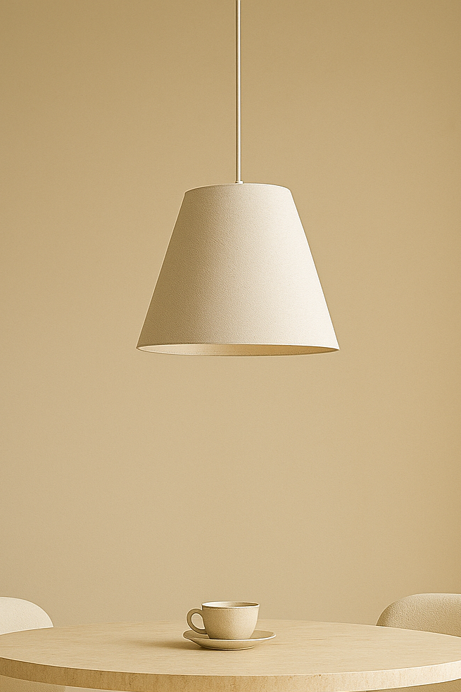 Designed with a gently tapered silhouette and wrapped in a warm ivory fabric texture, this ceiling lamp casts a diffused, ambient glow that soothes and elevates your room. Whether you're setting the tone above a modern dining table or creating calm in a Japandi-inspired nook, Nuvé’s natural palette, sculptural form, and soft finish make you the curator of serene, sophisticated interiors. Ideal for lovers of contemporary, Scandinavian, or neutral-toned spaces.