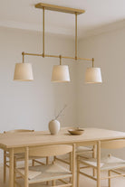 Bask in the warmth of golden tones as soft fabric shades illuminate your room with inviting light. The smooth metal frame glows with a refined gold finish, its slim symmetrical shape blending modern elegance with timeless charm. Every detail enhances your comfort and style, turning your dining or living area into a radiant centerpiece.