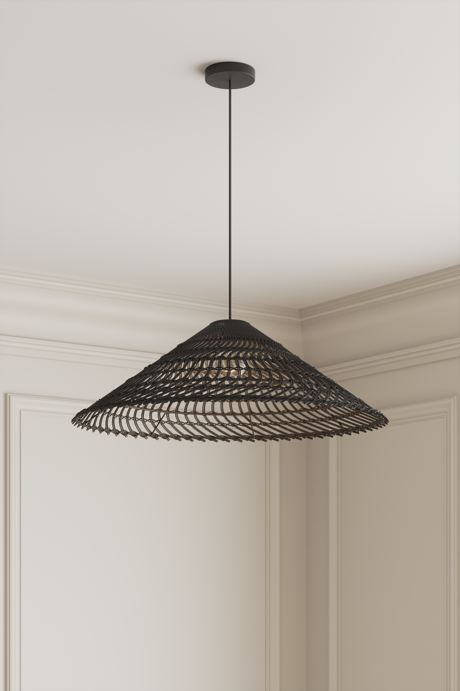 Imagine transforming your room with a ceiling lamp that feels like both art and light. Featuring a wide woven shade in sleek black, its sculptural silhouette casts soft, ambient lighting that enhances warmth and sophistication. The airy pattern creates a striking play of light and shadow, while the clean lines and modern shape make it a versatile piece for dining areas, living rooms, or bedrooms. Designed for contemporary interiors, it becomes the focal point of your décor, giving you a space that feels refined, inviting, and effortlessly stylish.