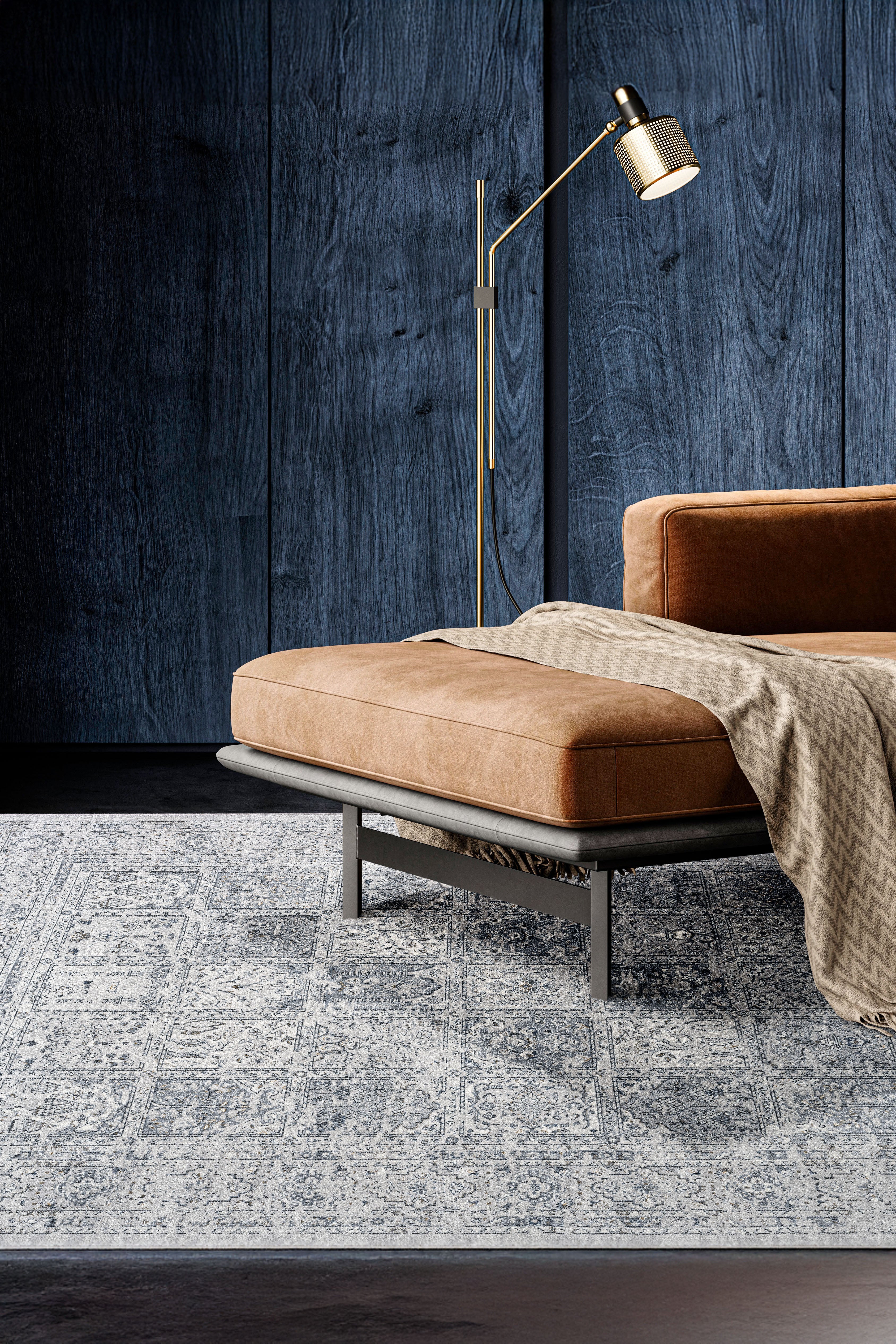 Ground your space with the timeless charm of the Jazlynn Persian Rug—a perfect blend of traditional elegance and modern sensibility. Featuring a patchwork-inspired design filled with intricate classic motifs, this rectangular rug boasts a gently distressed finish for a vintage touch. Its soothing palette of muted blues and greys over a creamy beige base brings depth and softness to any room. Ideal for living rooms, dining areas, or studies, the Jazlynn rug adds warmth, character, and effortless sophistication.