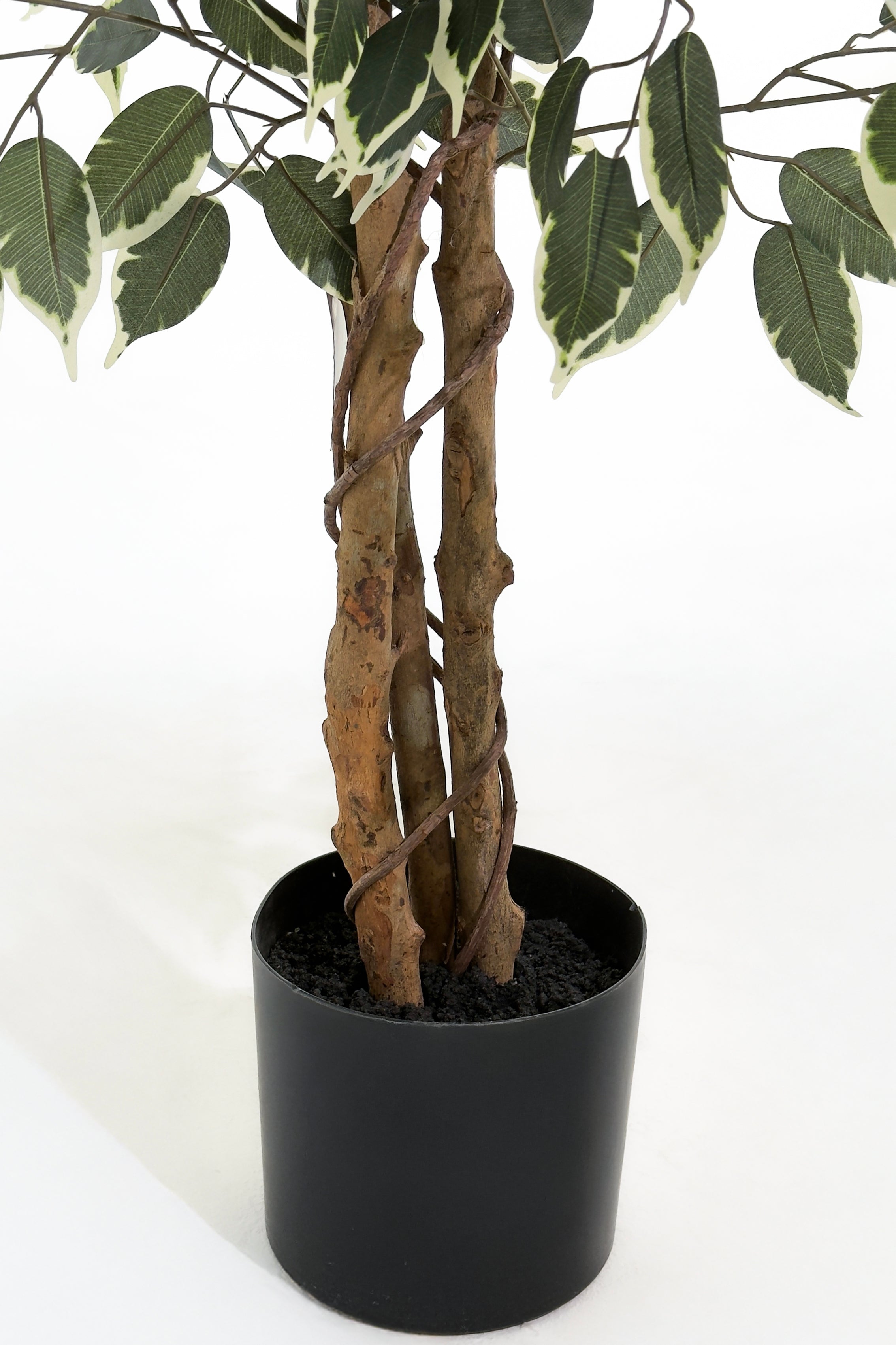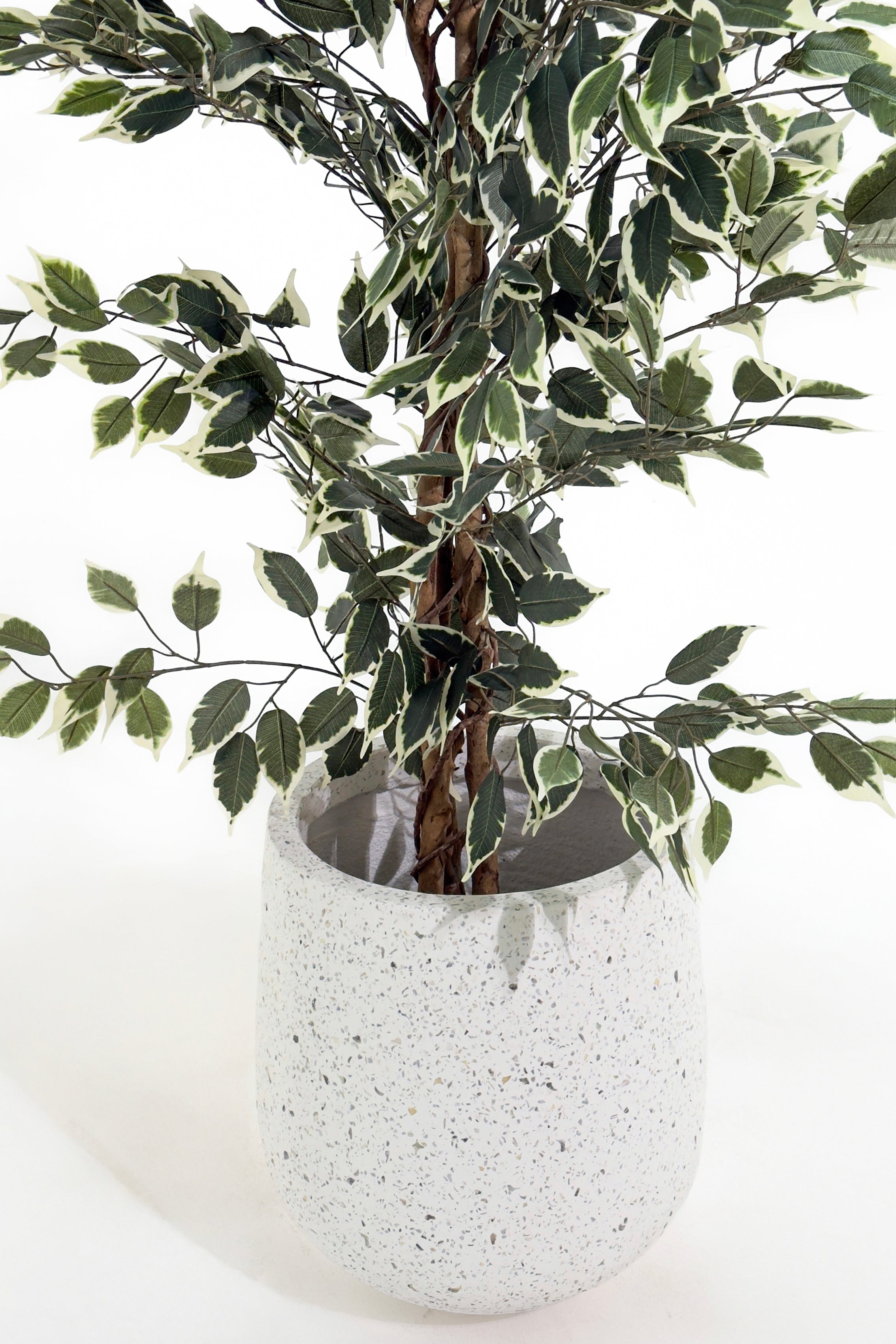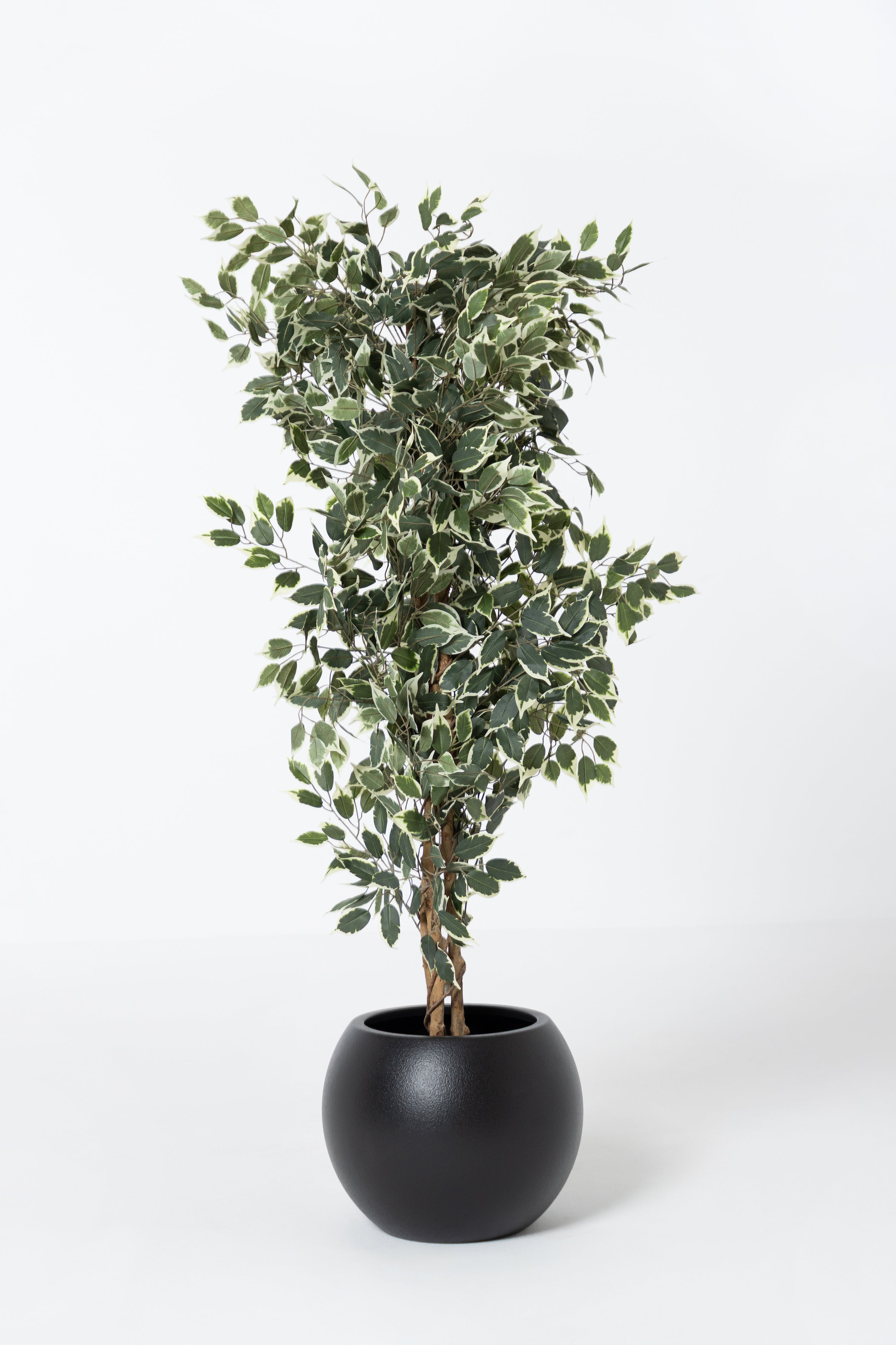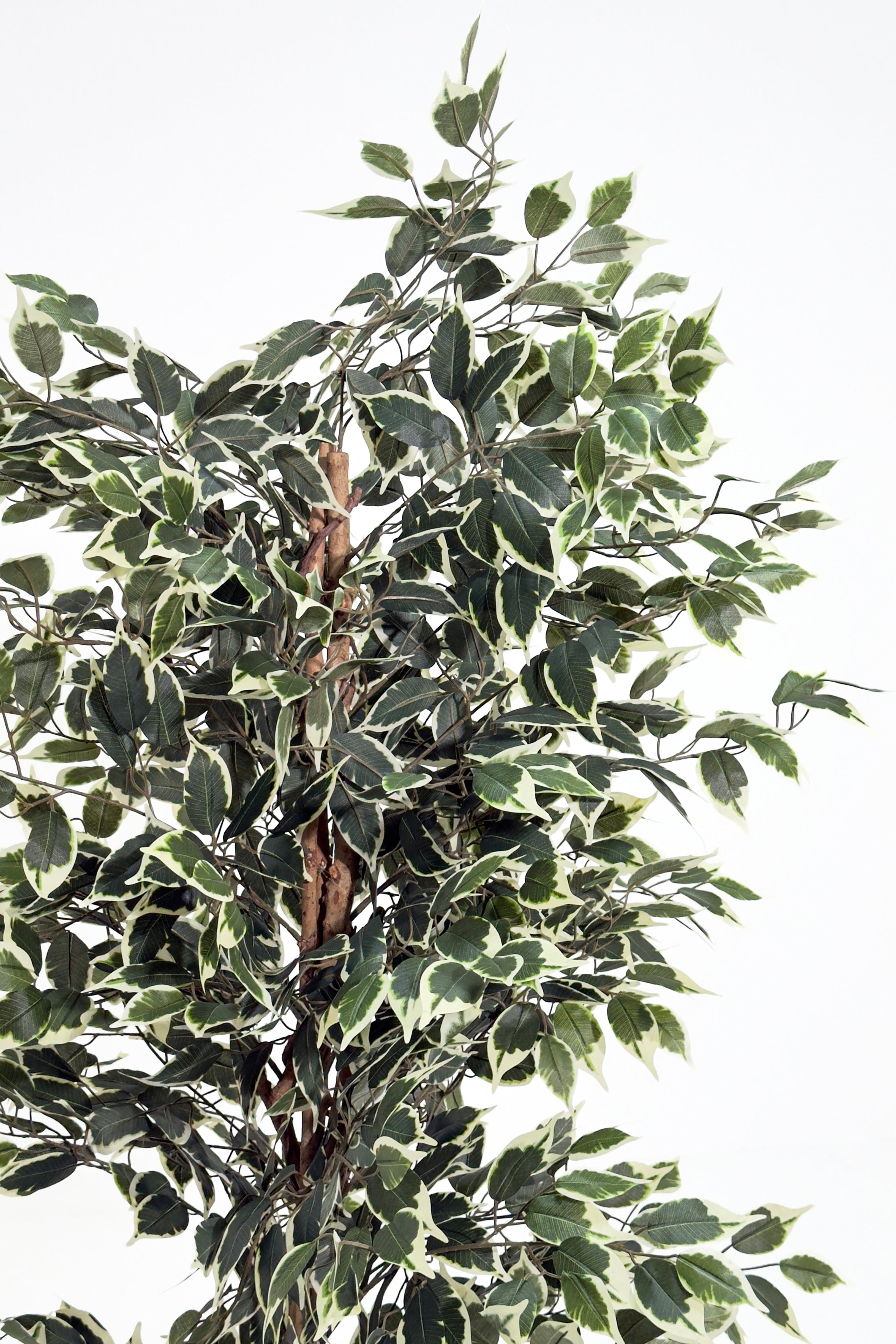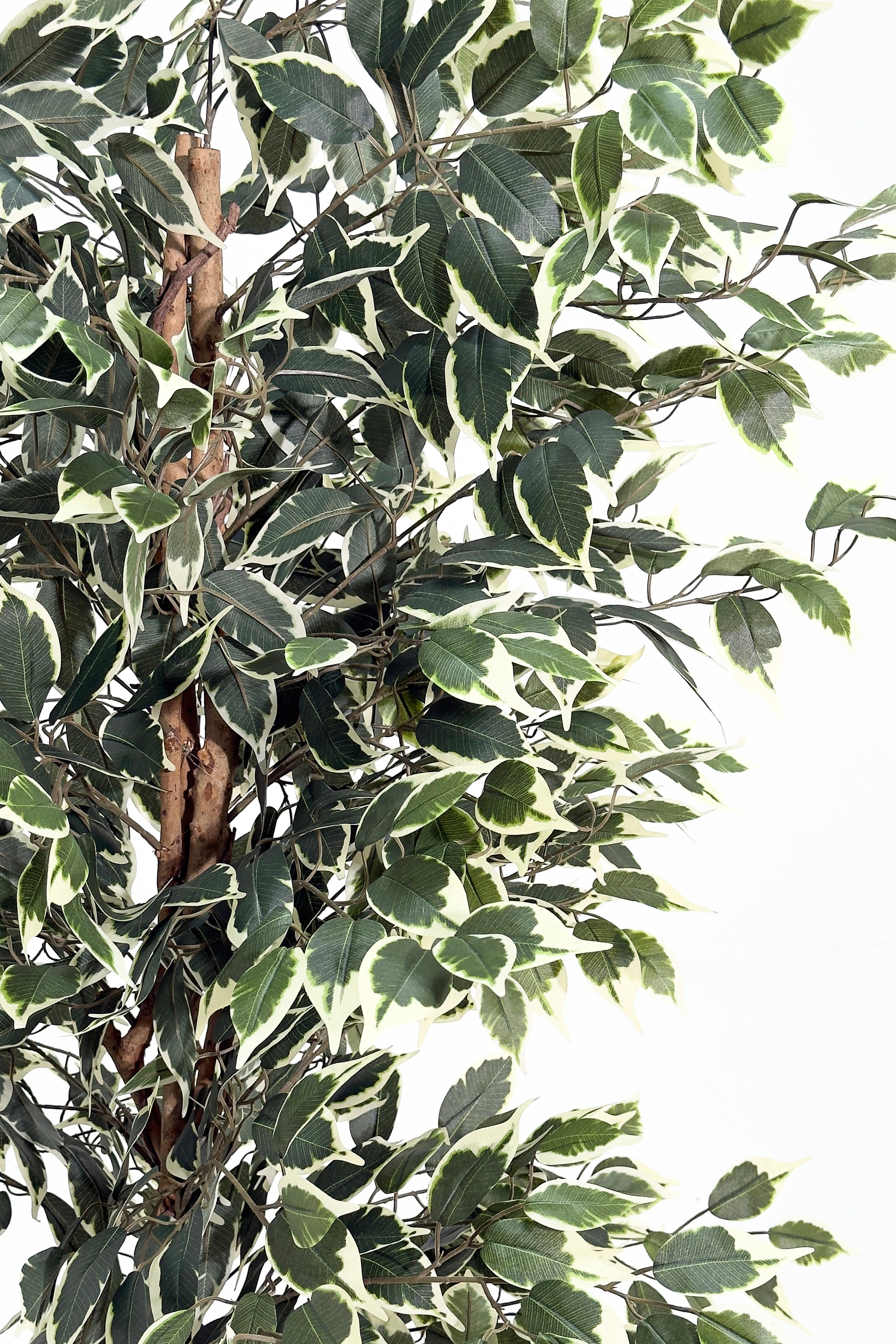 Featuring an abundance of gracefully arching branches and ultra-realistic, slender green leaves with soft variegation, this faux tree captures the refined elegance of the live Ficus Exotica. Each detail—from the vibrant foliage to the carefully textured, natural-looking trunk—is expertly crafted to offer a lifelike presence without the upkeep. Whether placed in a cozy corner or a stylish office lobby, this maintenance-free plant adds a timeless, evergreen charm to any interior.