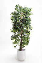 Bring everlasting greenery into your world with our Artificial Ficus Tree, this exquisite faux Ficus Tree features a dense canopy of vibrant green leaves with a realistic texture, all supported by a beautifully intertwined multi-trunk design in natural brown. Its elegant, upright shape and full foliage create a striking silhouette, adding an instant touch of botanical charm and sophisticated greenery to any indoor setting. Ideal for enhancing home decor, brightening office spaces, or styling event venues, this maintenance-free artificial tree allows you to enjoy timeless beauty without the hassle, making your space truly flourish.