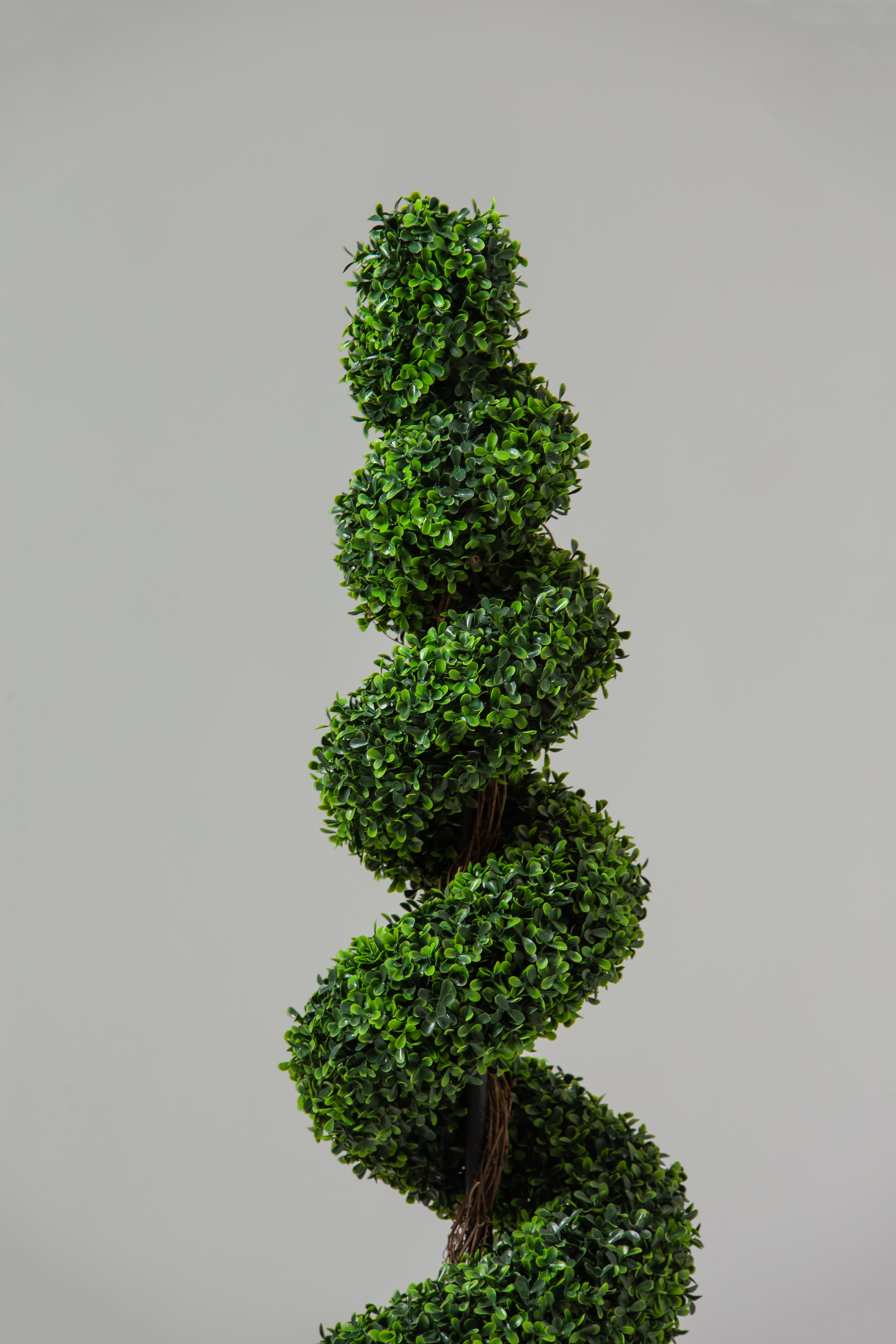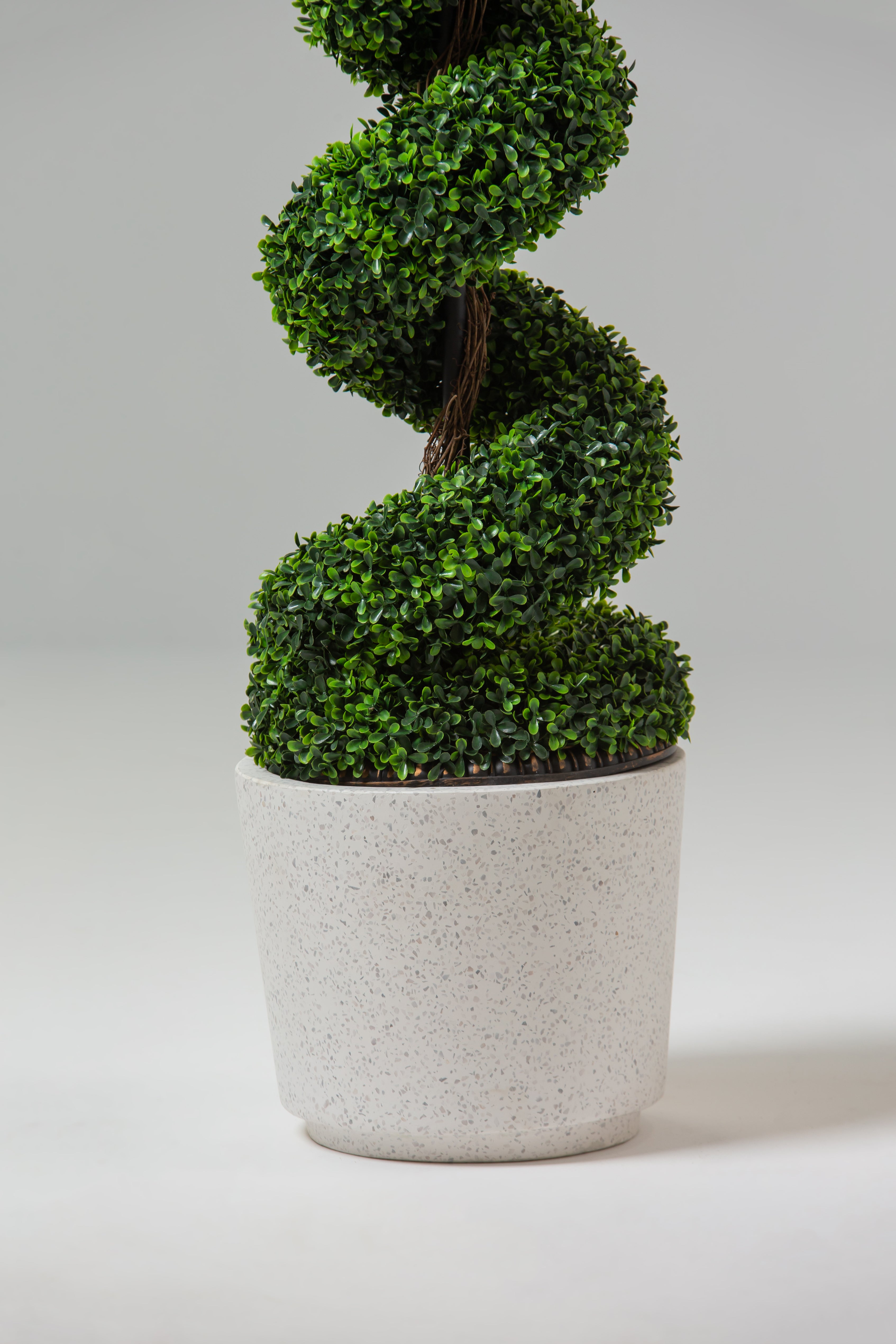 This faux spiral topiary bonsai brings elegance to any space with its lush green foliage crafted in a perfect spiral shape. Set in a textured white pot, the lifelike design and compact form make it ideal for both modern and traditional interiors. A zero-maintenance decor piece, it adds a touch of greenery and sophistication to homes, offices, or events.