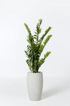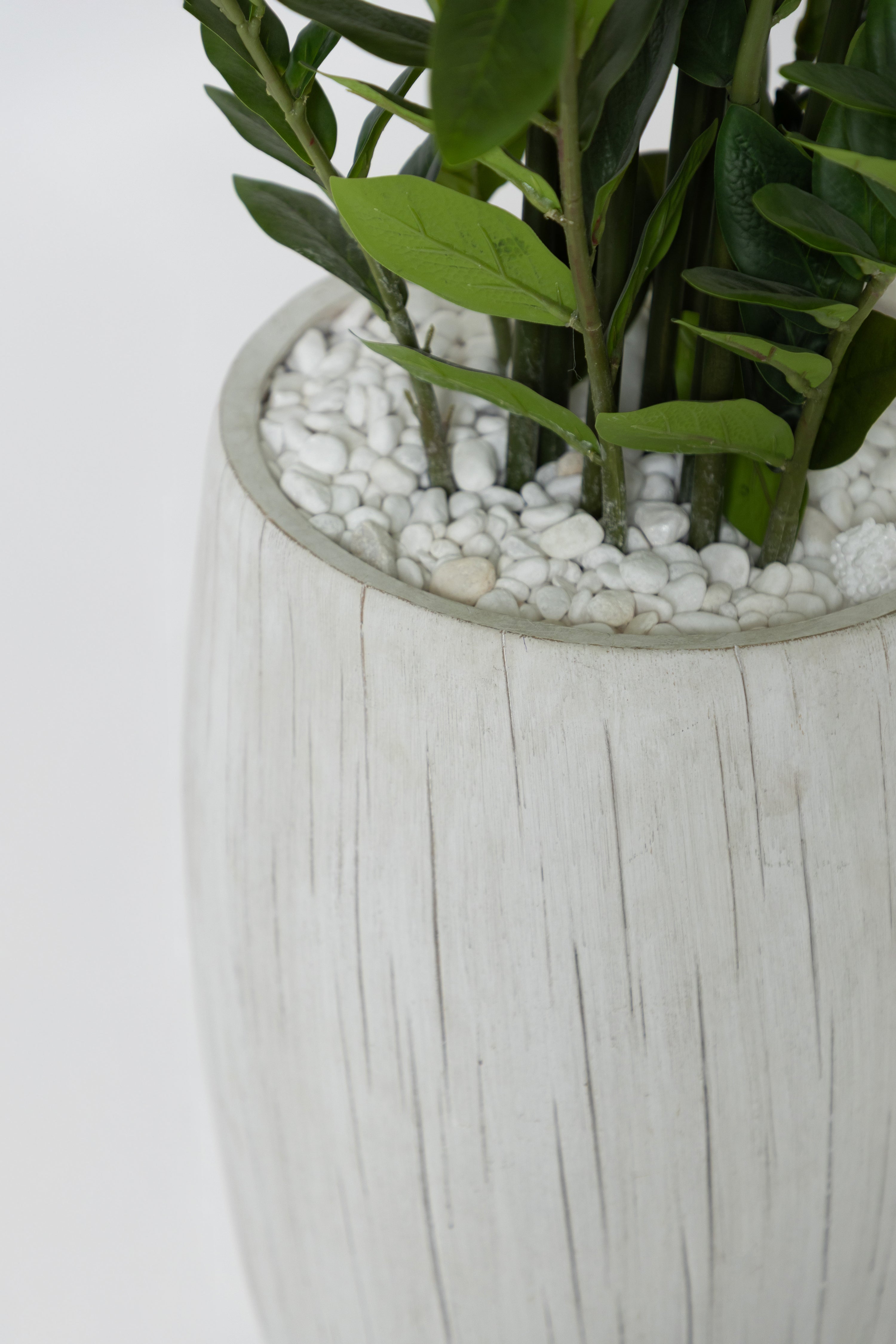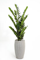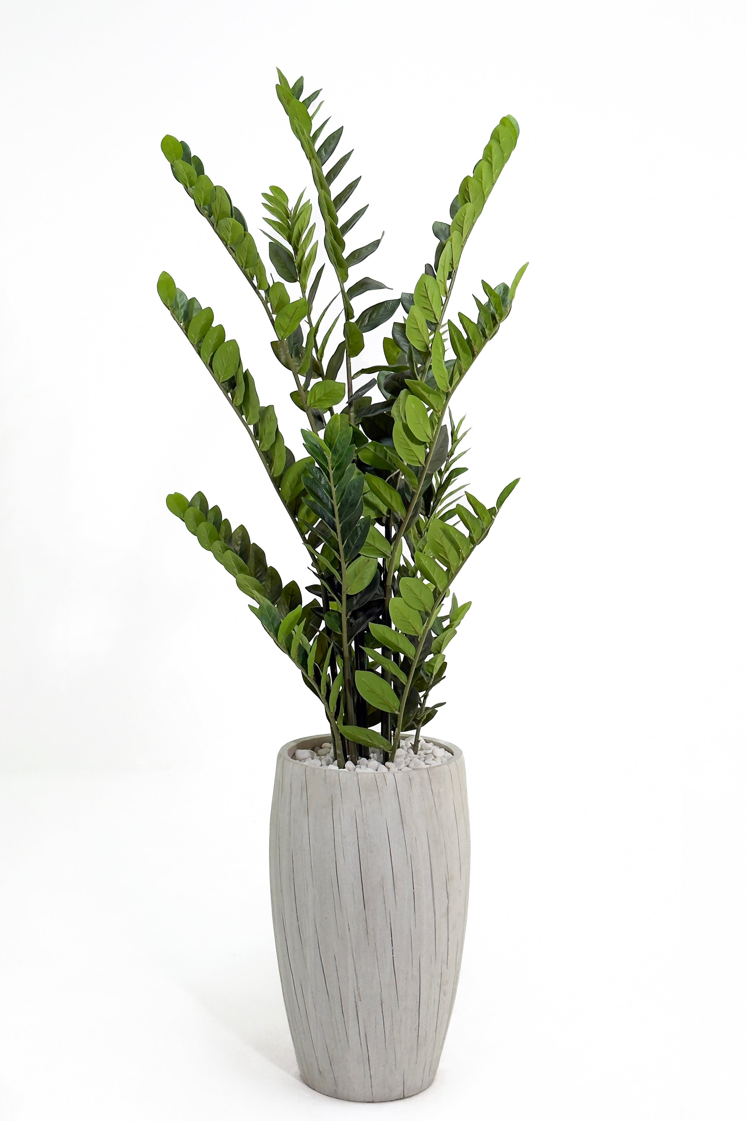 A stunningly realistic faux plant that offers the perfect touch of permanent greenery without any maintenance. This lifelike ZZ plant features a striking, sculptural design with glossy, deep-green foliage arranged on upright stems, capturing the authentic look of the beloved Zamioculcas Zamiifolia. The plant is housed in a modern, elegant pot with a distinct ridged texture and a soft, neutral color, allowing you to seamlessly integrate this beautiful piece into any room. Imagine how this durable, hassle-free plant will bring a sense of tranquility and style to your home office, living room, or entryway, creating a beautiful focal point that lasts forever.